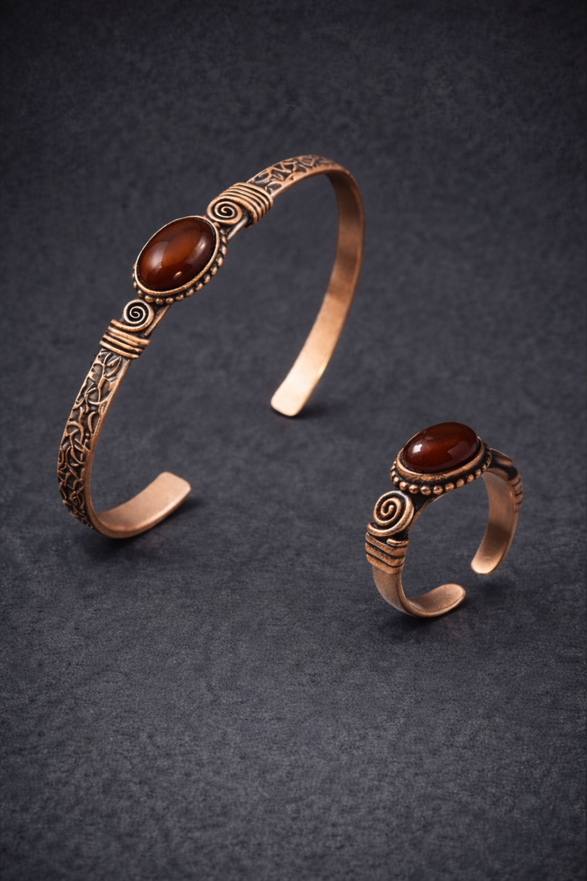 This copper red agate bracelet set, which stands out with its elegant details and authentic design, complements your elegance both in daily use and special combinations.