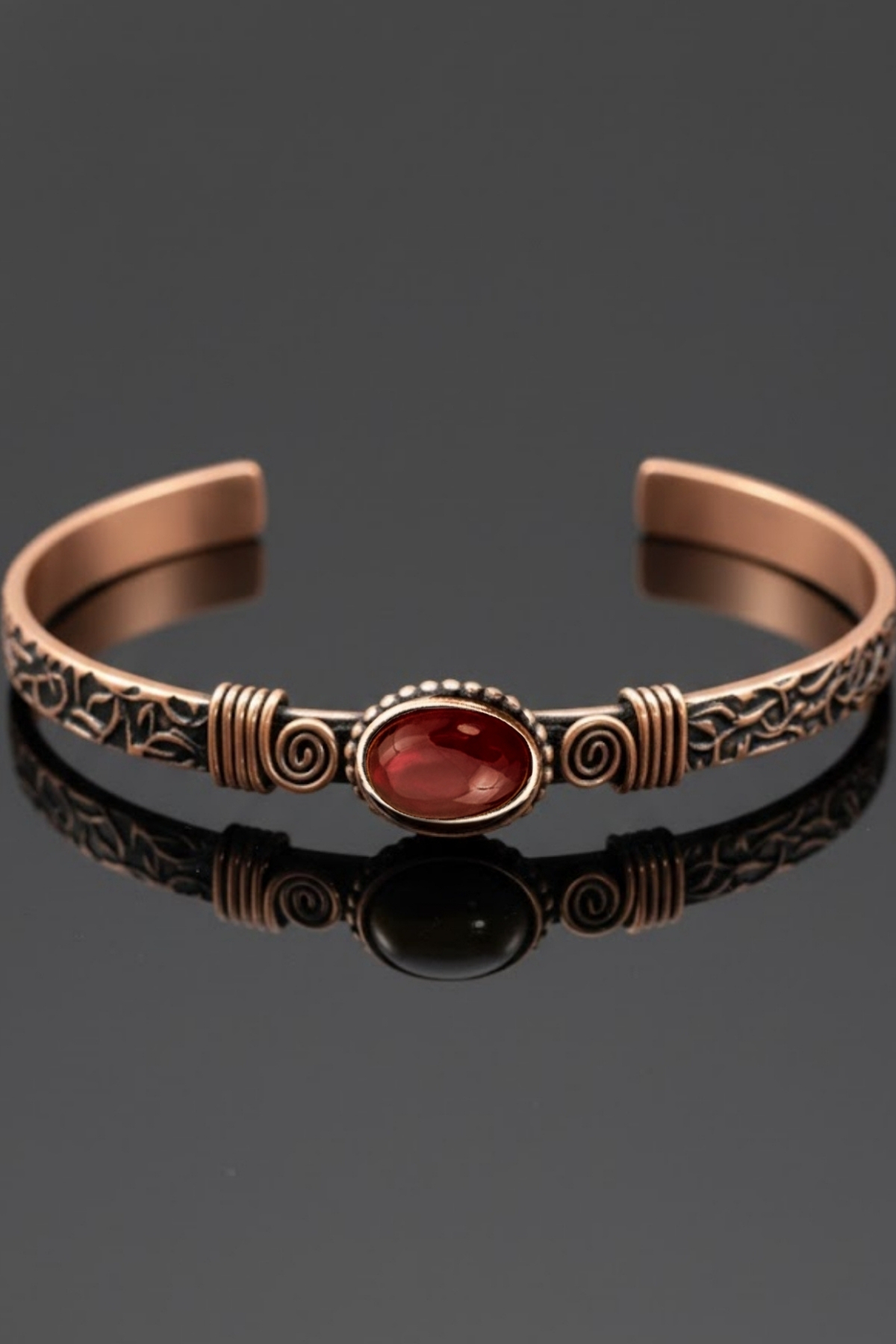 While spiral details add character to the bracelet, it easily adapts to the wrist thanks to its open-ended structure.