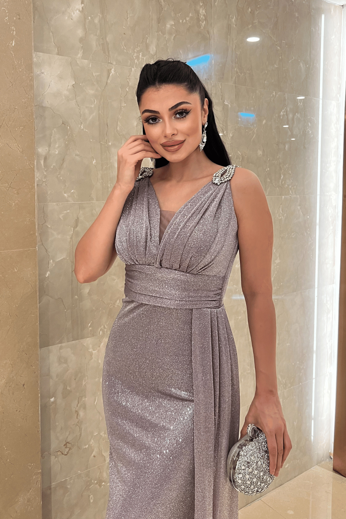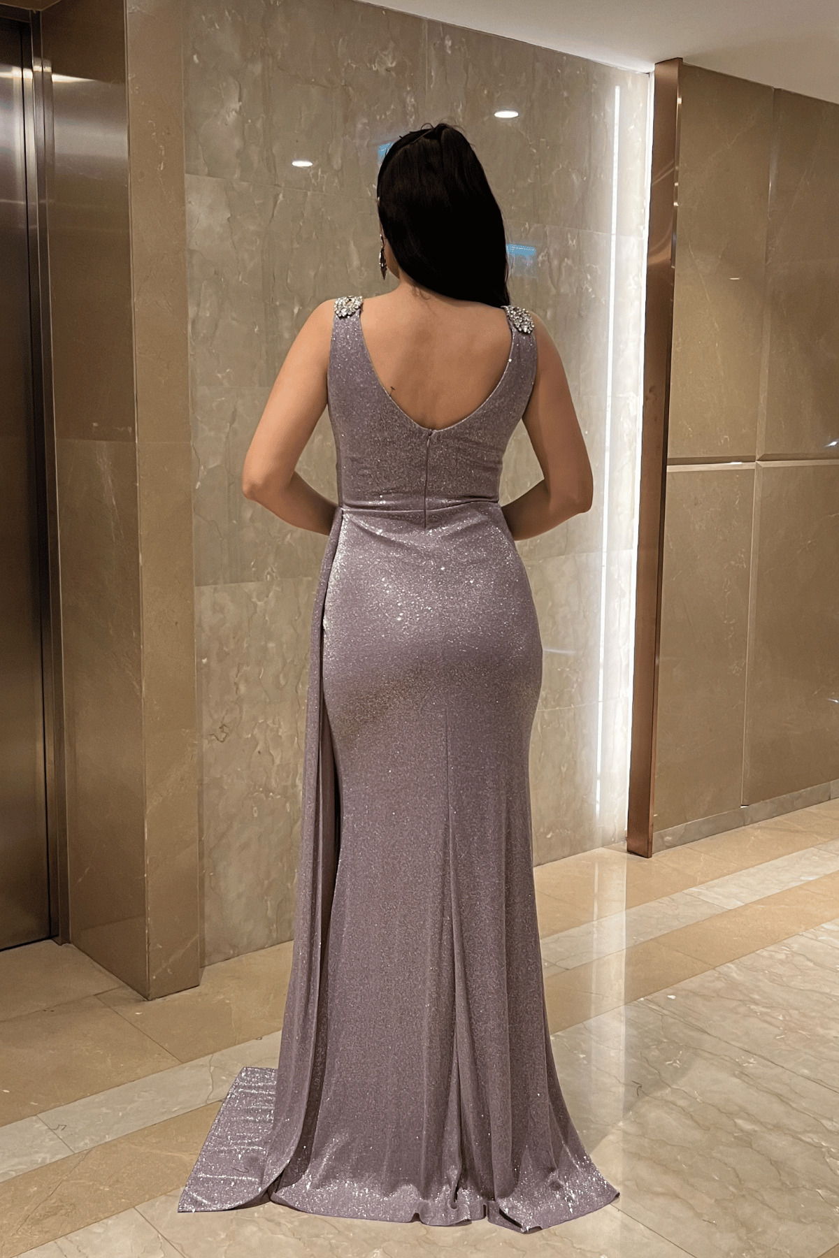 giyimmasalı Twinkle Fabric Stone Detailed Evening Dress - LILAC | ByTR