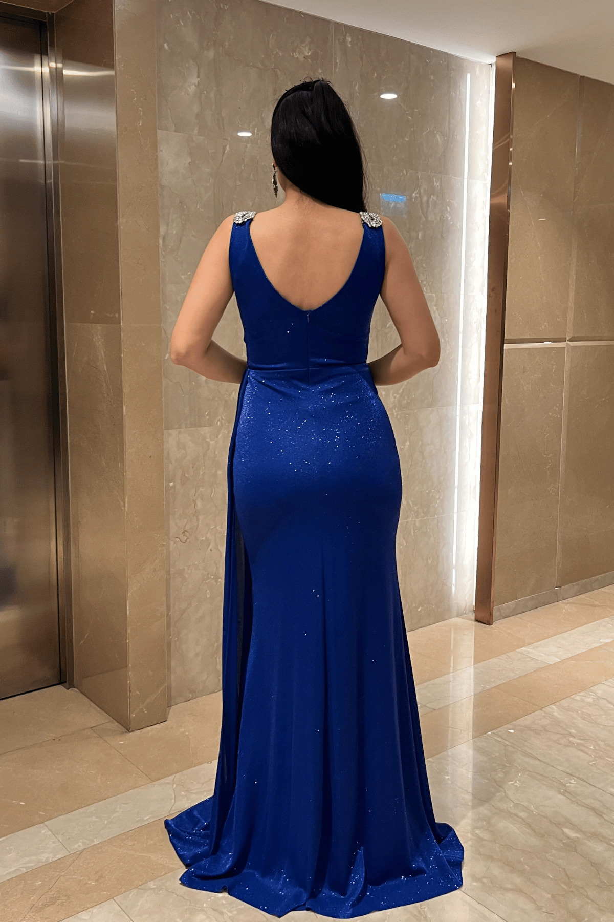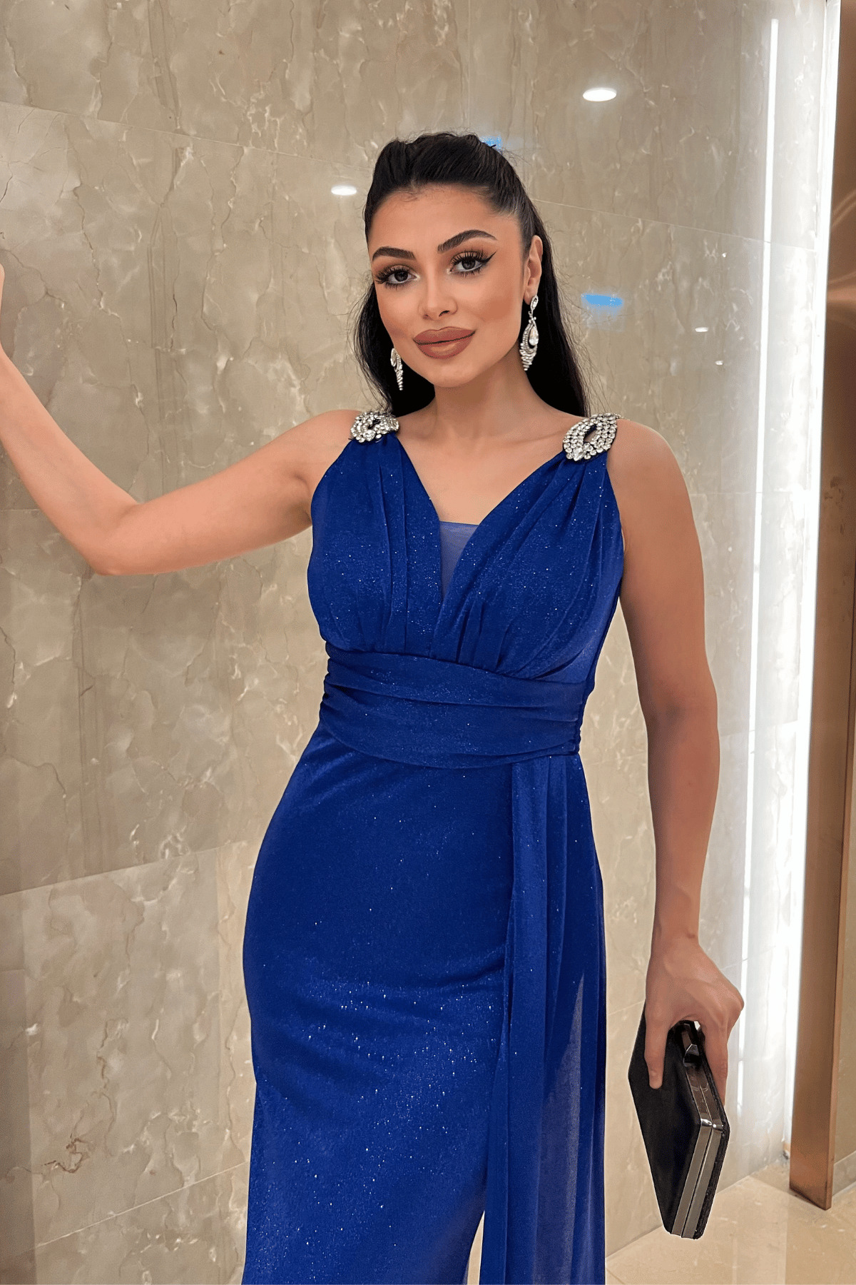 Twinkle Fabric Stone Detailed Evening Dress - SAXE BLUE