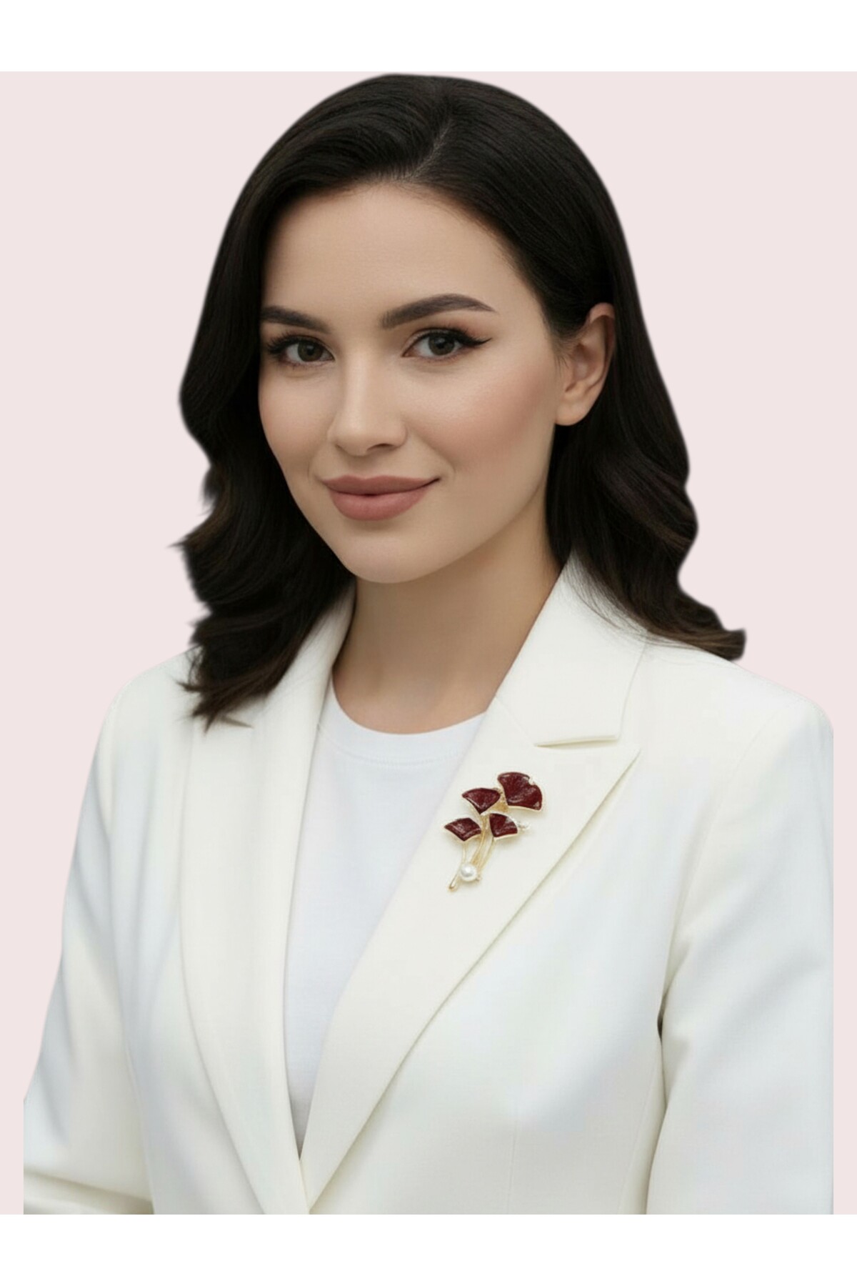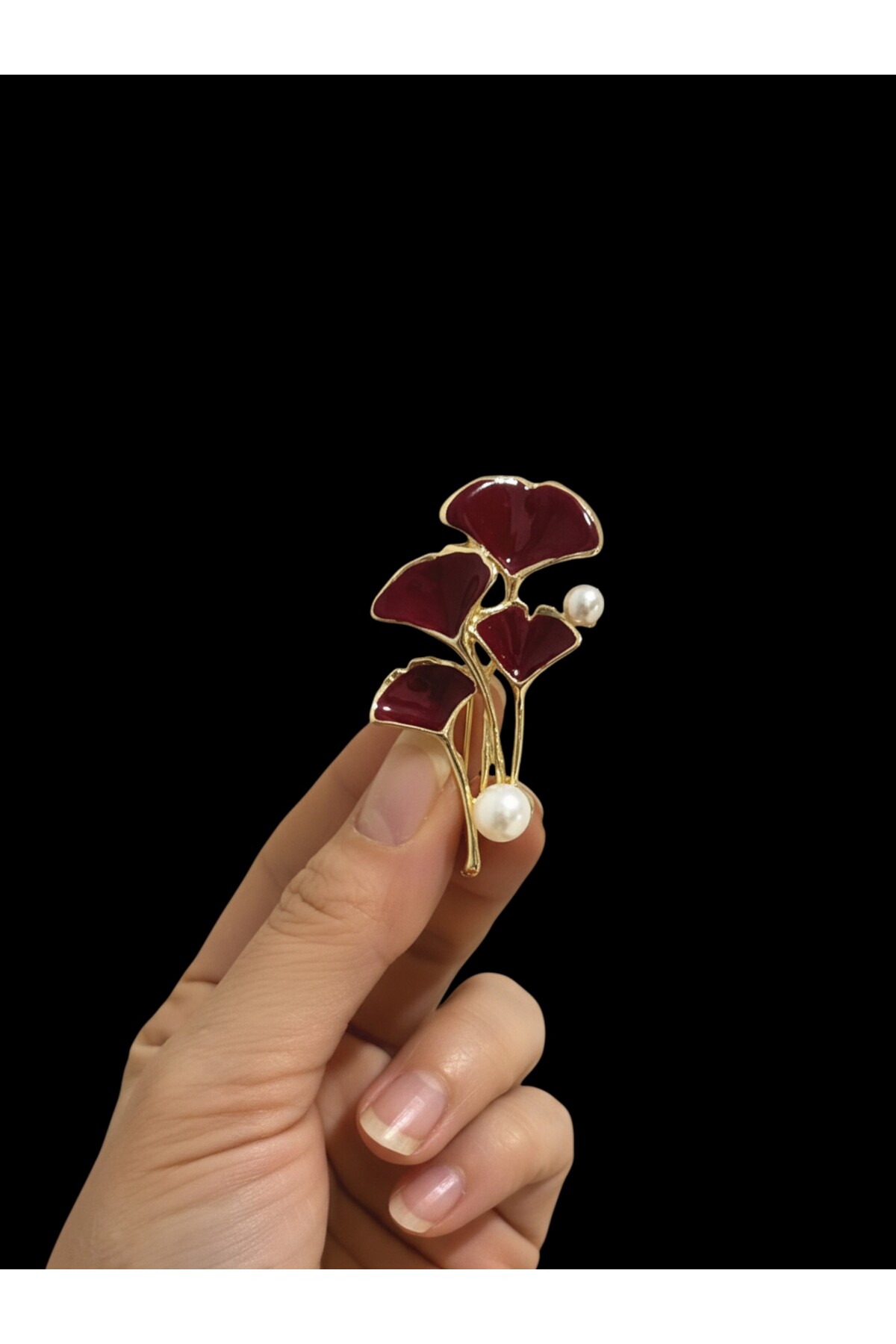 The leaf / flower design, which combines elegance and naturalness, dazzles with its brooch, golden-toned branches and pearl detail.