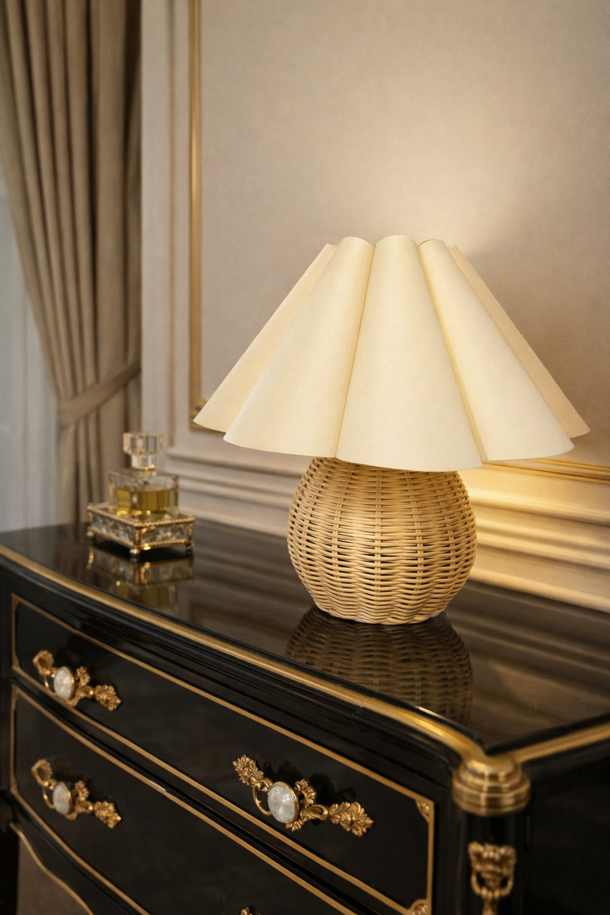 burenze Modern Lampshade Fico Cream Fabric Wicker Rattan Bamboo Body Table Lamp | ByTR
