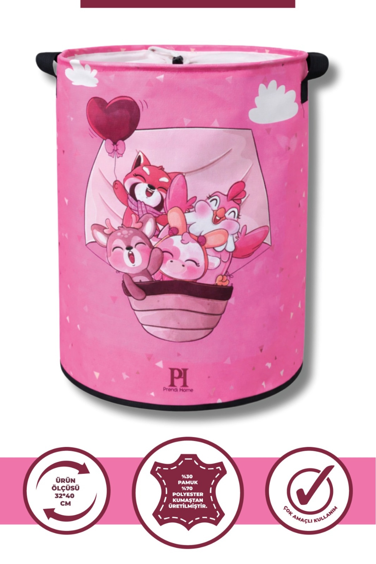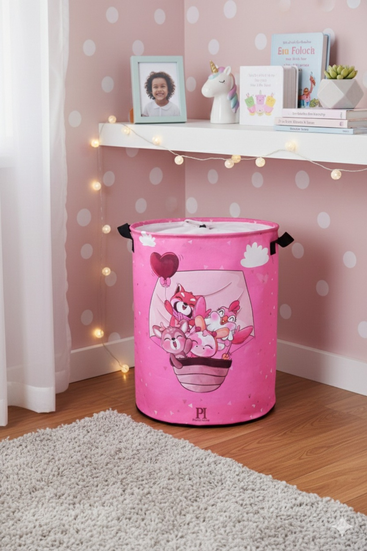 PH Prendi Home Pink Dreams Mouth Shirred Folding Dirty Laundry Wardrobe Toy Storage Basket 32x40 | ByTR