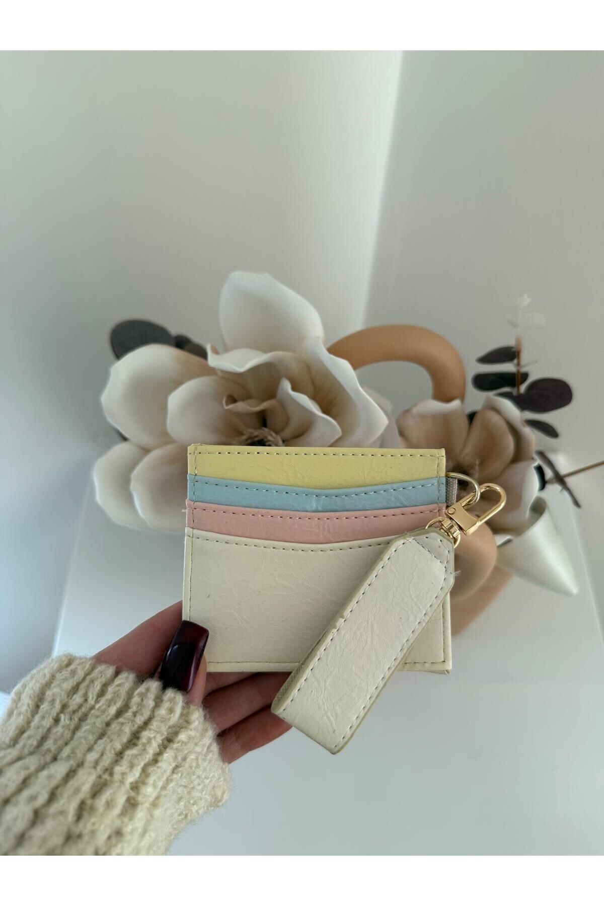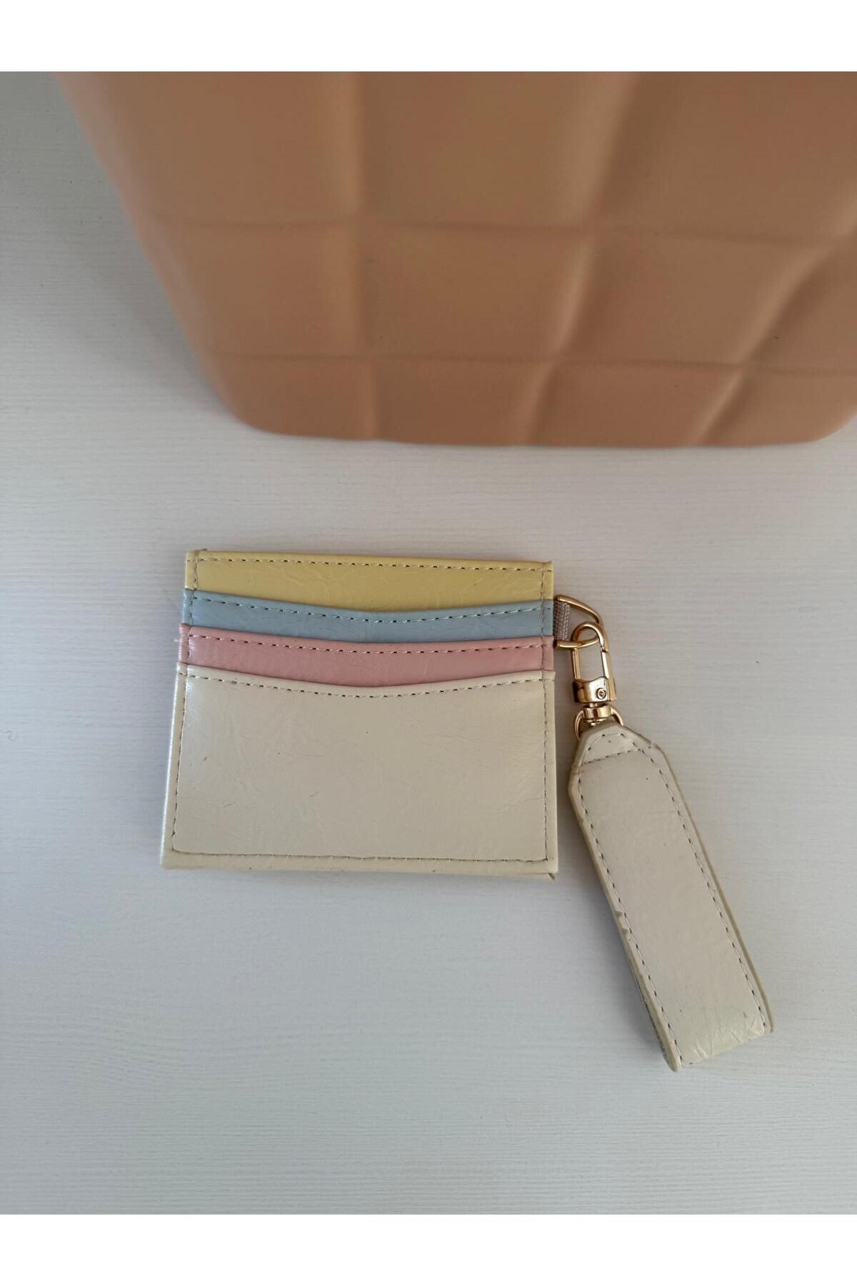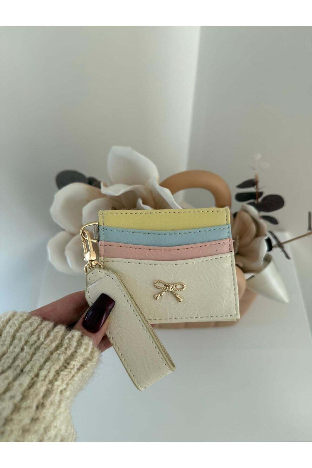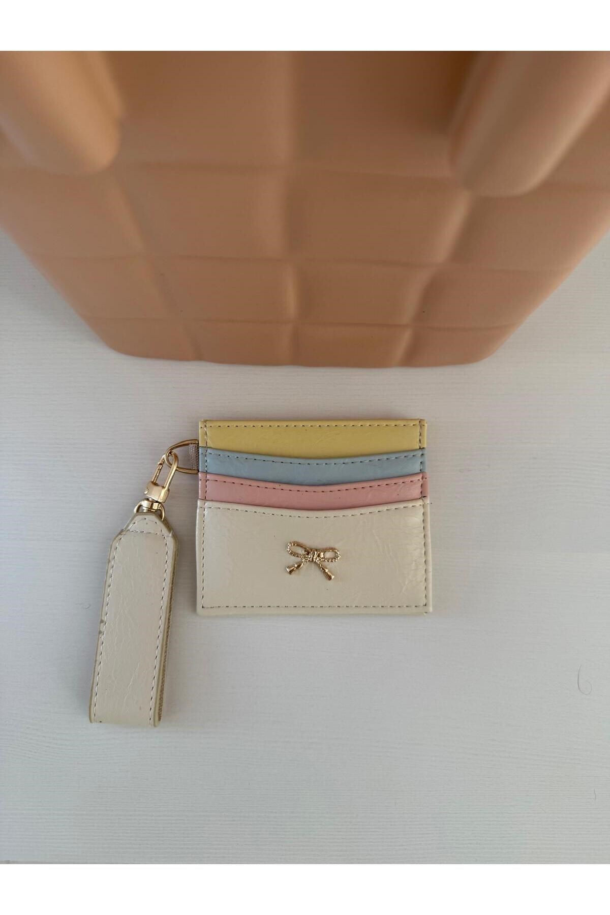 Attracting attention with its stylish and modern design, the shiny artificial leather card holder with women's bow detail keychain is ideal for daily use.