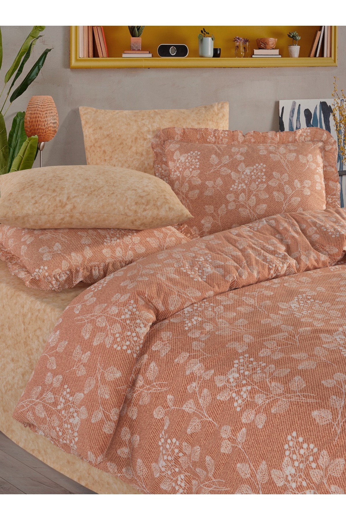 Uçkan home 100% Cotton Caramel Floral Ruffle Double Duvet Cover Set | ByTR