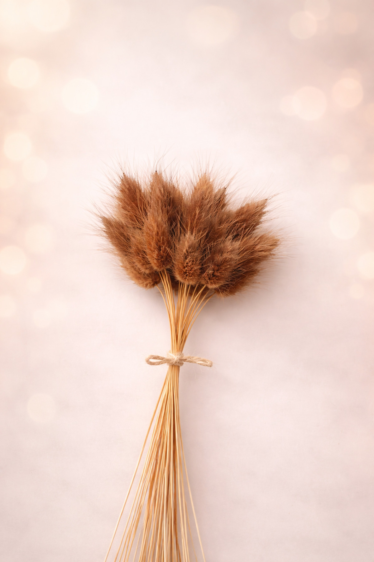 Brown Colored Natural Dried Rabbit Tail Grass Bouquet 1 Bundle (15 Branches) 25 Cm Bringing naturalness and simplicity to your home, office or special day tables, this Brown colors dried rabbit tail grass bouquet is the perfect choice for those who love simple but impressive decoration.