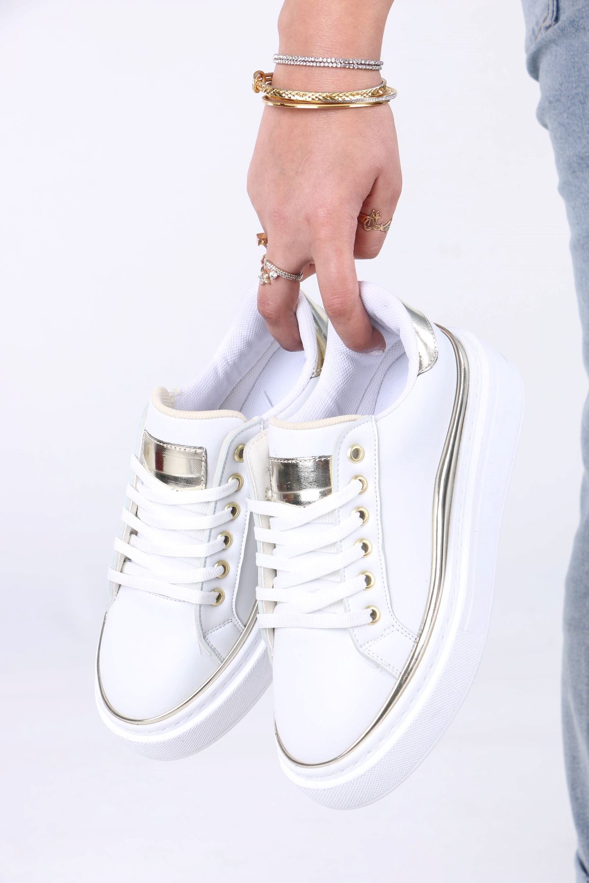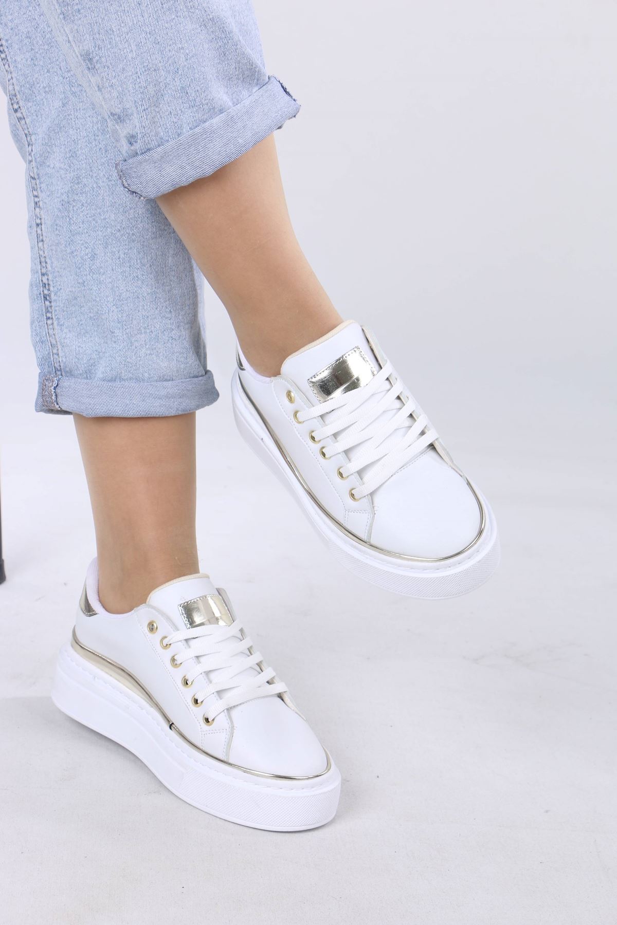 sefayol Kalle White Matte Leather Lace-Up Women's Sports Shoes | ByTR