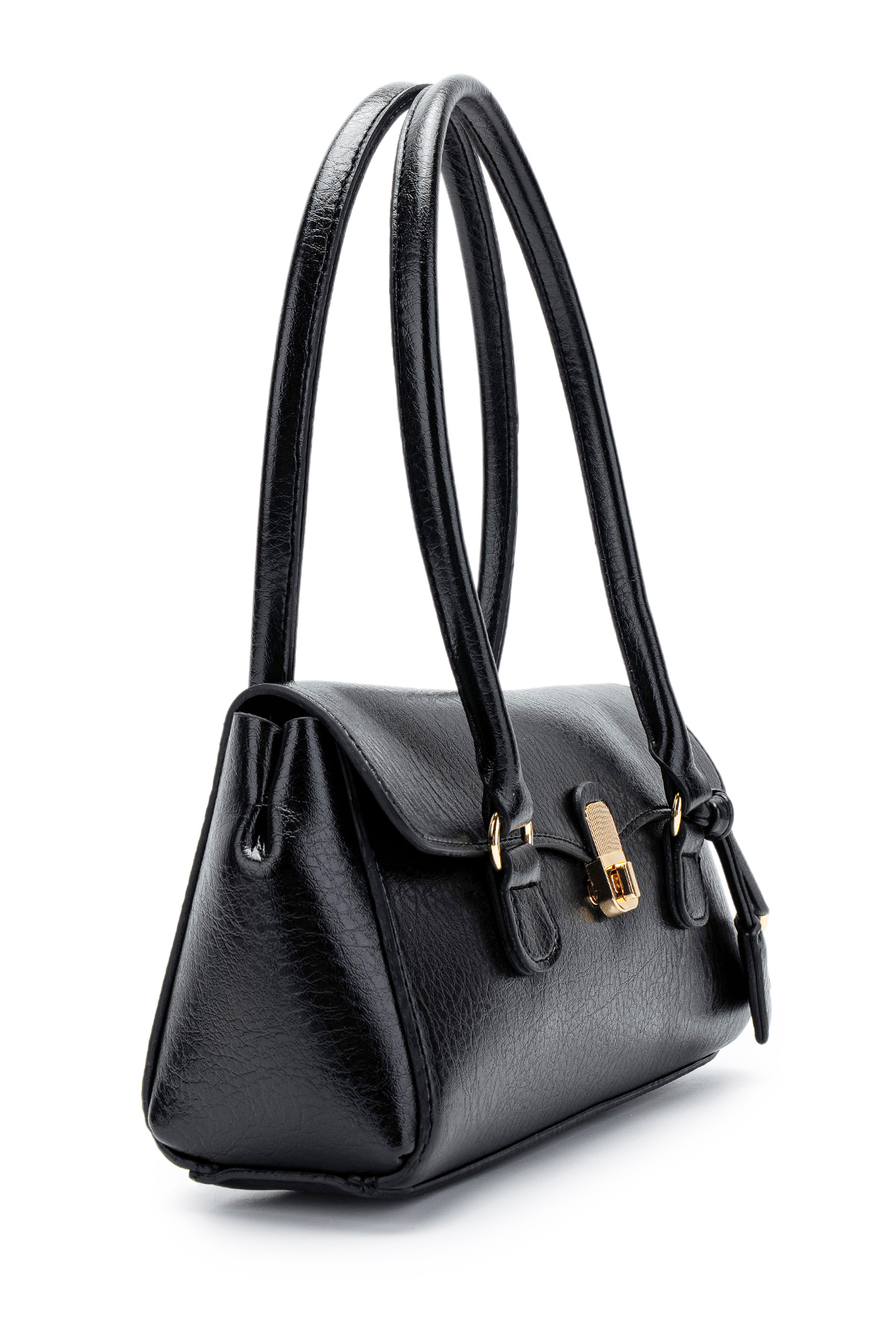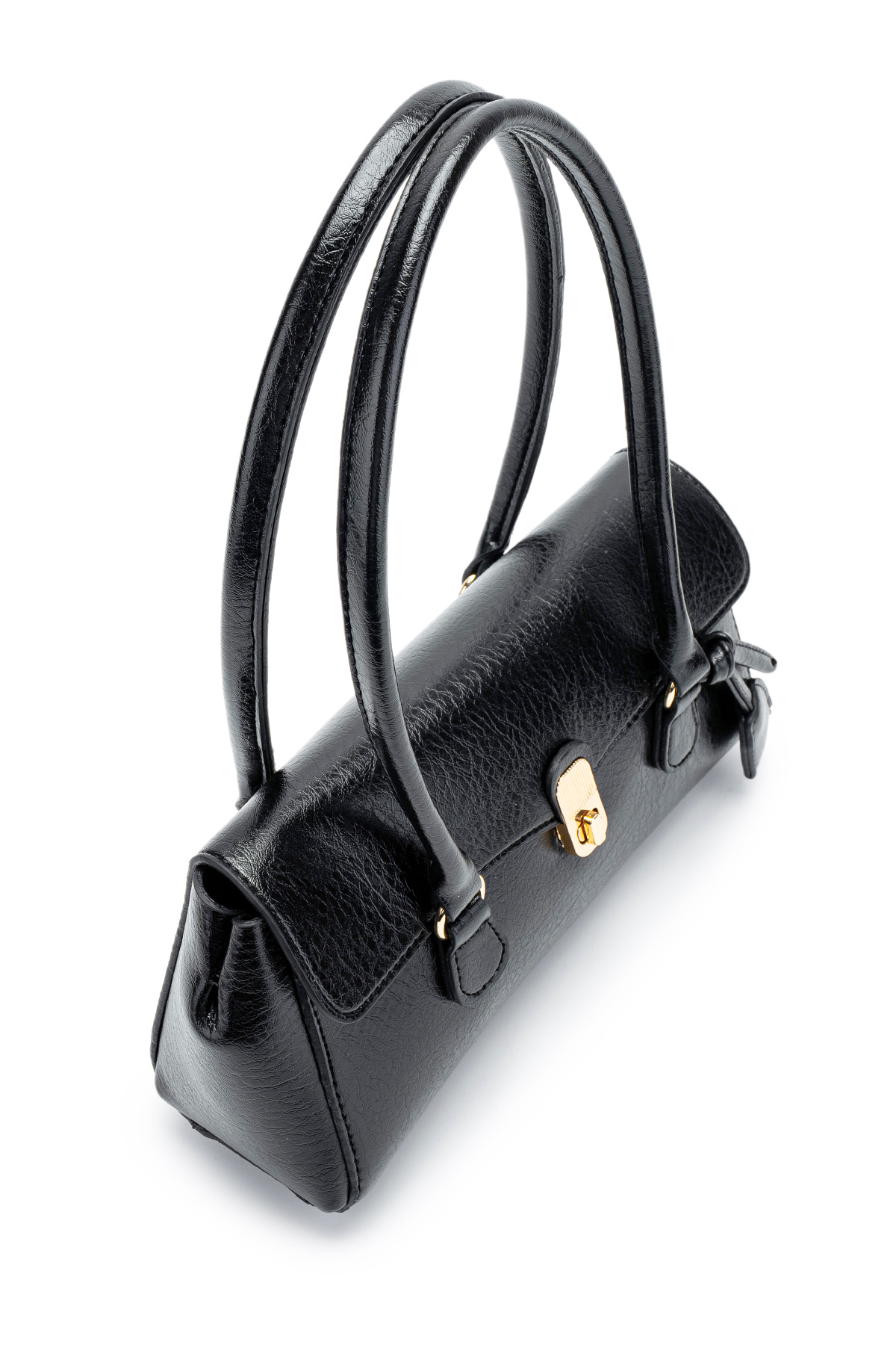 Width 33 cm Length 17 cm Handle length 21 cm Unlined Lock closure detail Domestic production.