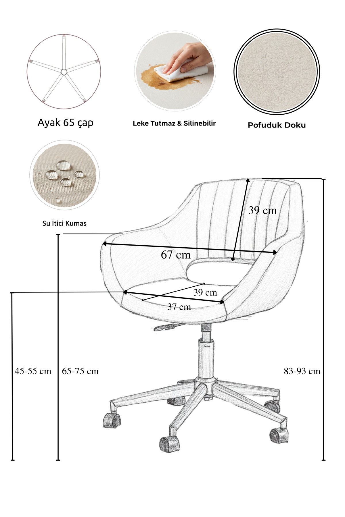 SandalyeDeposu Fiesta Study Chair and Office Chair ( Off-White, Wipeable Stain-Resistant Fabric ) | ByTR