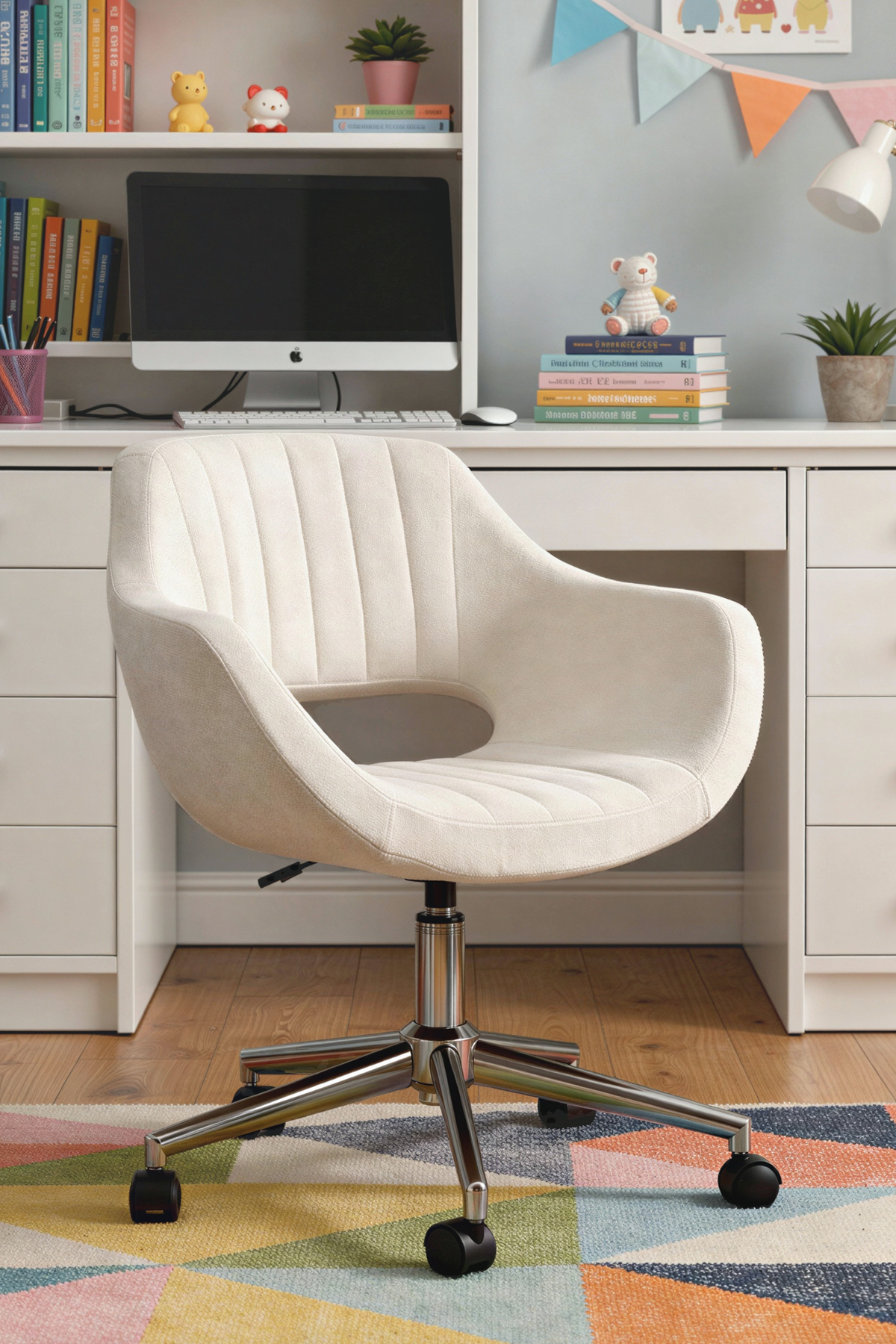 Fiesta Study Chair and Office Chair ( Off-White, Wipeable Stain-Resistant Fabric )