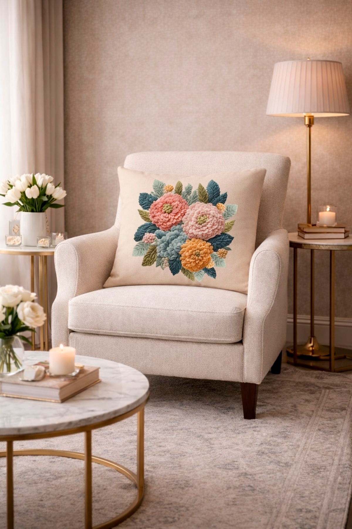 It offers a decorative touch, decorated with floral patterns in pastel tones on a creamy background.