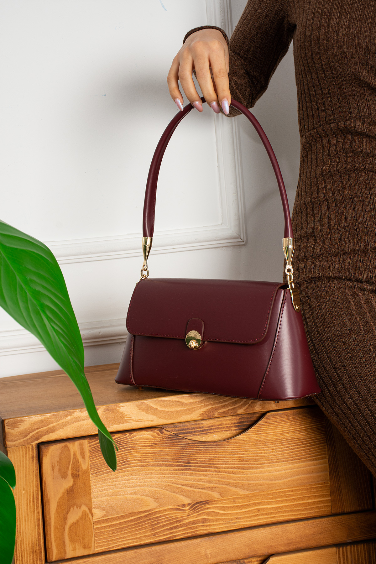 The rectangular hand and shoulder bag with a long handle, which draws attention with its elegant design, is ideal for daily use.