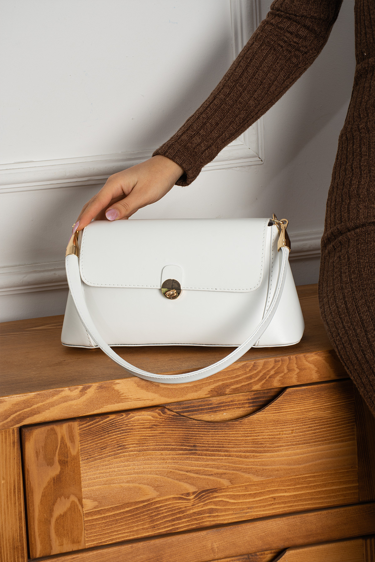 The rectangular hand and shoulder bag with a long handle, which draws attention with its elegant design, is ideal for daily use.