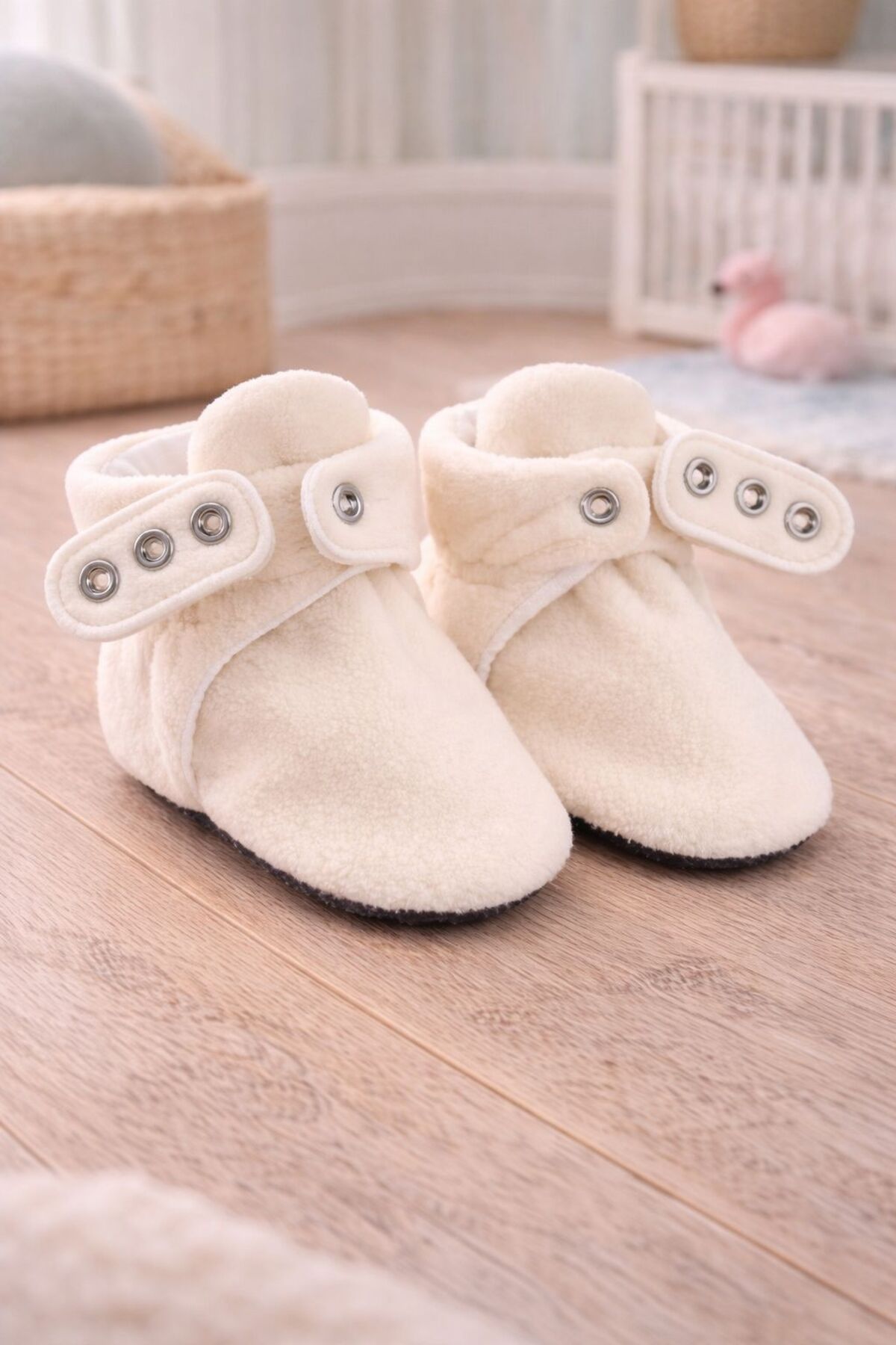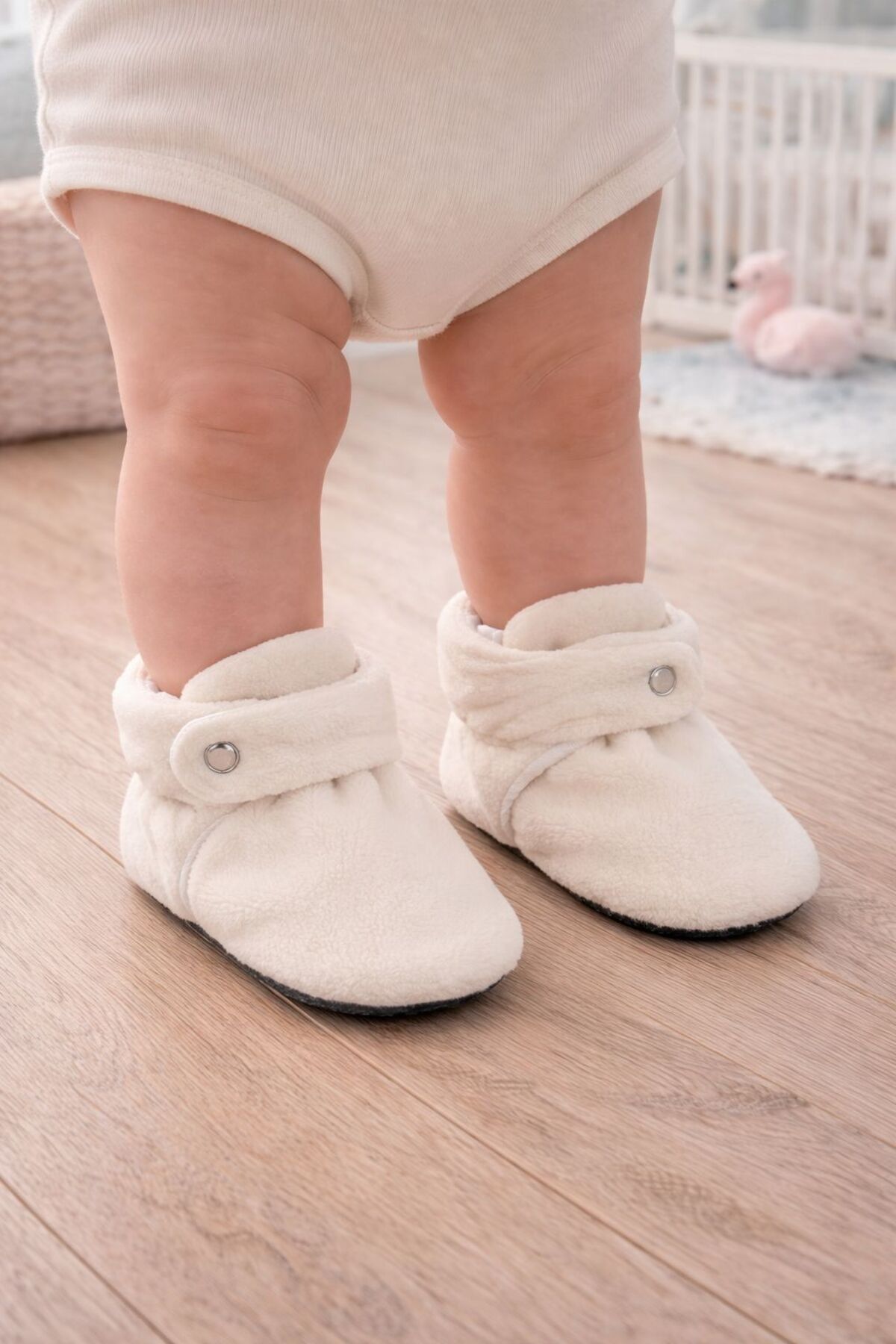 With its organic cotton lined structure, it wraps your baby's feet with a natural and soft touch.