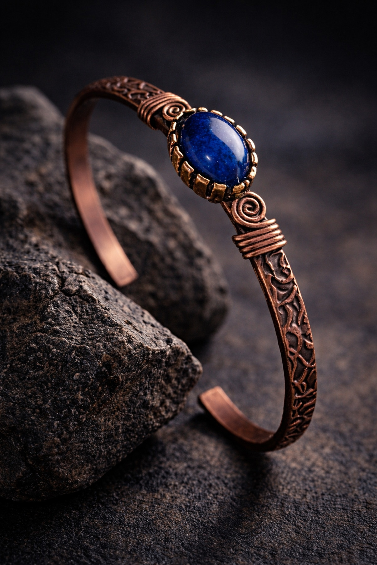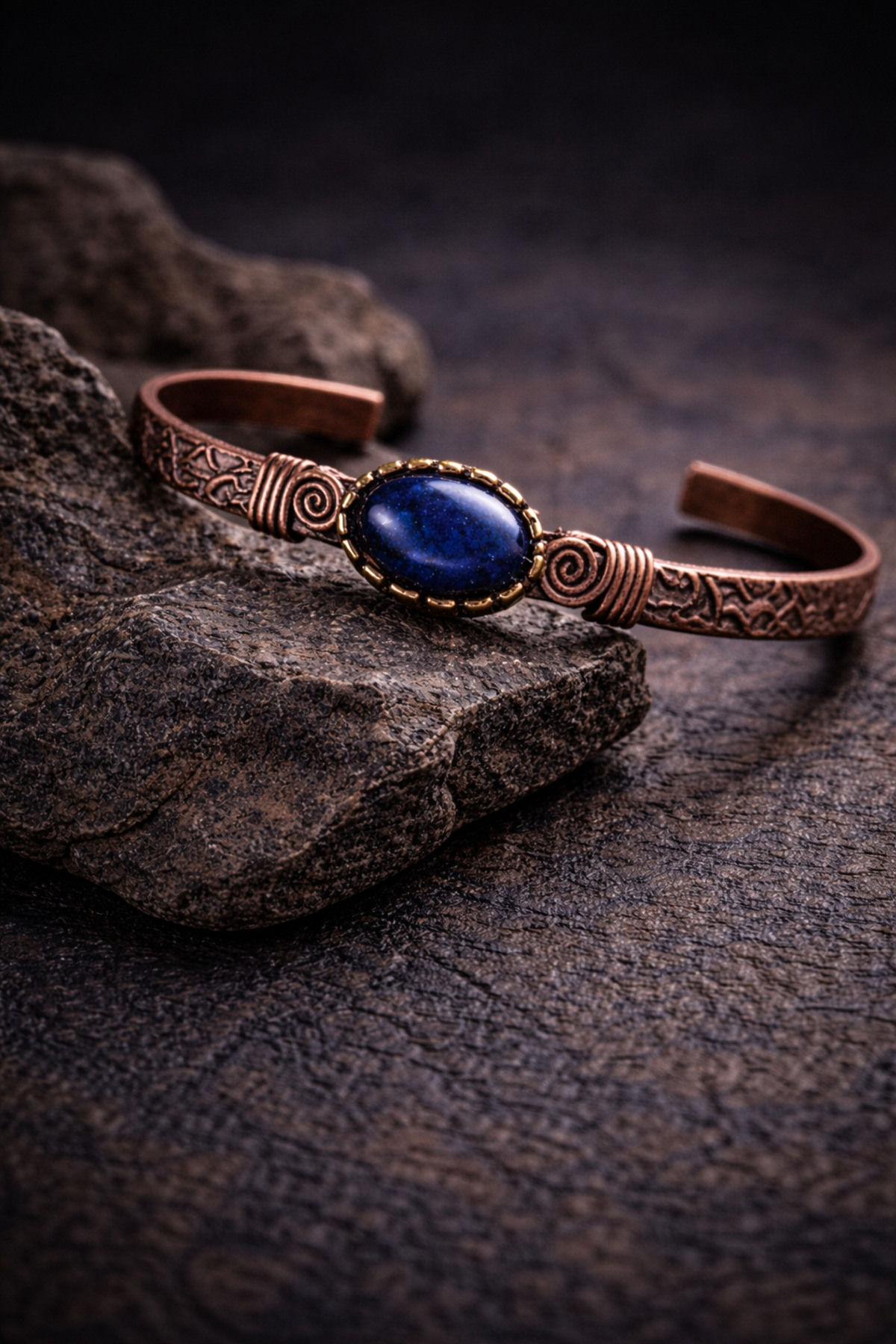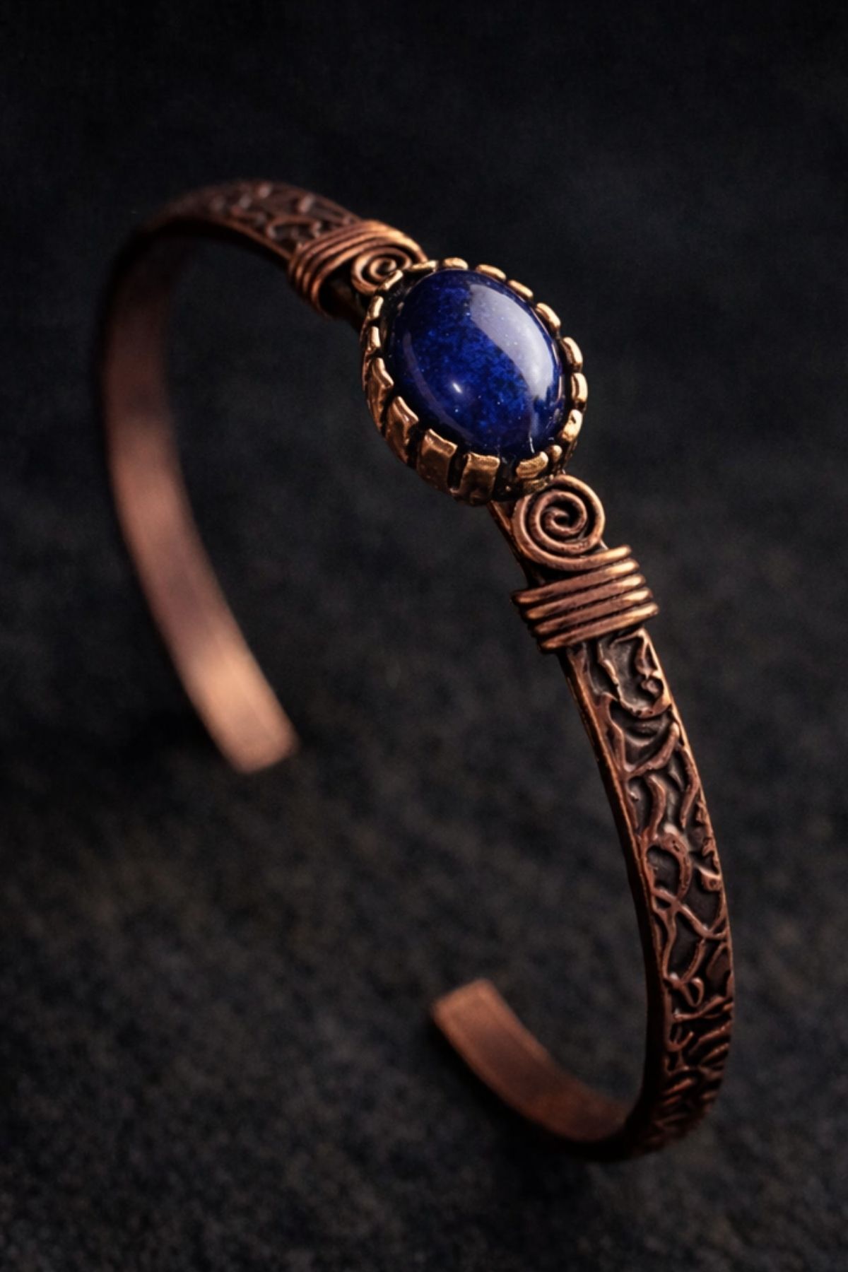 It is a specially designed bracelet made of100% copper material, with an ancient pattern and a matte navy stone in the center.