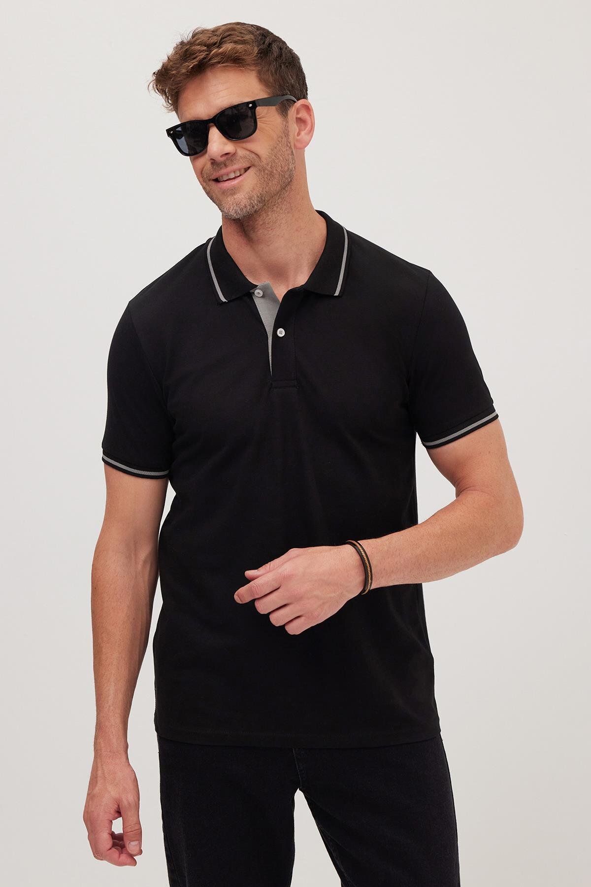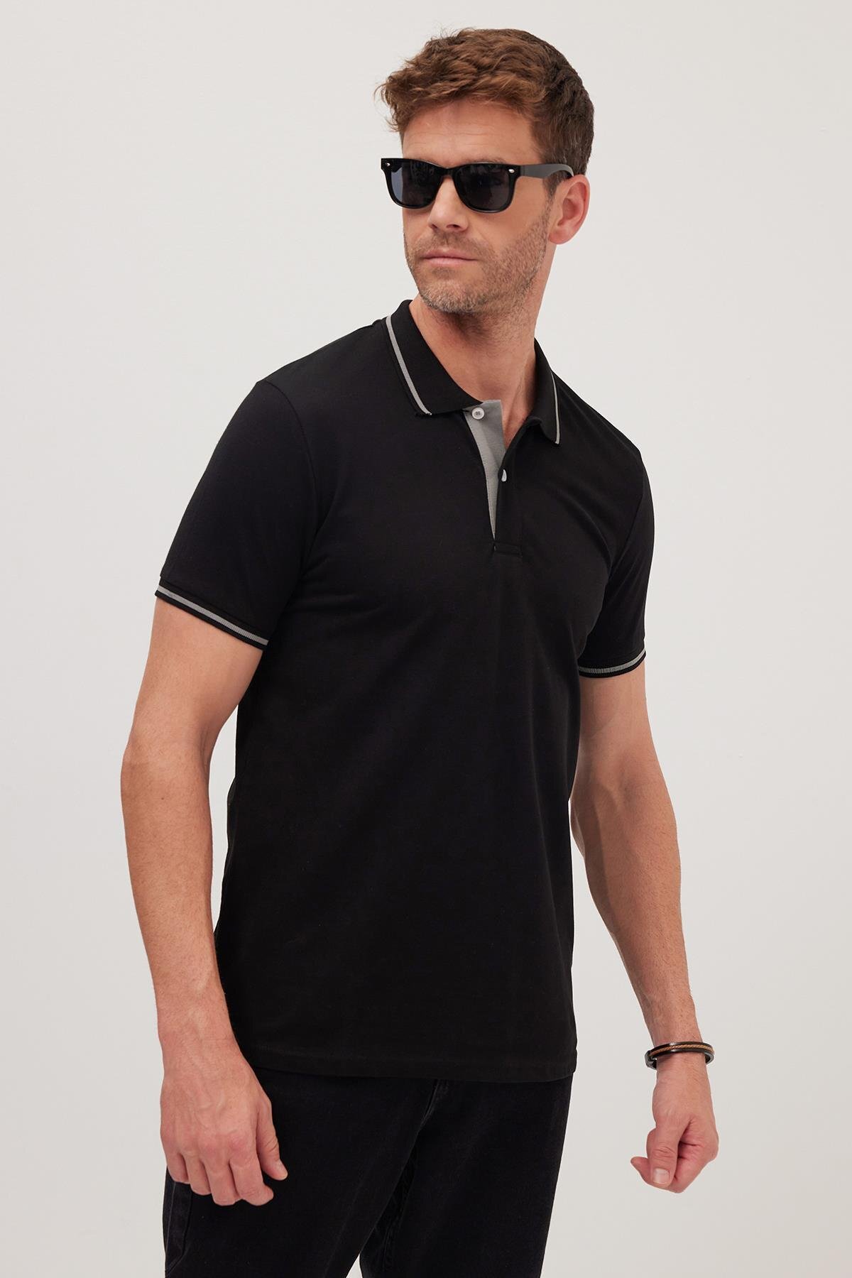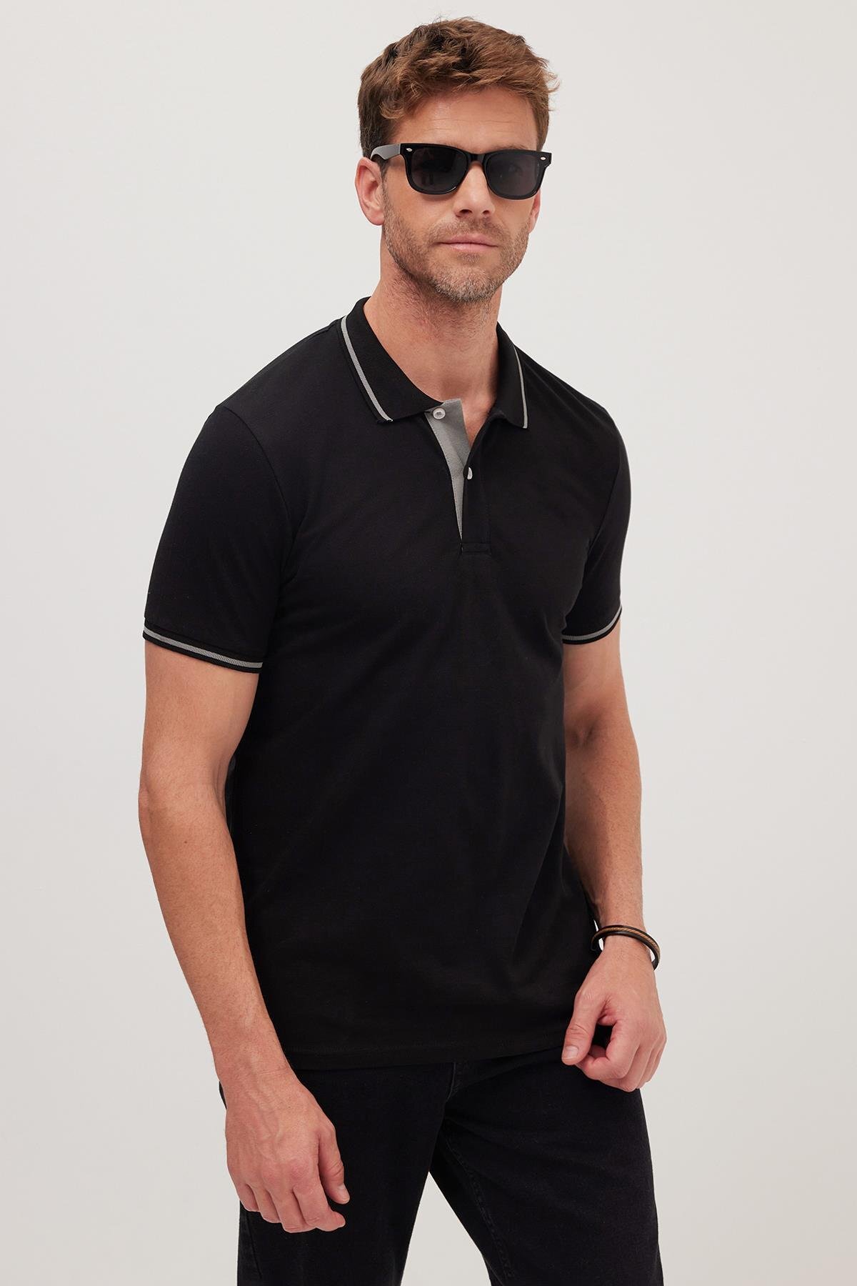 Tudors Men's Slim Fit Slim Fit 100% Cotton Soft Texture Cool Keeping Fabric Plain Pique Black Polo Neck T-Shirt | ByTR