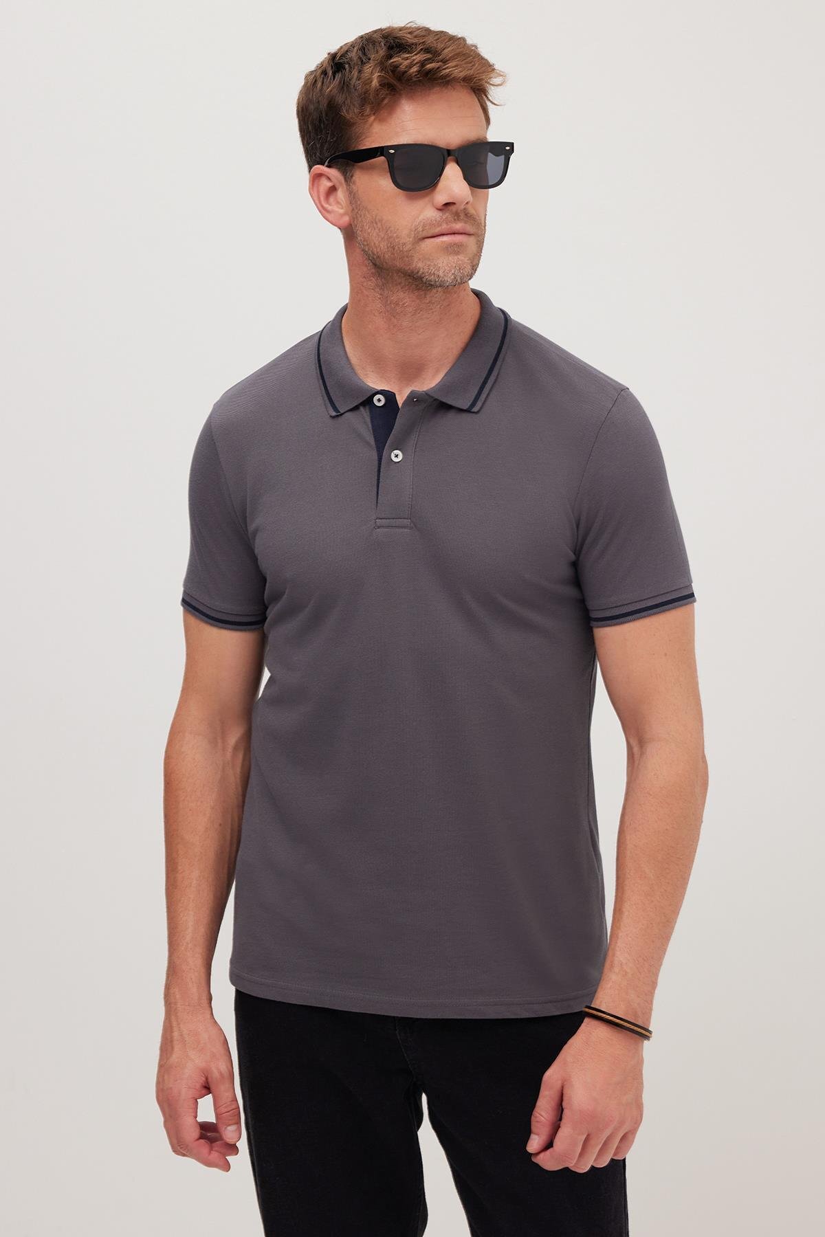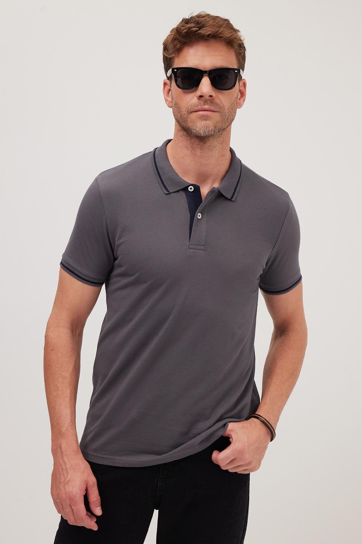 Tudors Men's Slim Fit Slim Fit 100% Cotton Soft Textured Cool Keeping Fabric Plain Pique Smoked Polo Neck T-Shirt | ByTR