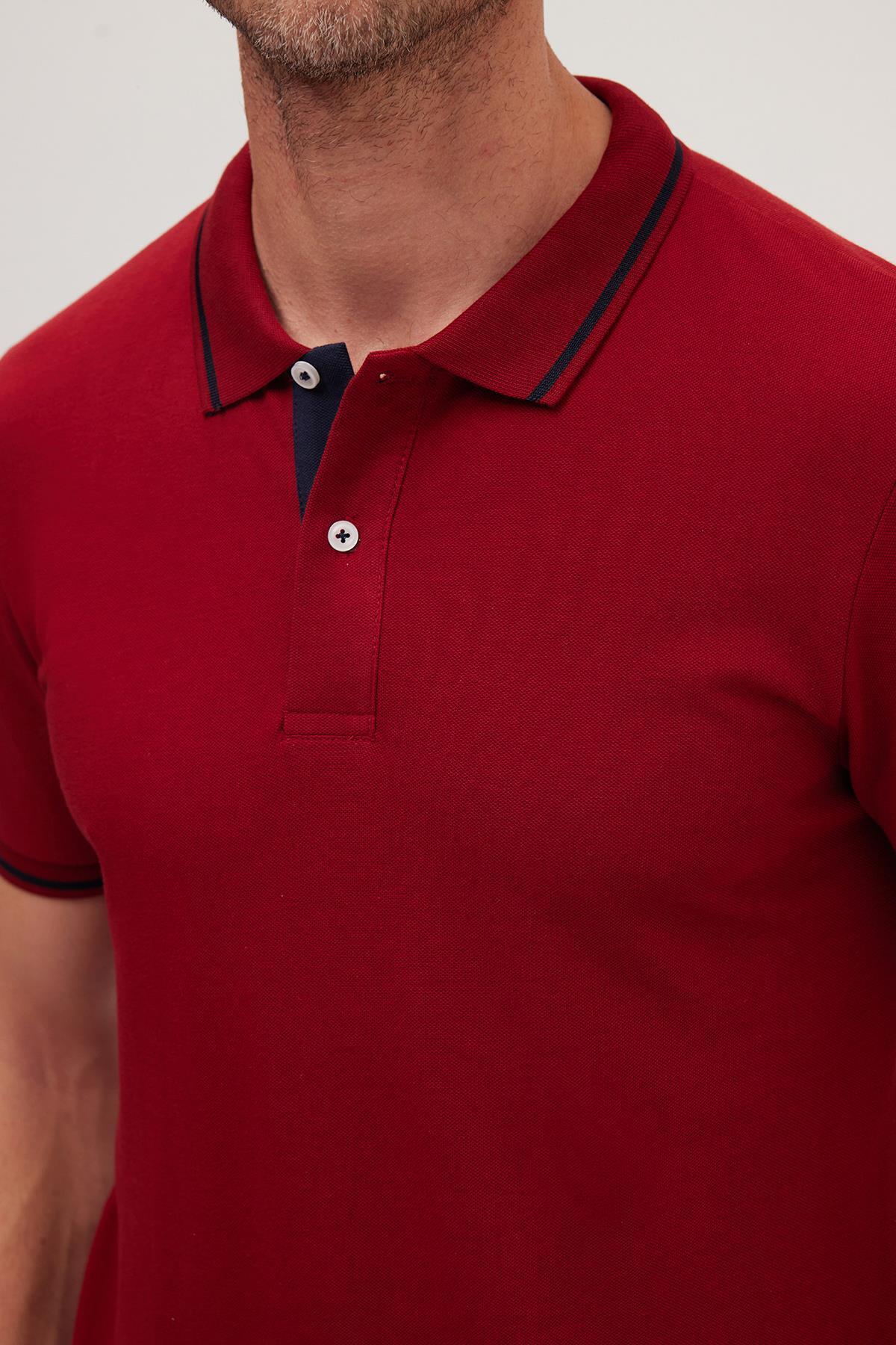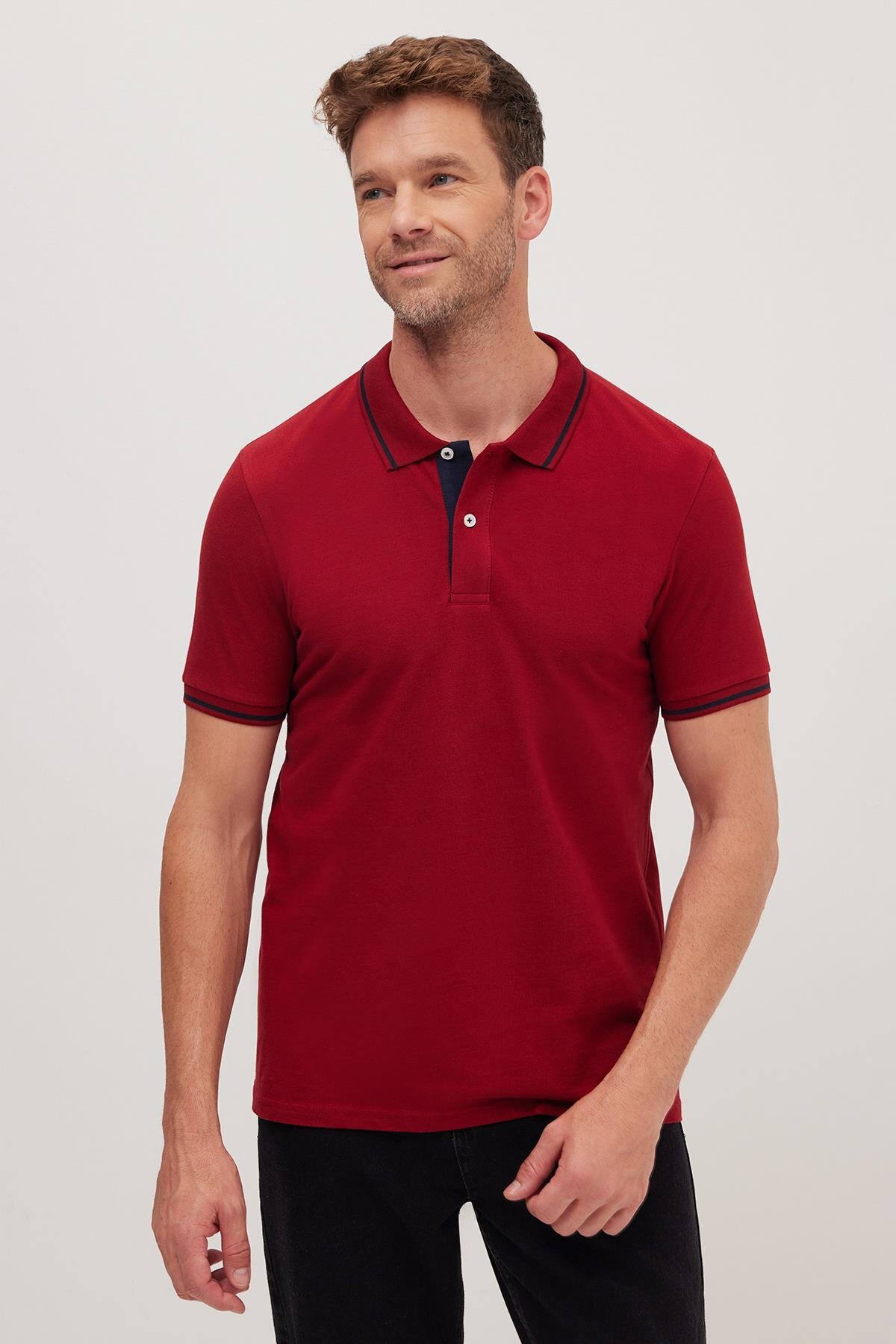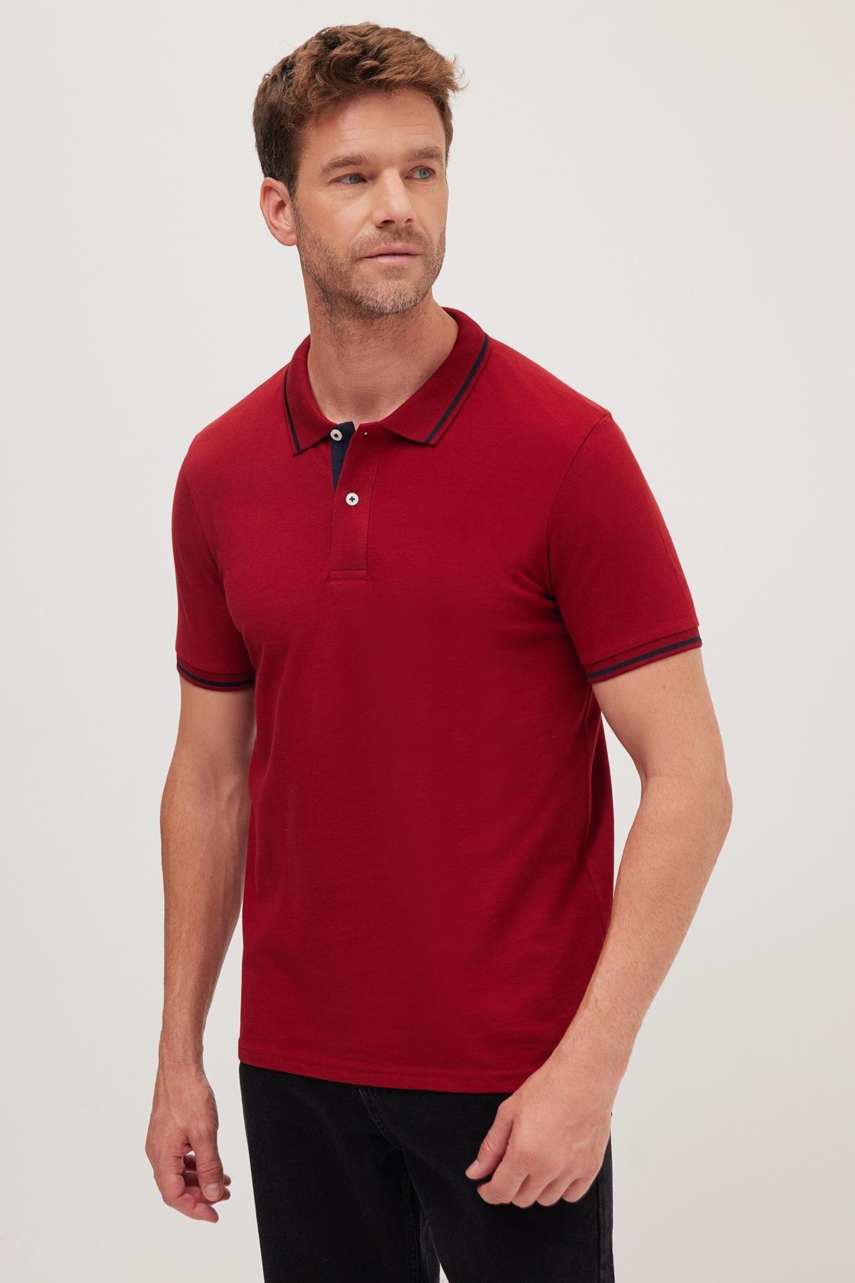 Tudors Men's Slim Fit Slim Fit 100% Cotton Soft Texture Cool Keeping Fabric Plain Pique Claret Red Polo Neck T-Shirt | ByTR
