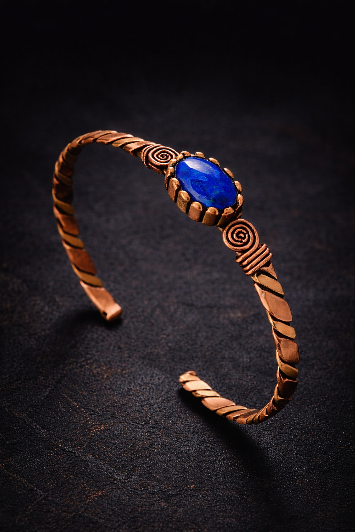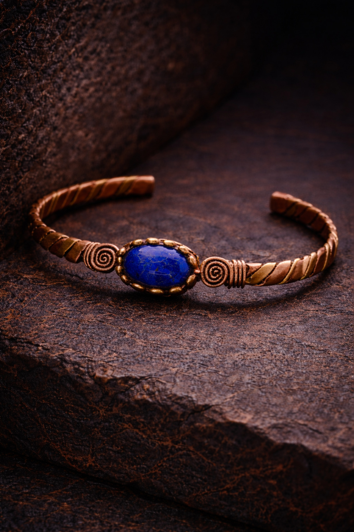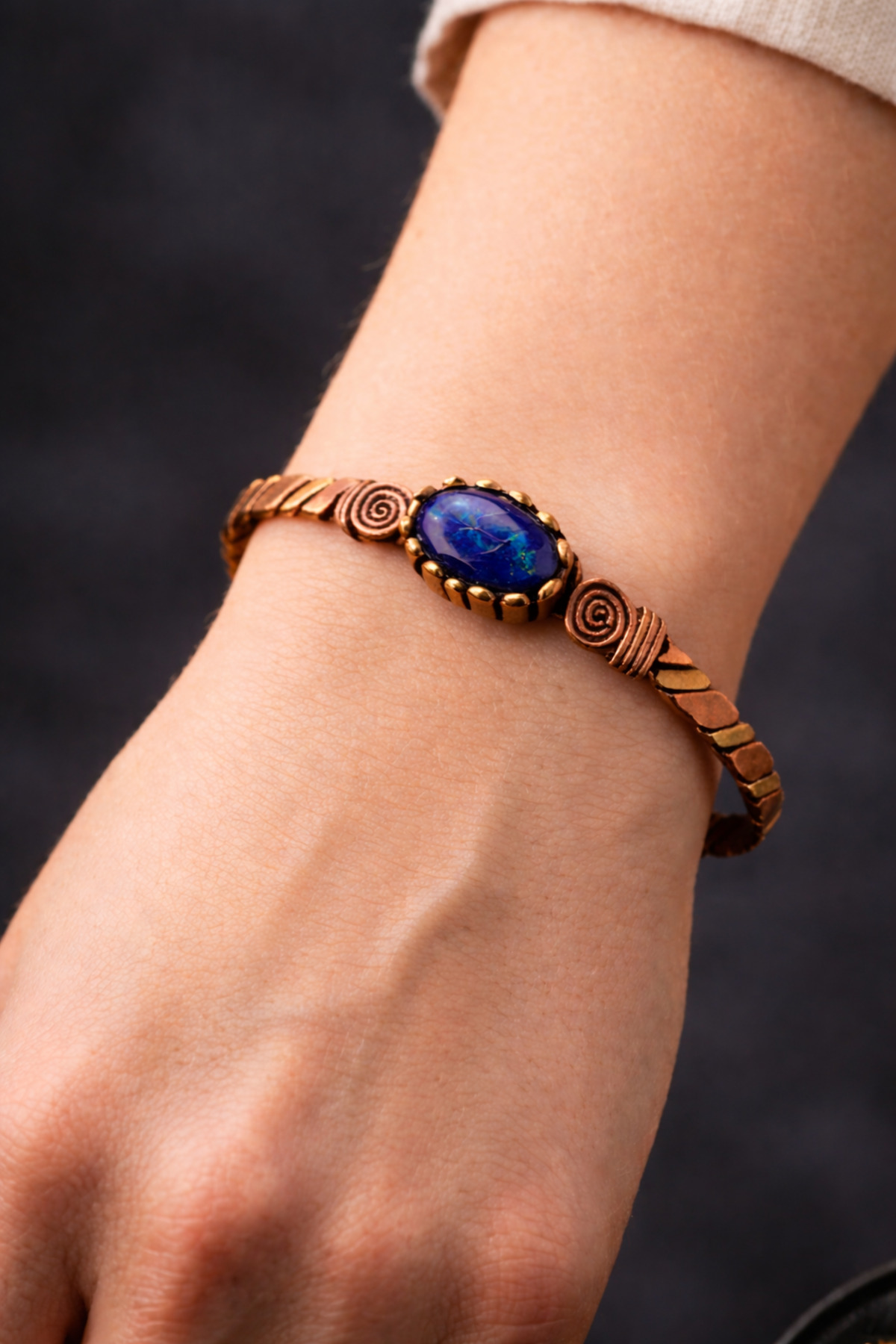 Lapis Stone Copper Bracelet, which combines the timeless energy of natural stones with handcraft, adds character to your style with its strong stance and aesthetic details