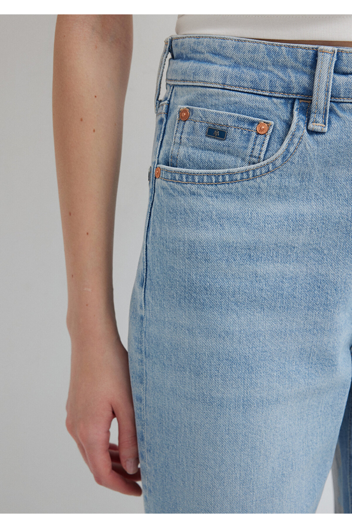 Straight High Waist Flat Leg Mannequin size: Height: 174 cm / Waist: 60 cm /Chest: 84 cm / Hip: 88 cm Materiel: 99% Cotton 1% Elastane Fabric Type: Denim Cuff: Flat Leg Sleeve: Flat Leg Gender: Women's Fit: Straight Production Place: Turkey Waist: High Waist