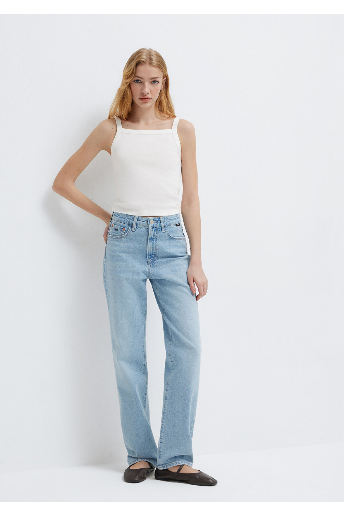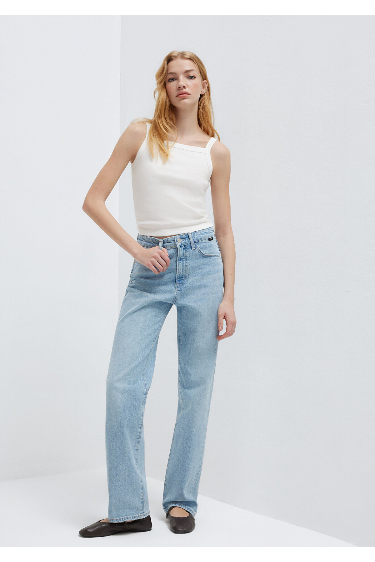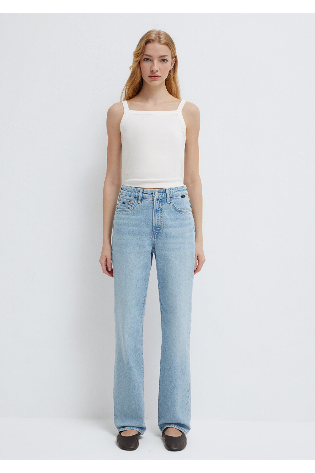 Straight High Waist Flat Leg Mannequin size: Height: 174 cm / Waist: 60 cm /Chest: 84 cm / Hip: 88 cm Materiel: 99% Cotton 1% Elastane Fabric Type: Denim Cuff: Flat Leg Sleeve: Flat Leg Gender: Women's Fit: Straight Production Place: Turkey Waist: High Waist