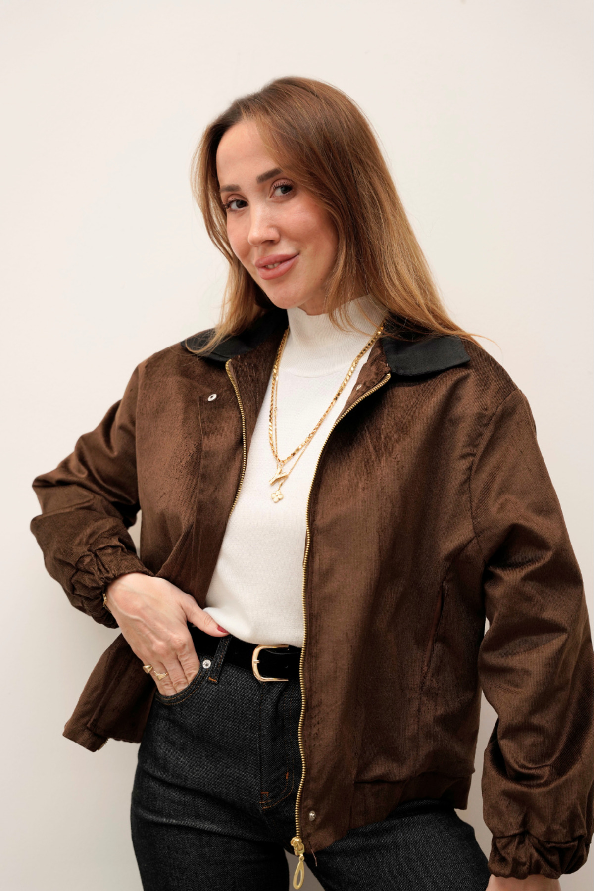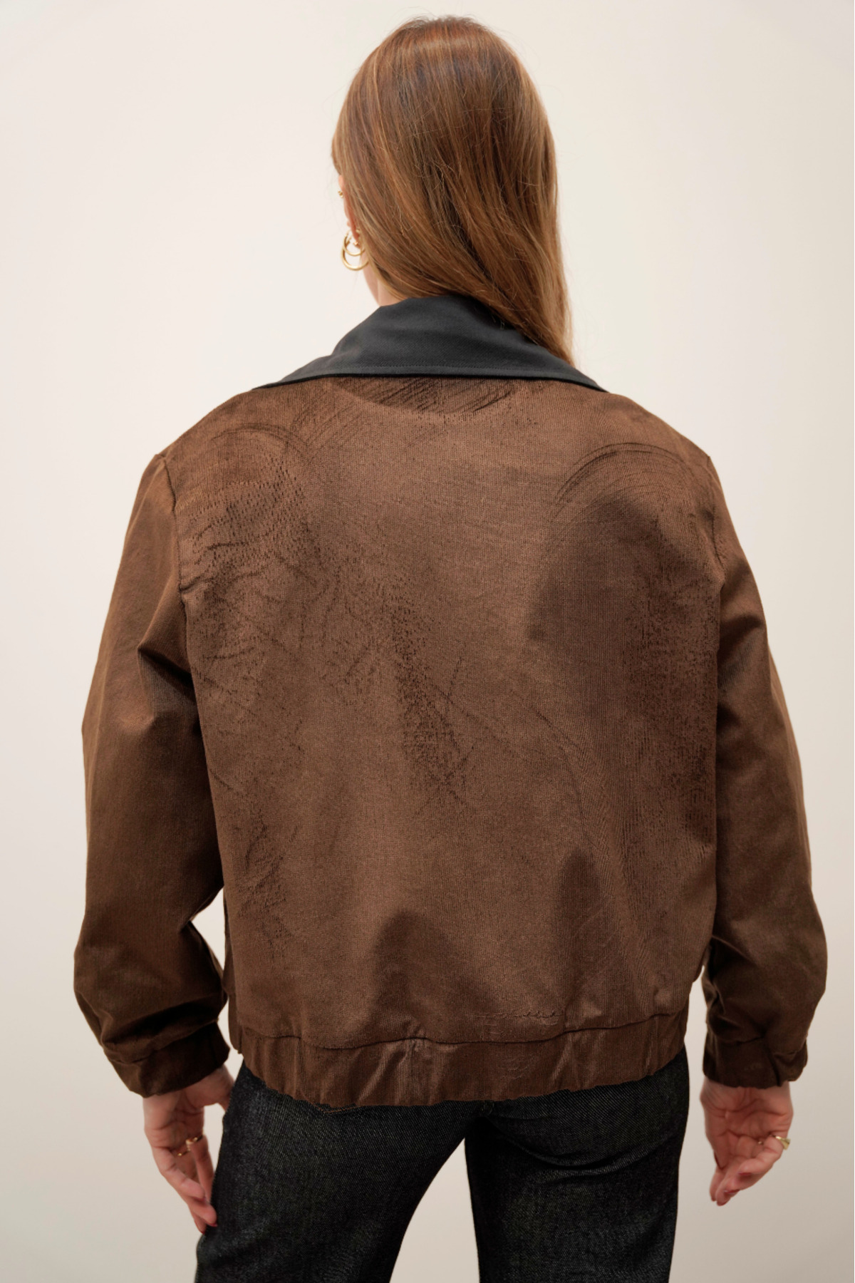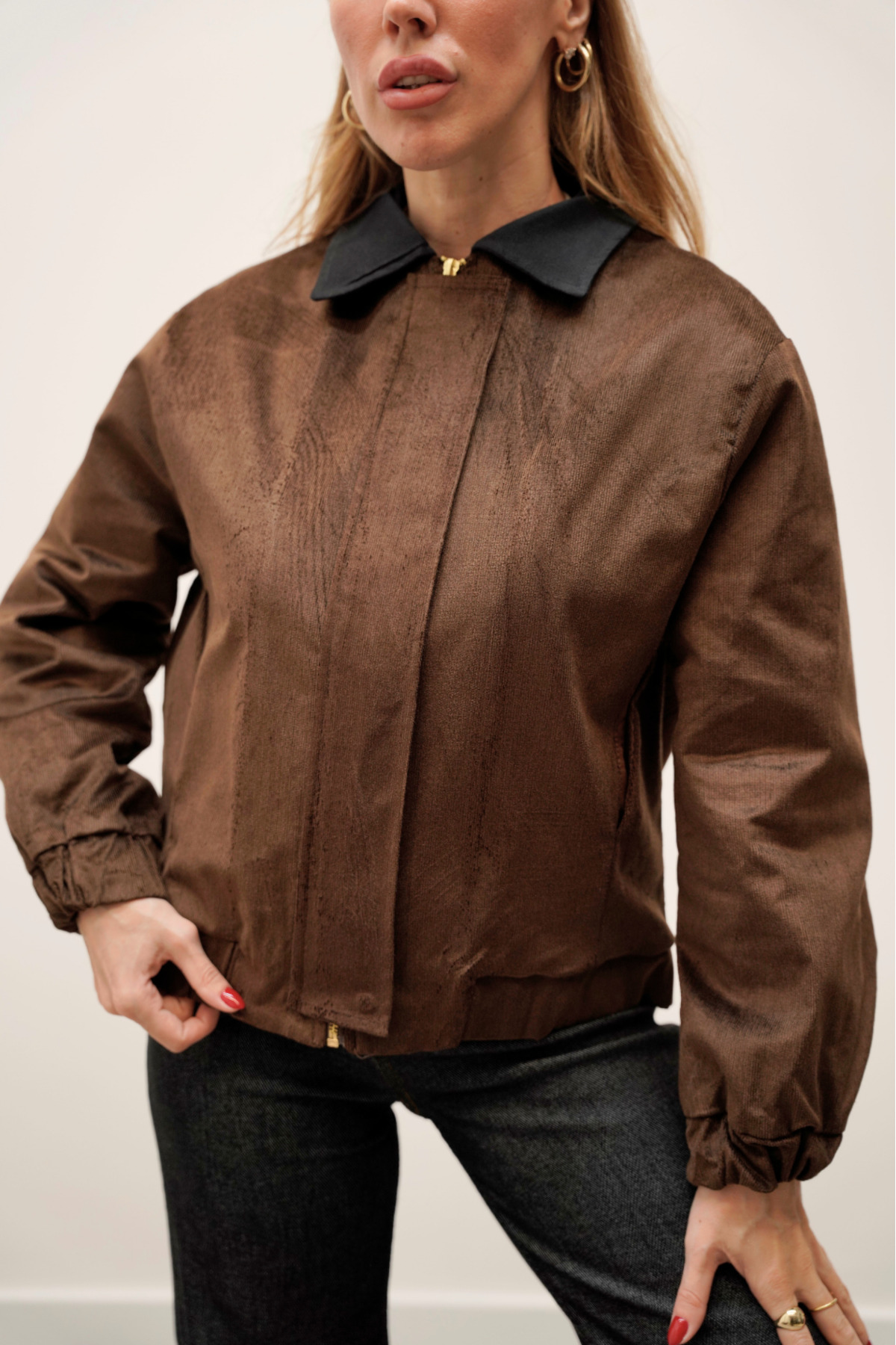 Velvet Bomber Zippered Coffee Jacket