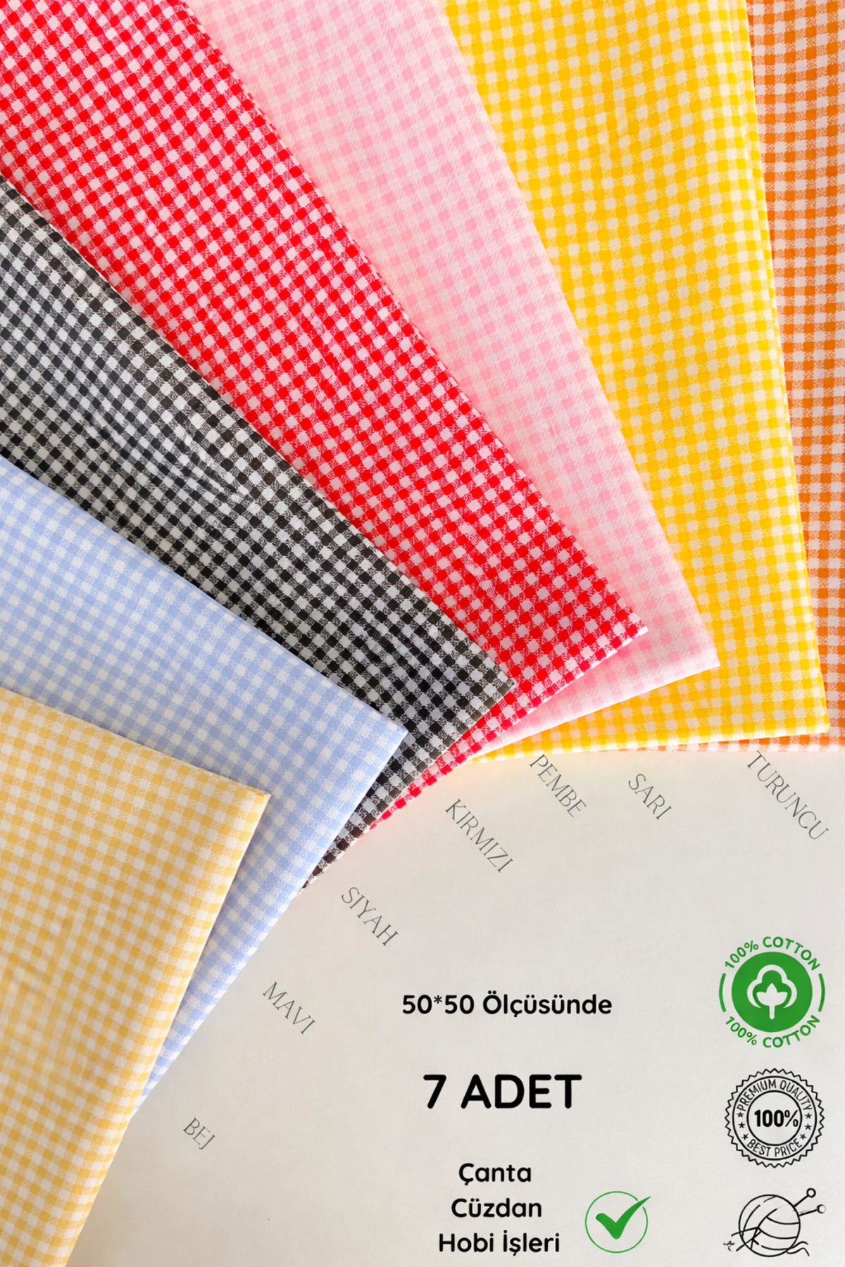 7 pieces of multicolored pötikare patterned cotton fabric with a size of 50 cm, ideal for handbags, wallets and hobbyist's work.