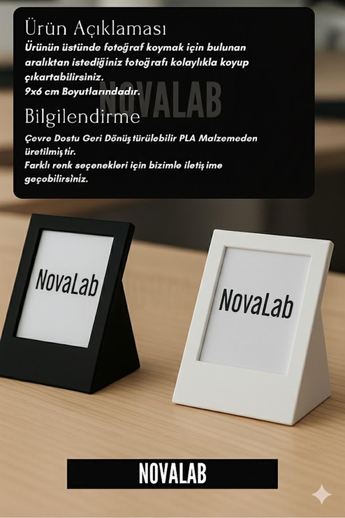 The black and white photo frame, which brings the classic Instax style to your home, provides a stylish touch on your desk.