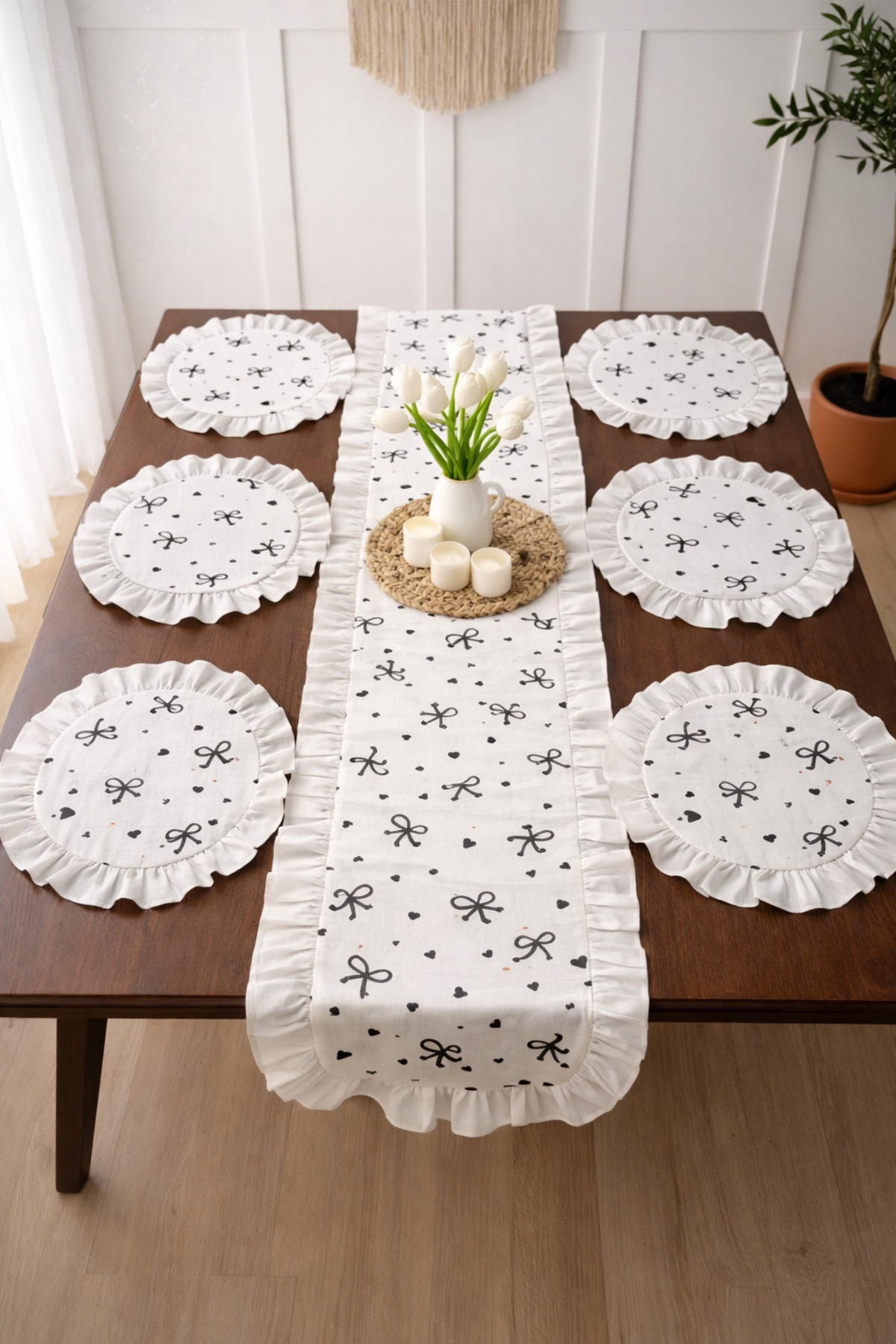 It is an elegant complement for daily and guest tables with creamy floor and plain ruffle details.