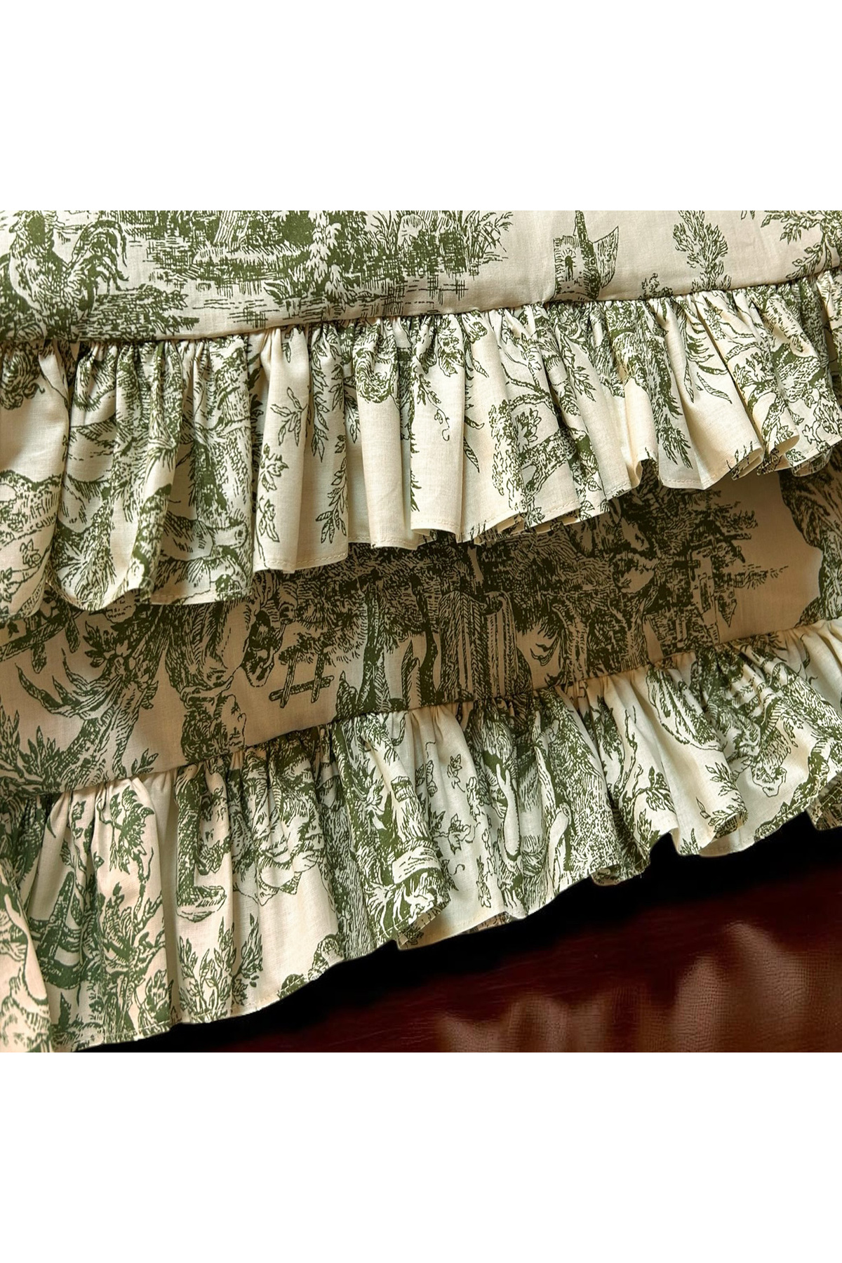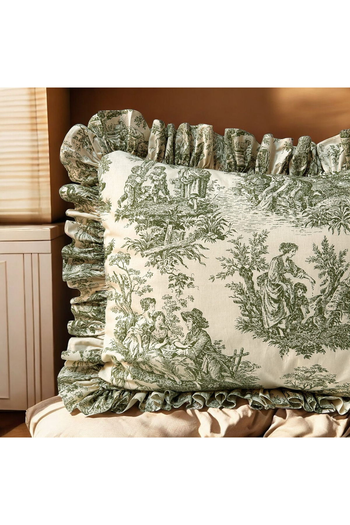 Double Ruffle Duvet Cover Set French Toile De jouy Pattern 4 Pieces