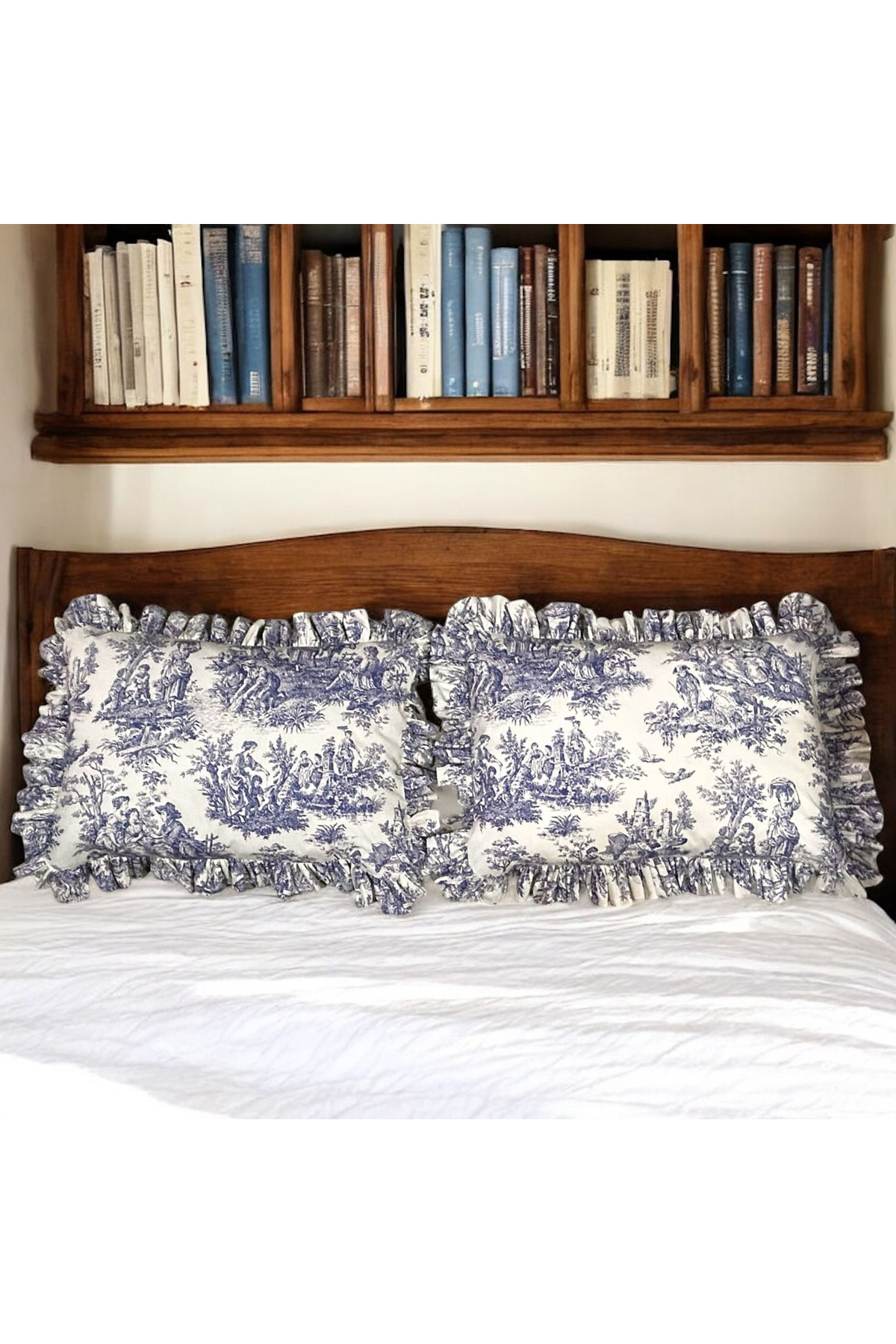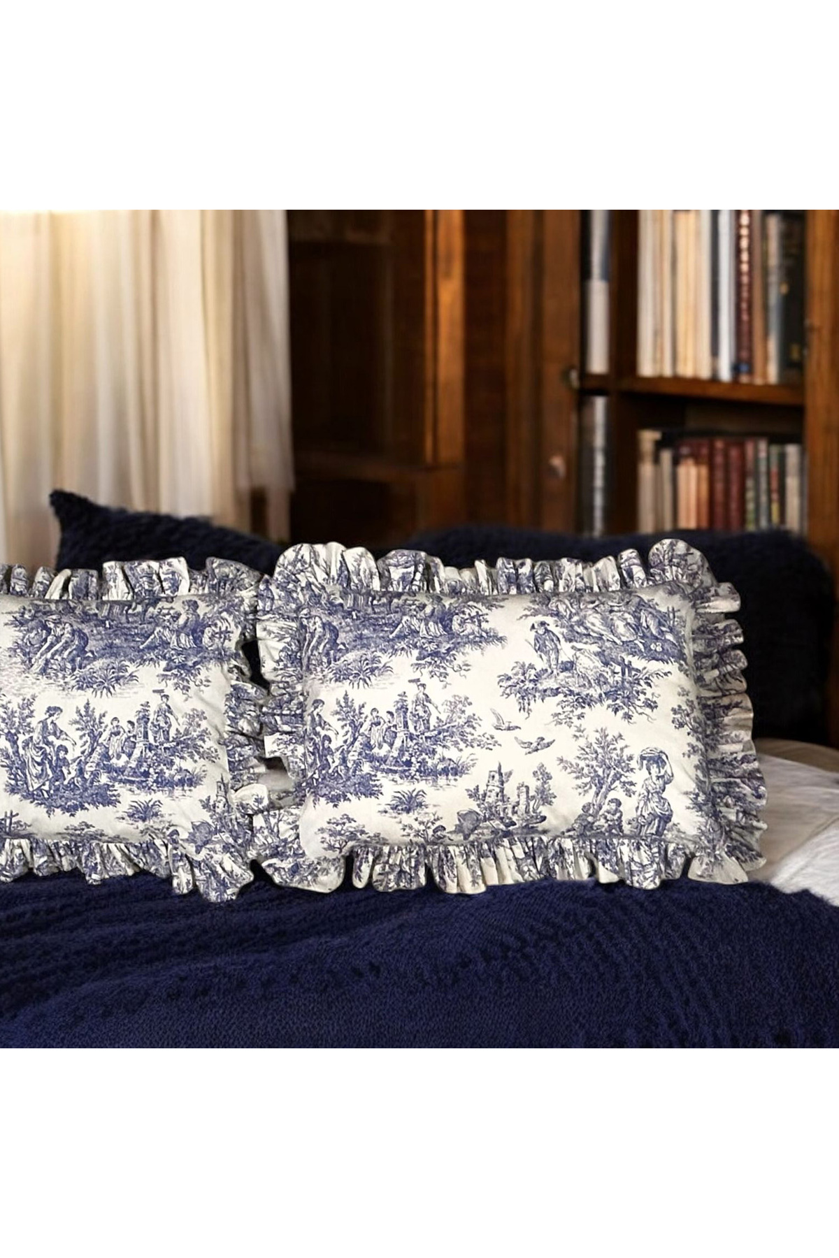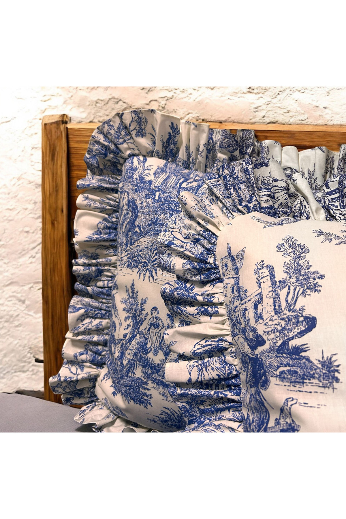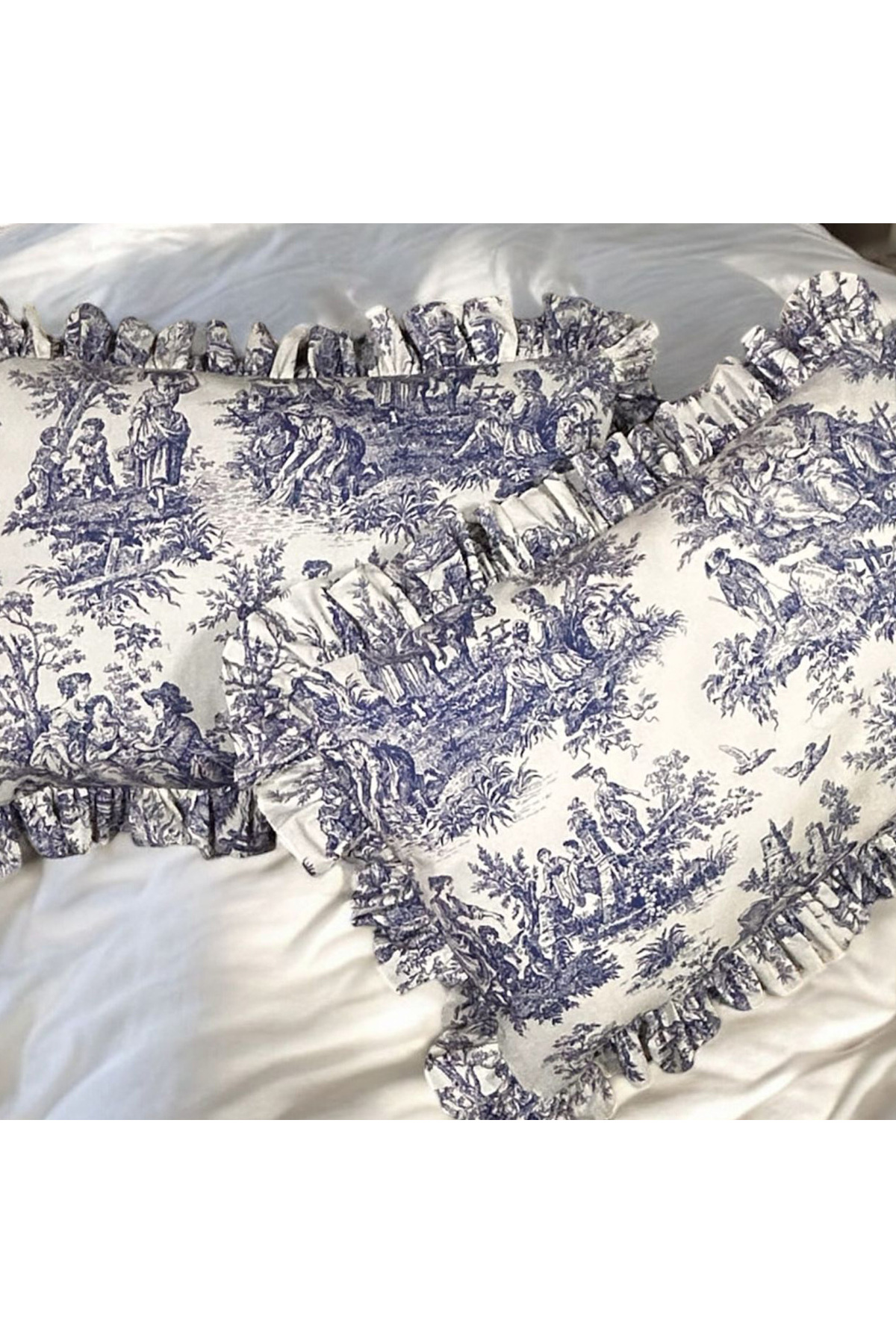MundoLindo Double Ruffle Duvet Cover Set French Toile De jouy Pattern 4 Pieces | ByTR
