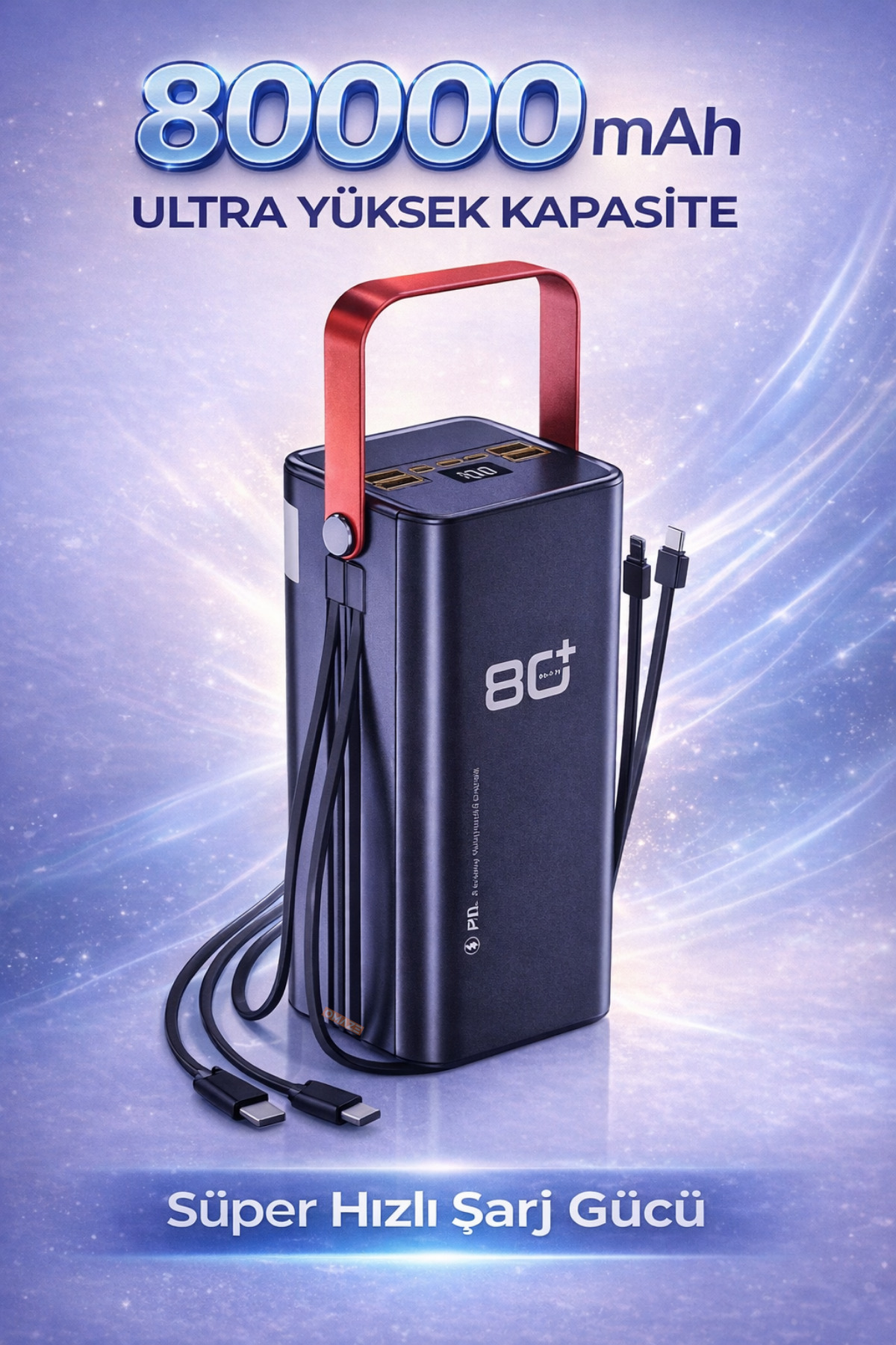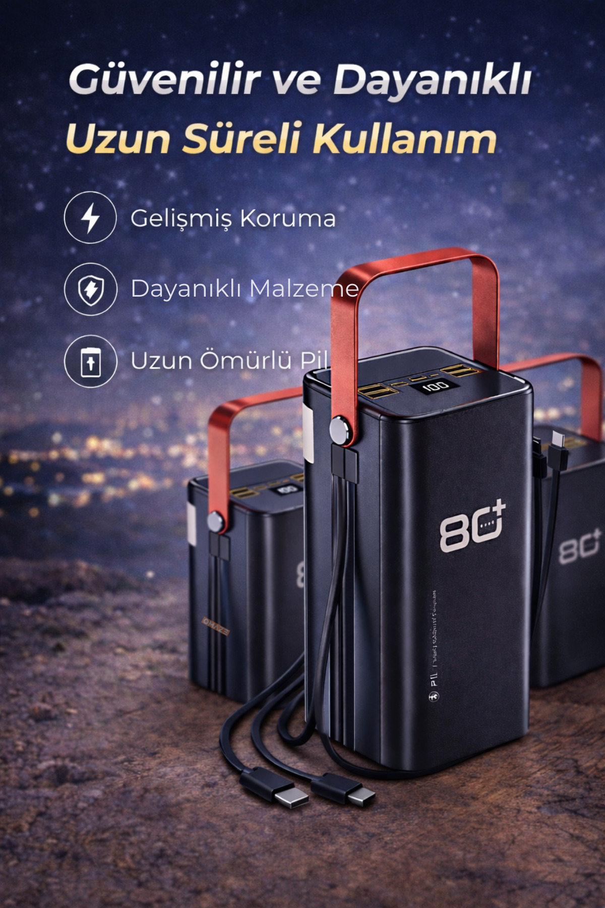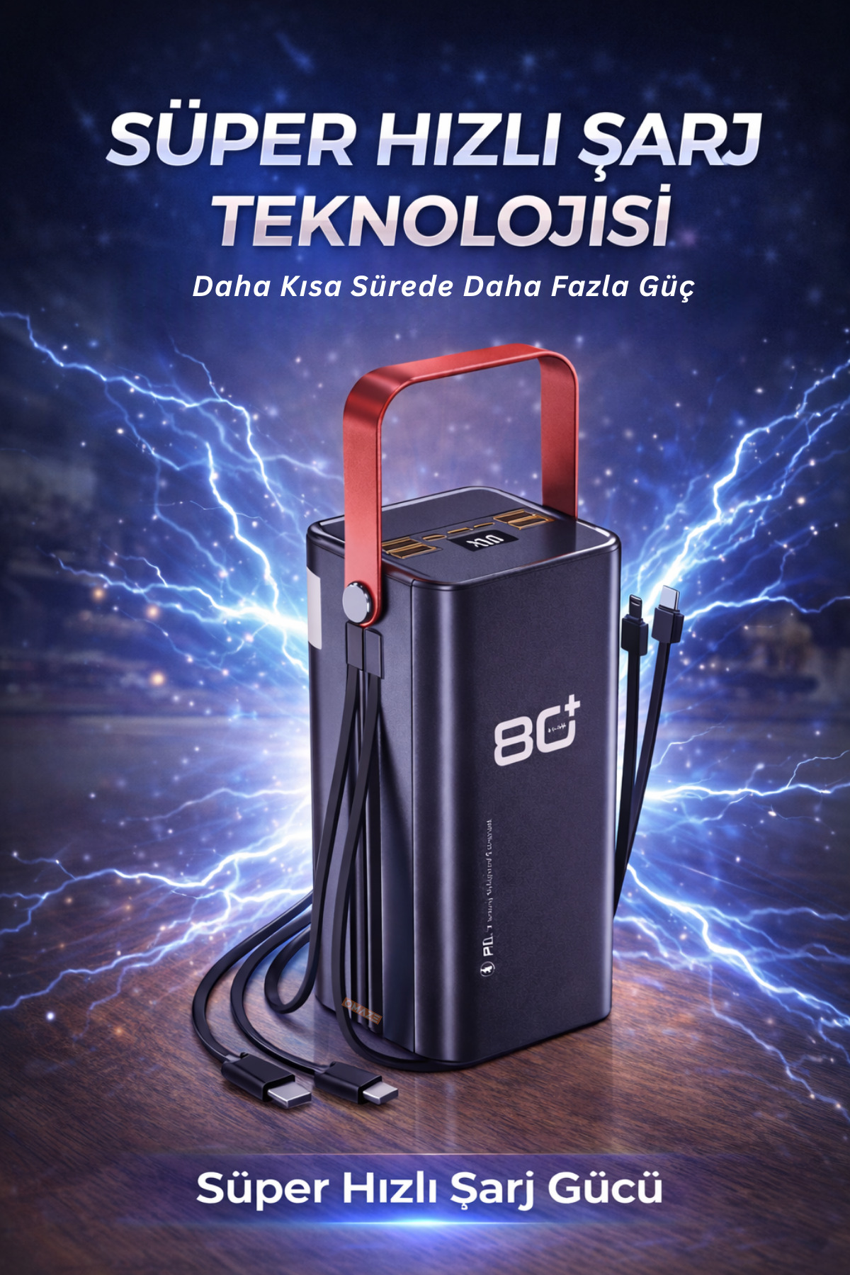 80,000 mAh Powerbank LED Light PD Fast Portable Charging Emergency Light with Digital Display