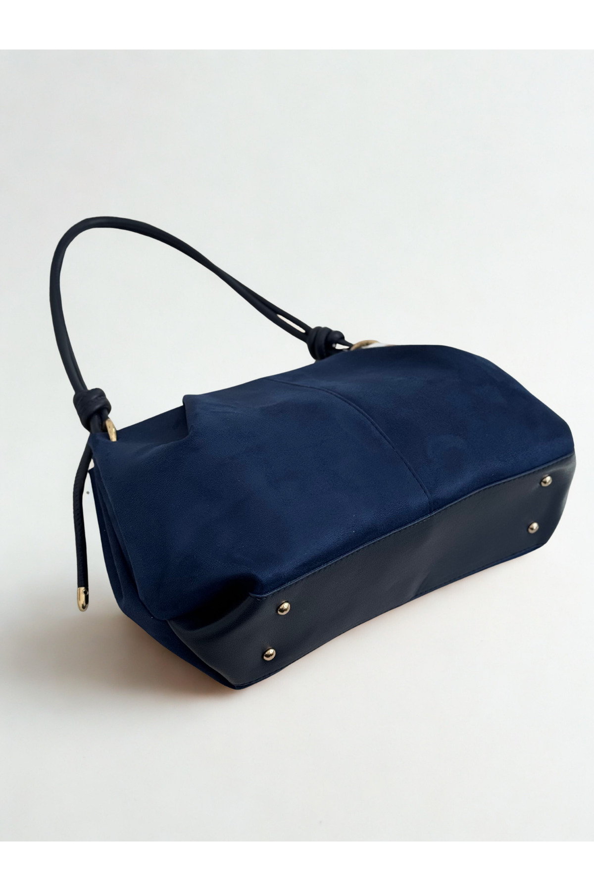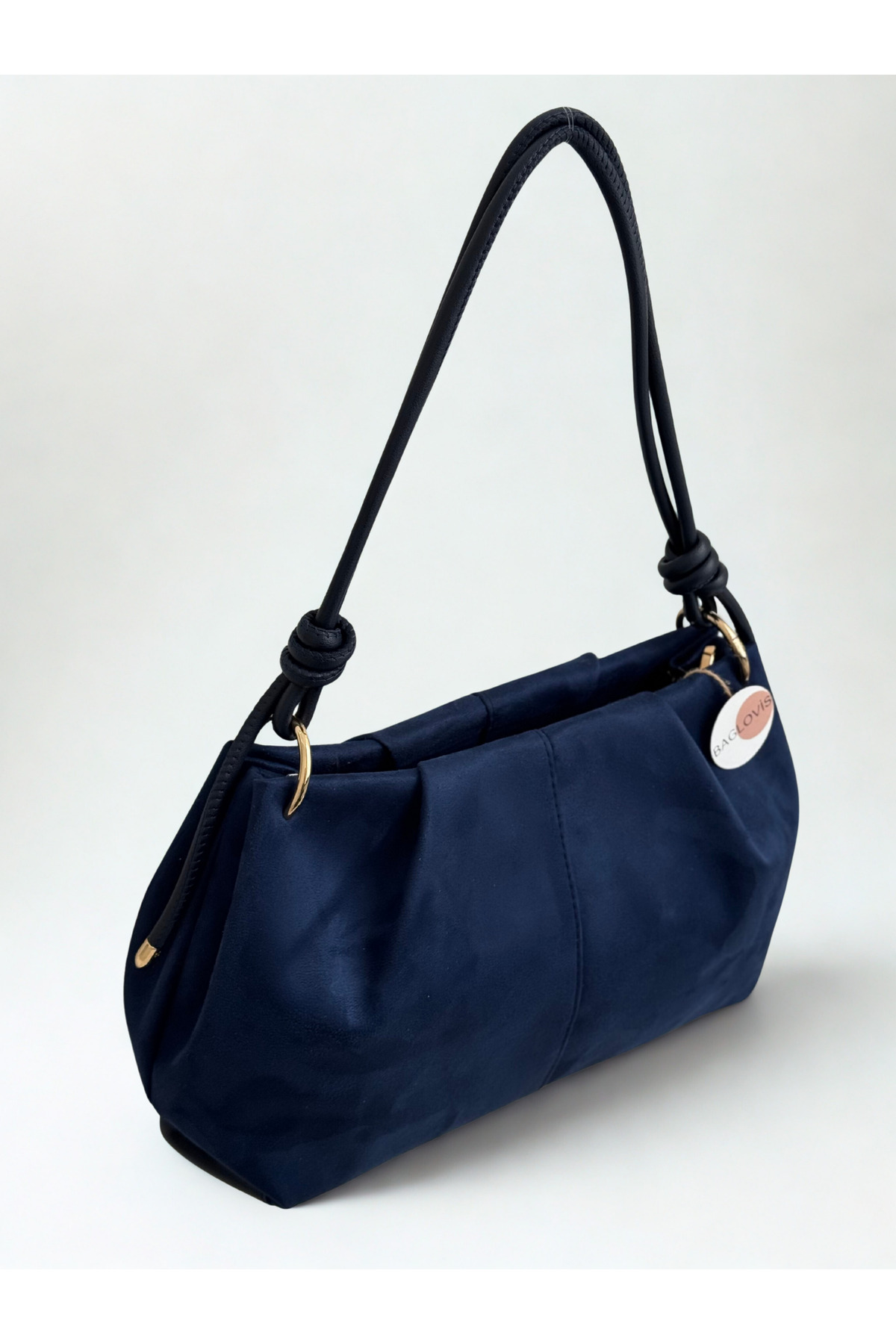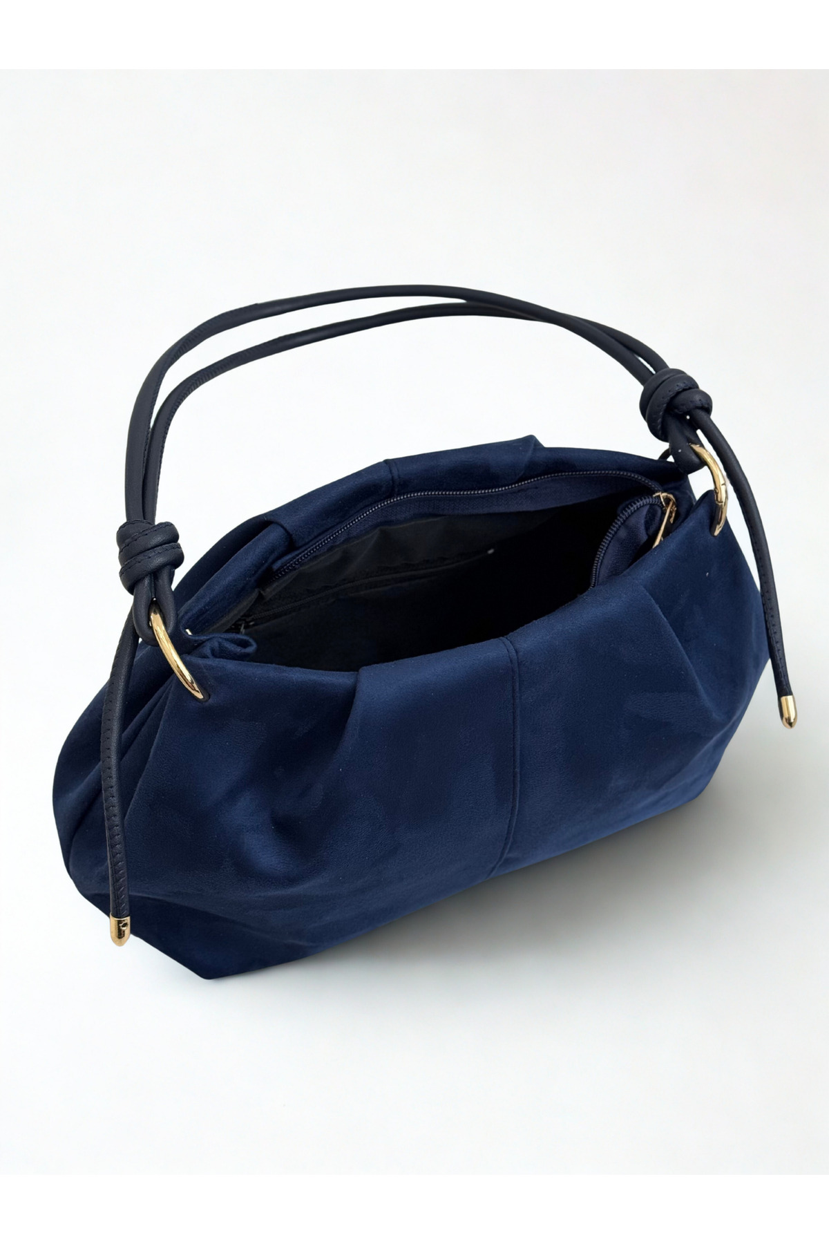 BAGLOVİS WOMEN'S NAVY BLUE SUEDE SHOULDER BAG WITH KNOT STRAP EN35 BOY20 | ByTR