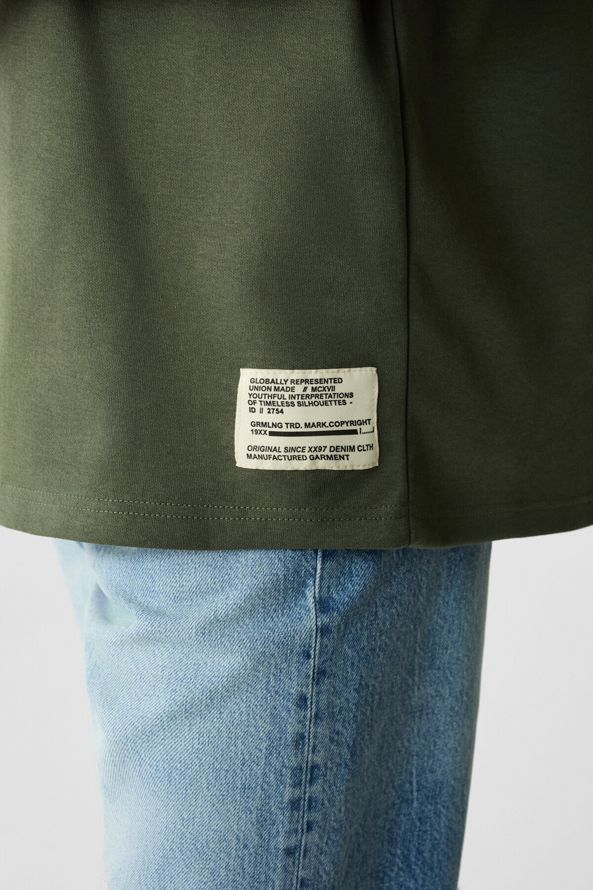 GRIMELANGE JOEL Men's 100% Organic Cotton Thick Fabric Custom Textured Label Detailed Oversize Khaki T-Shirt | ByTR