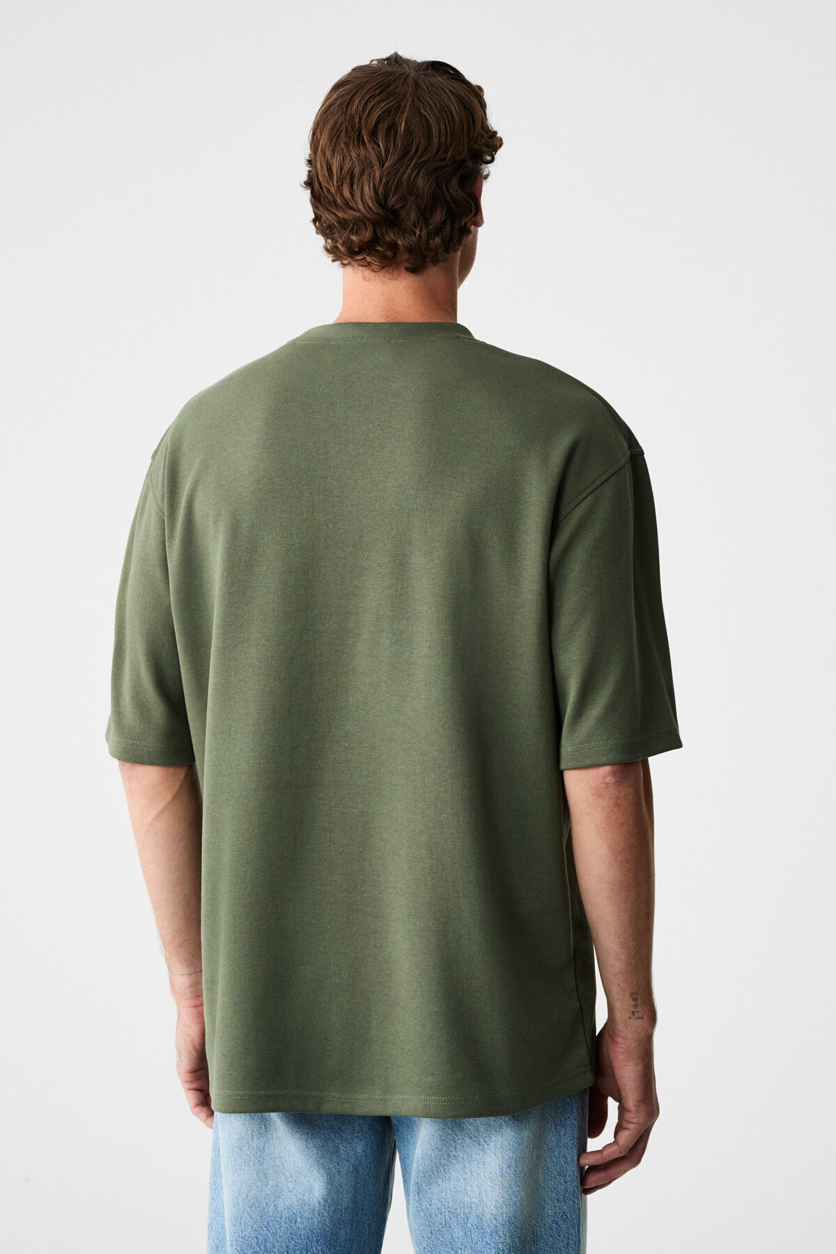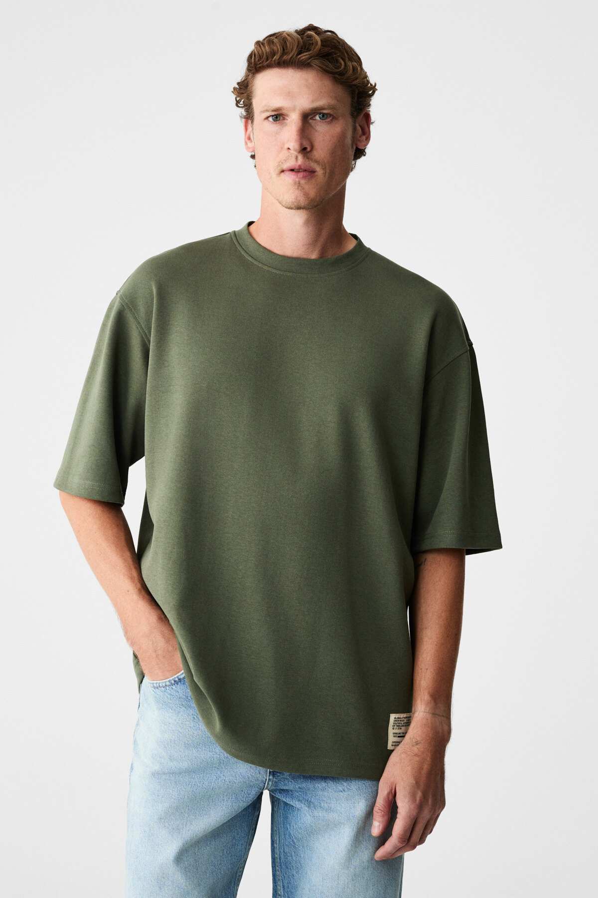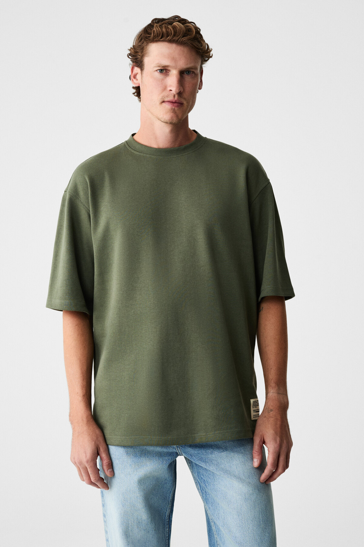 JOEL Men's 100% Organic Cotton Thick Fabric Custom Textured Label Detailed Oversize Khaki T-Shirt