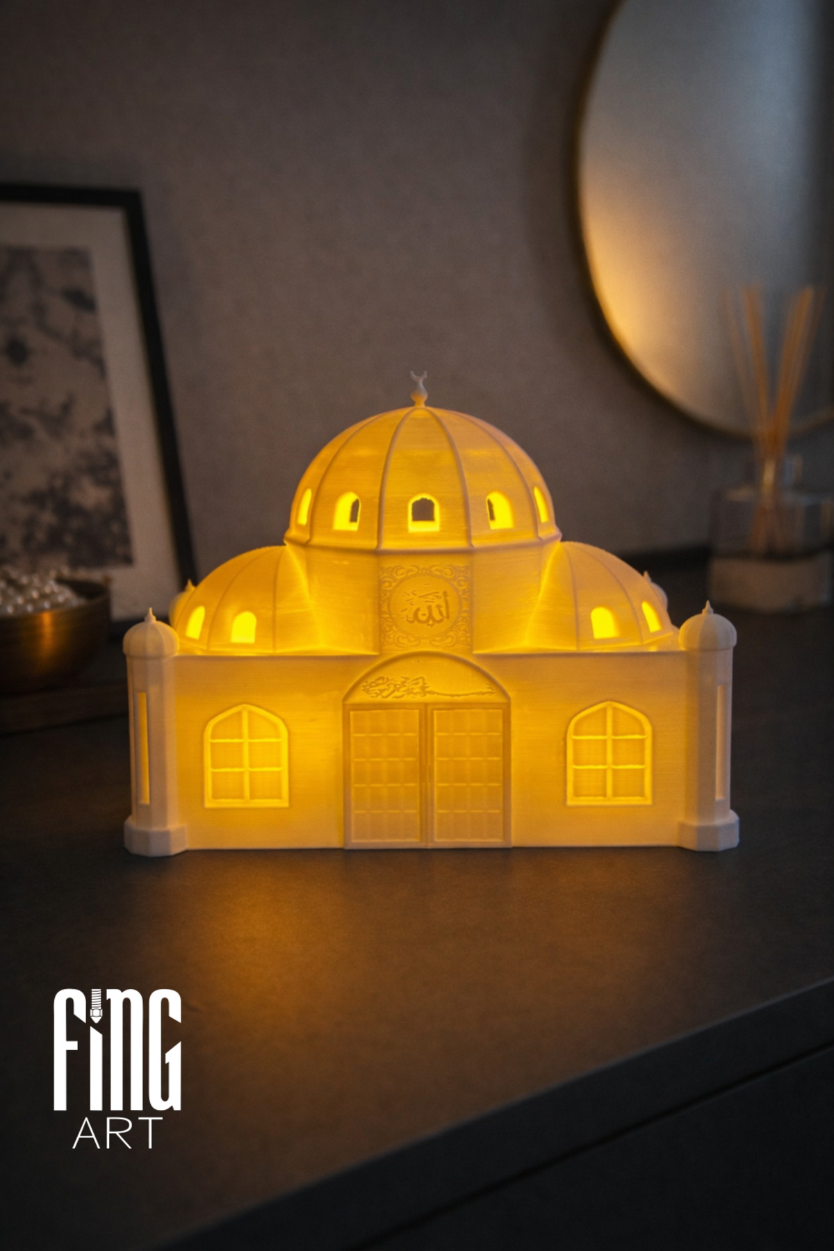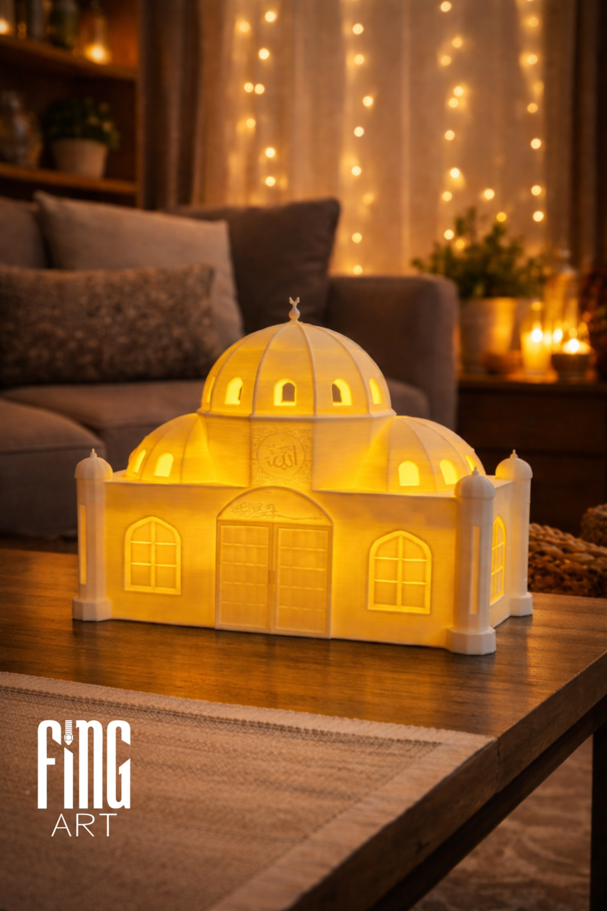 Root Made 4 Minaret Mosque with Ramadan Theme - Islamic Home and Office Decor (Tealight Candle Gift) | ByTR