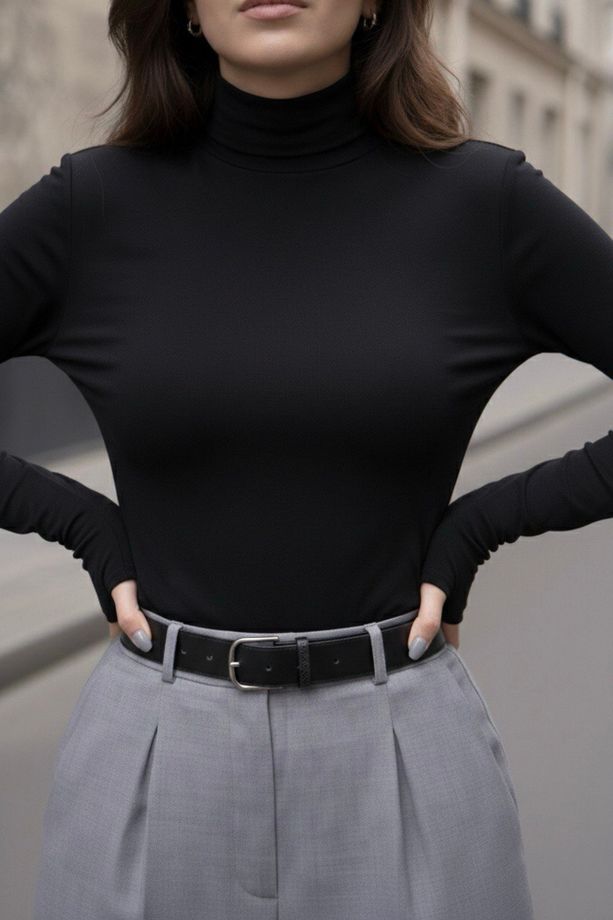 Women's bodysuit with finger detail, which combines trendy and basic style, is ideal for daily use.