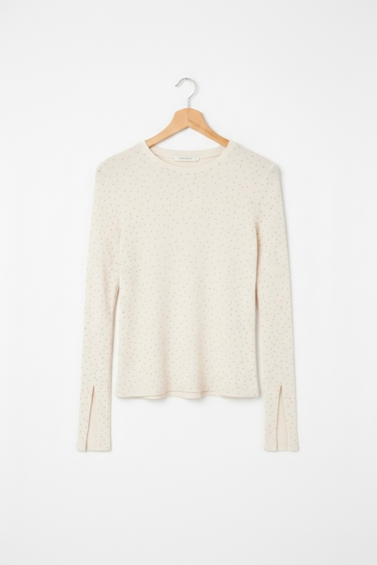 BANEGA Women's Stone Embroidered Finger Detail Flexible Modal Fabric White Blouse | ByTR