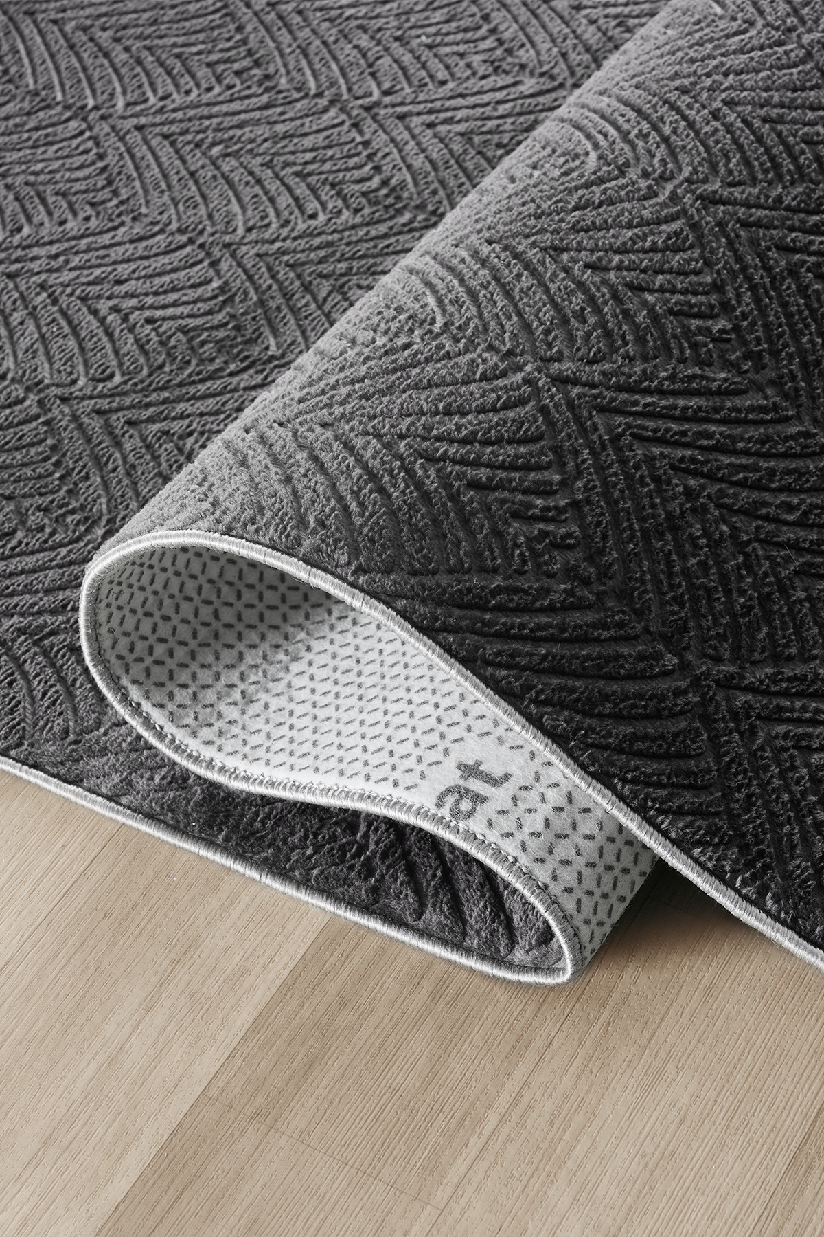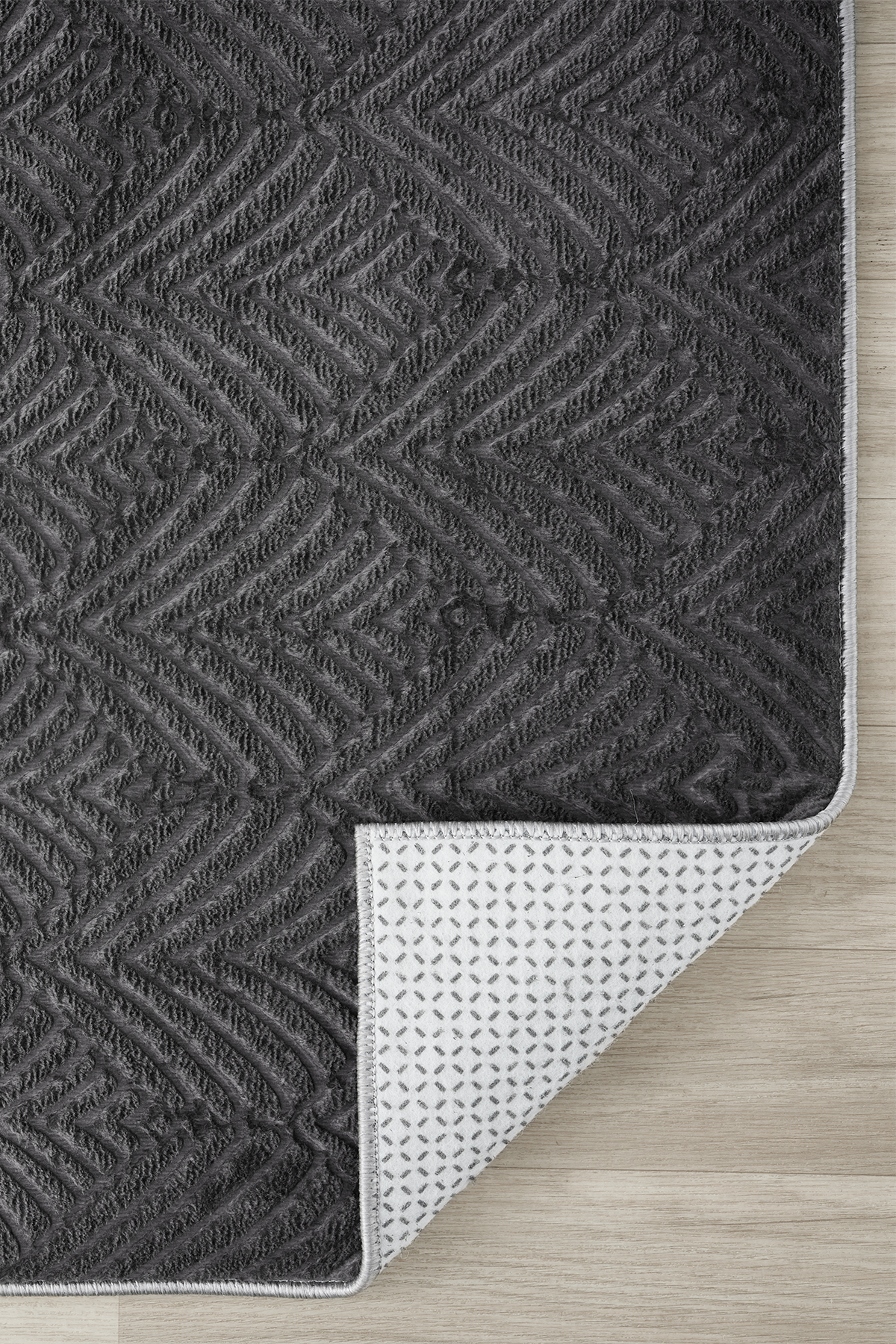 Raschel Carpet Premium Washable Stainproof Leaf Emboss Dark Grey Custom Series Anti-Slip Sole Carpet Runner | ByTR