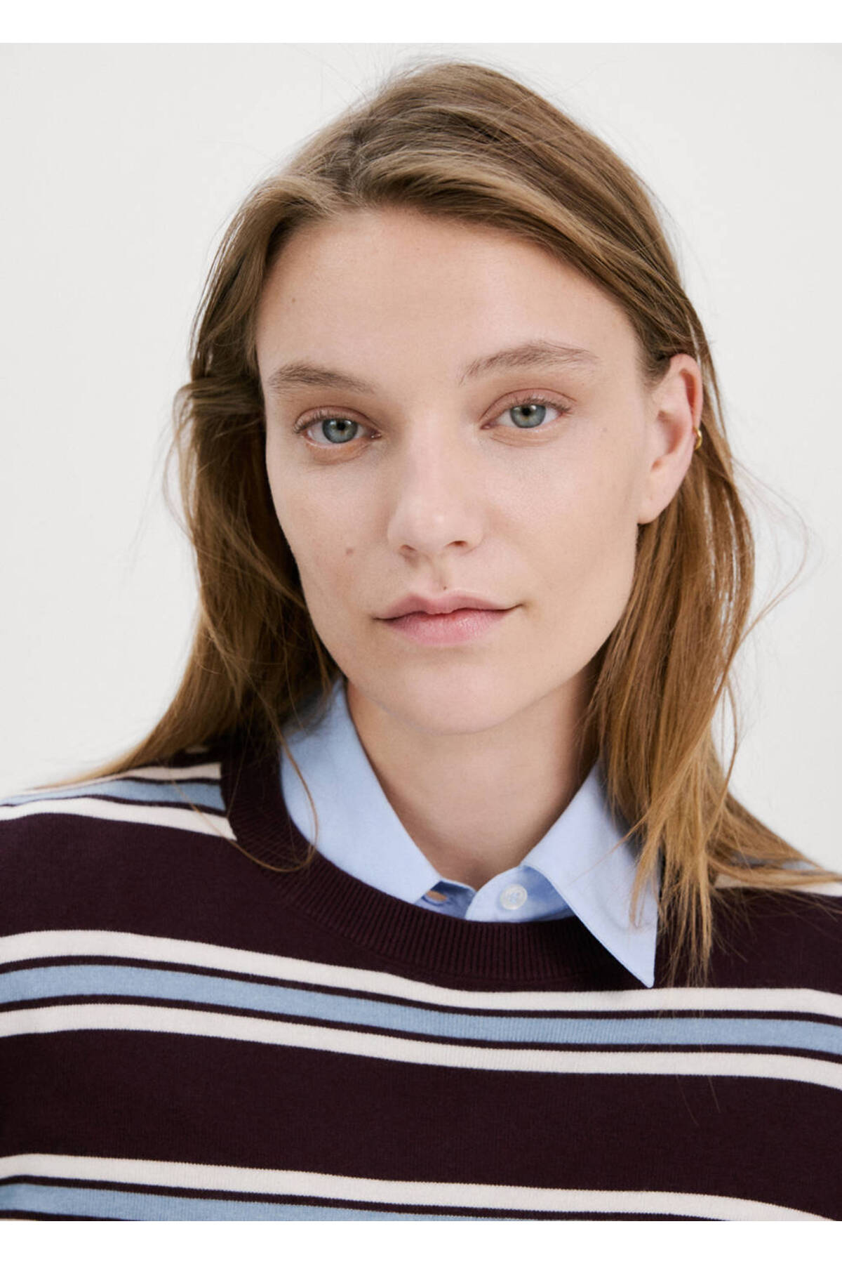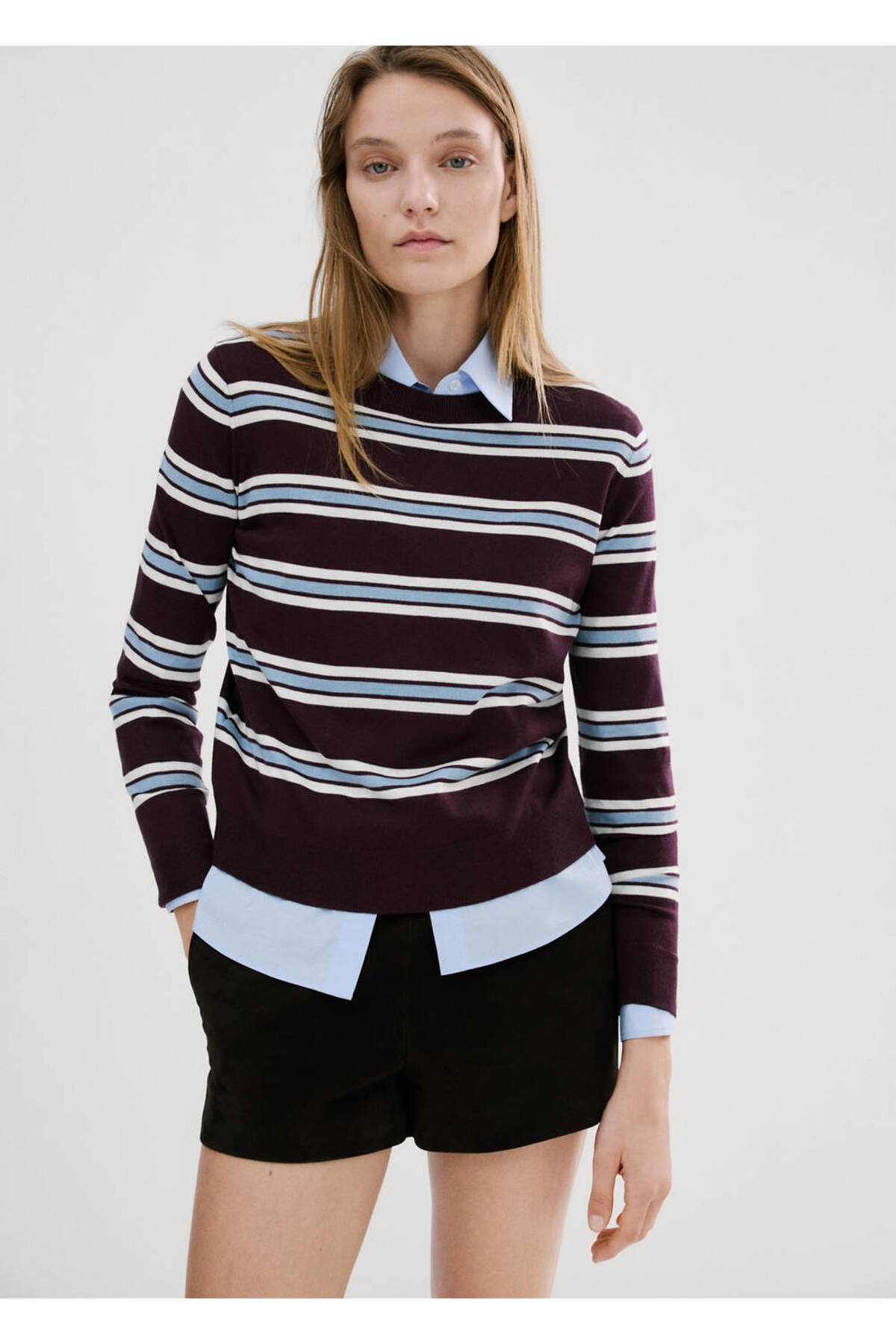 Knitwear fabric, Plain Design, Pattern: Striped, Round collar, Long sleeves, No closure, Disponible Plus.