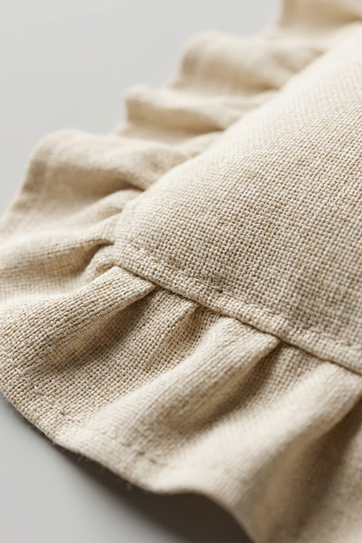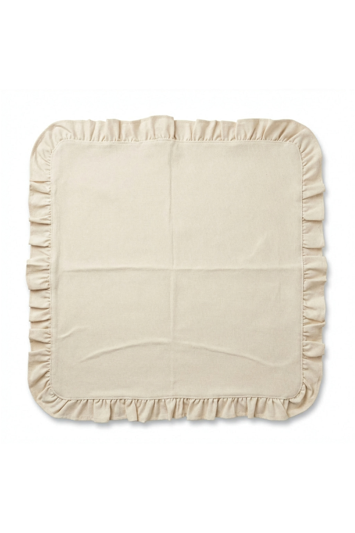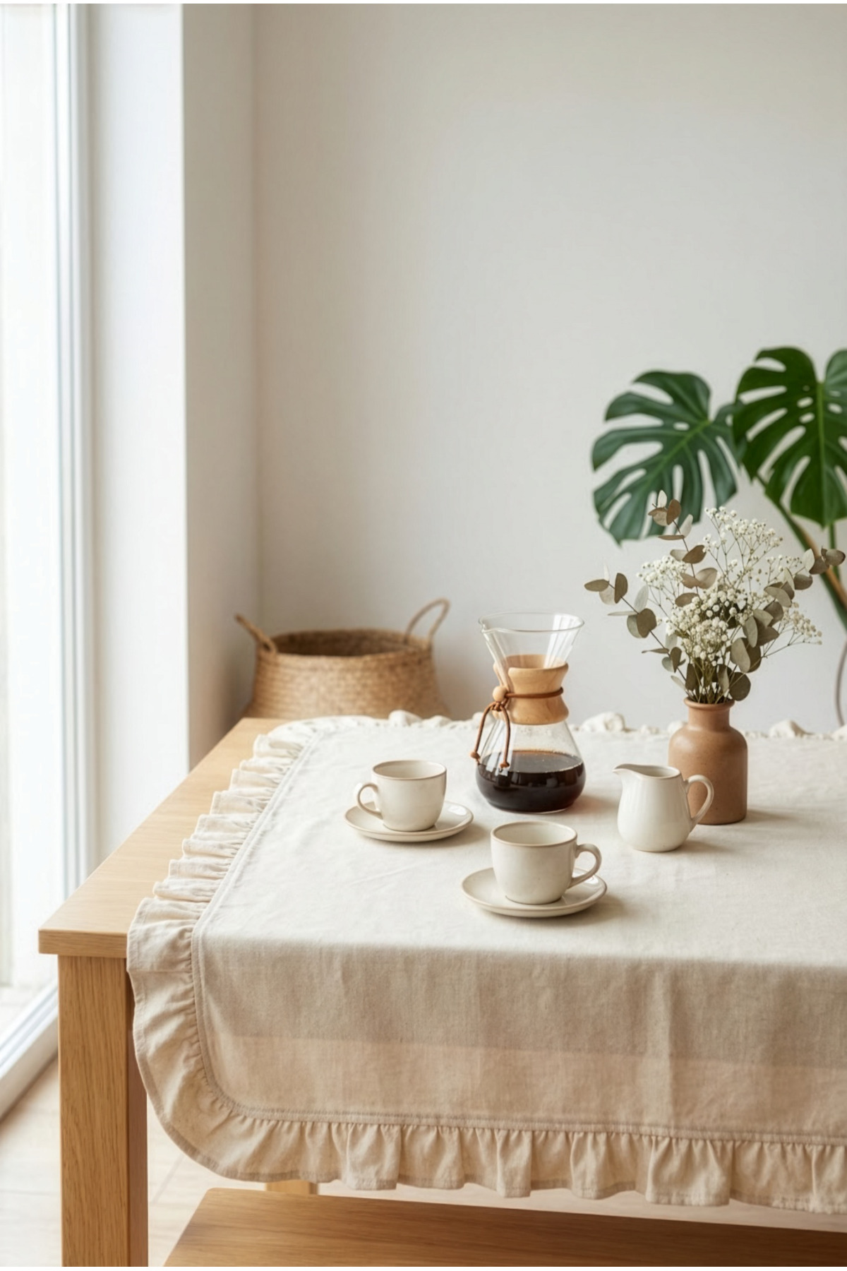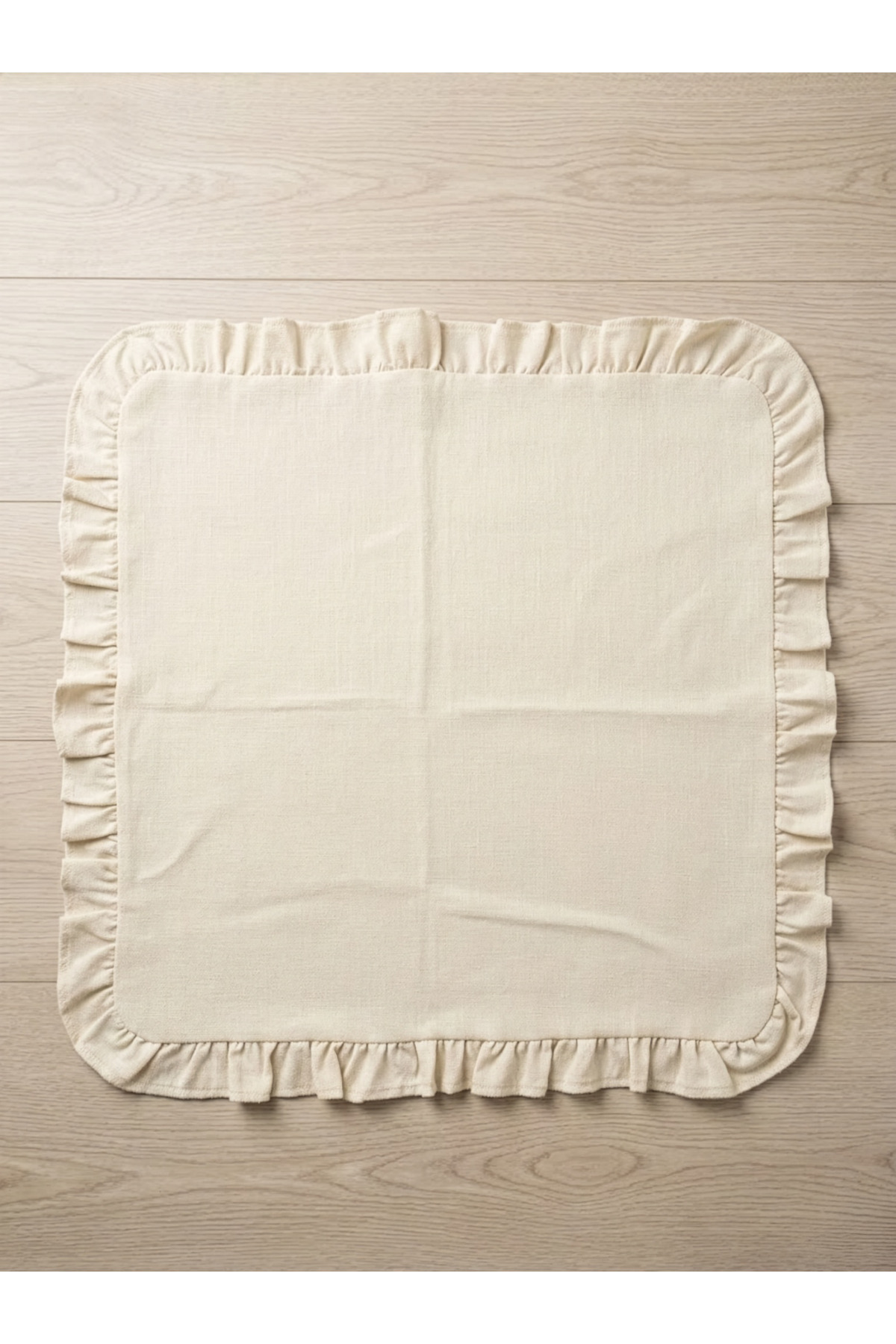It is a tablecloth with a ruffled edge detail designed to protect the table surface and give the decoration a soft, natural look.