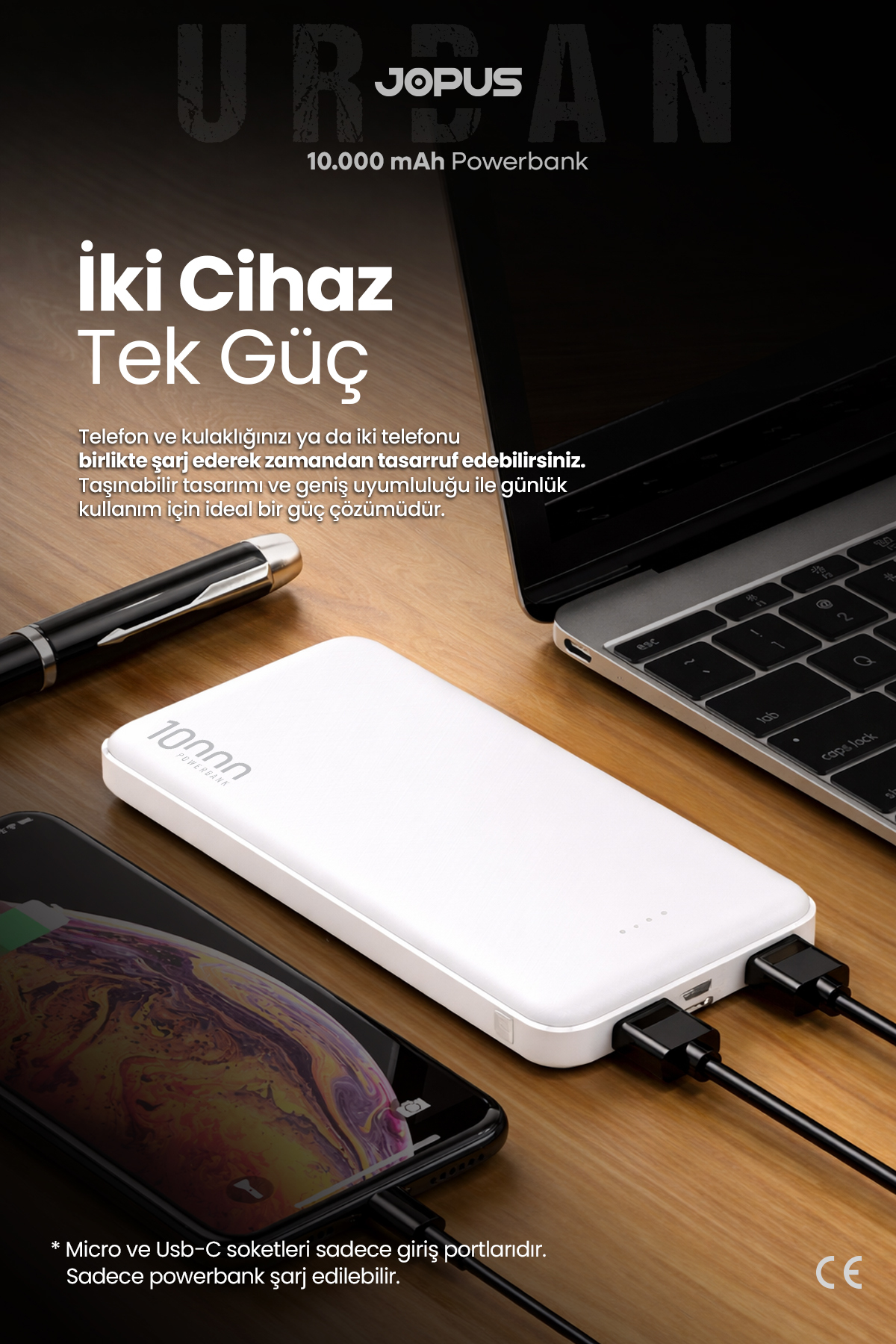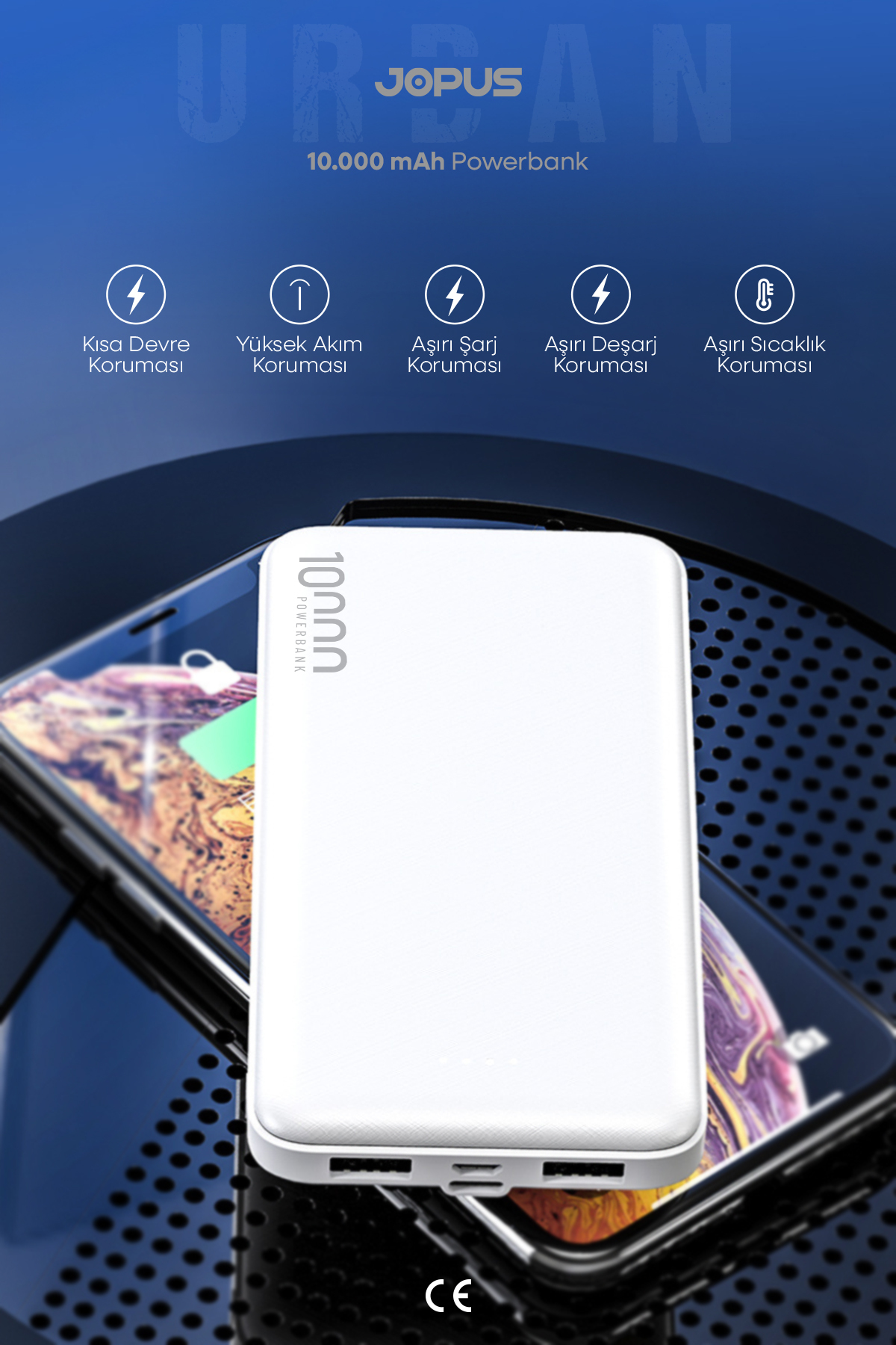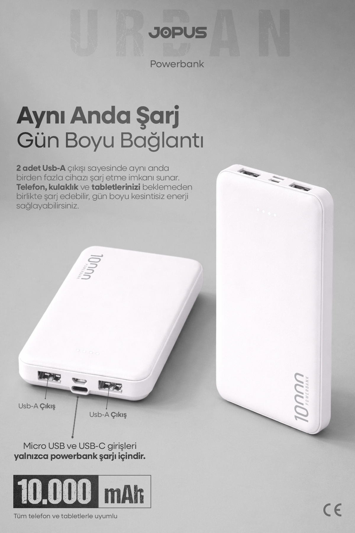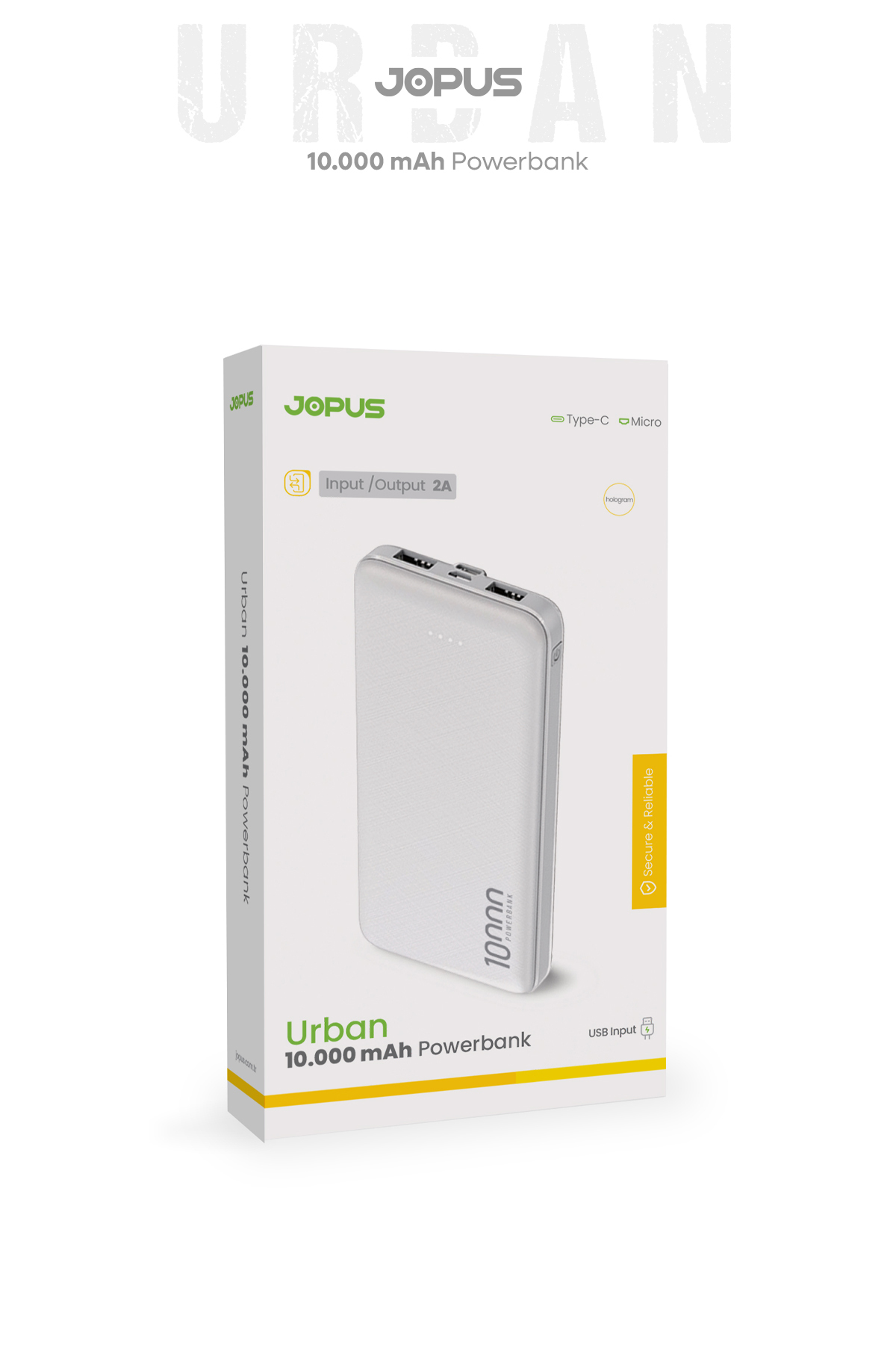 Jopus 10000mAh Powerbank - Led Light Indicator - Portable Charger - White JP-P10 | ByTR