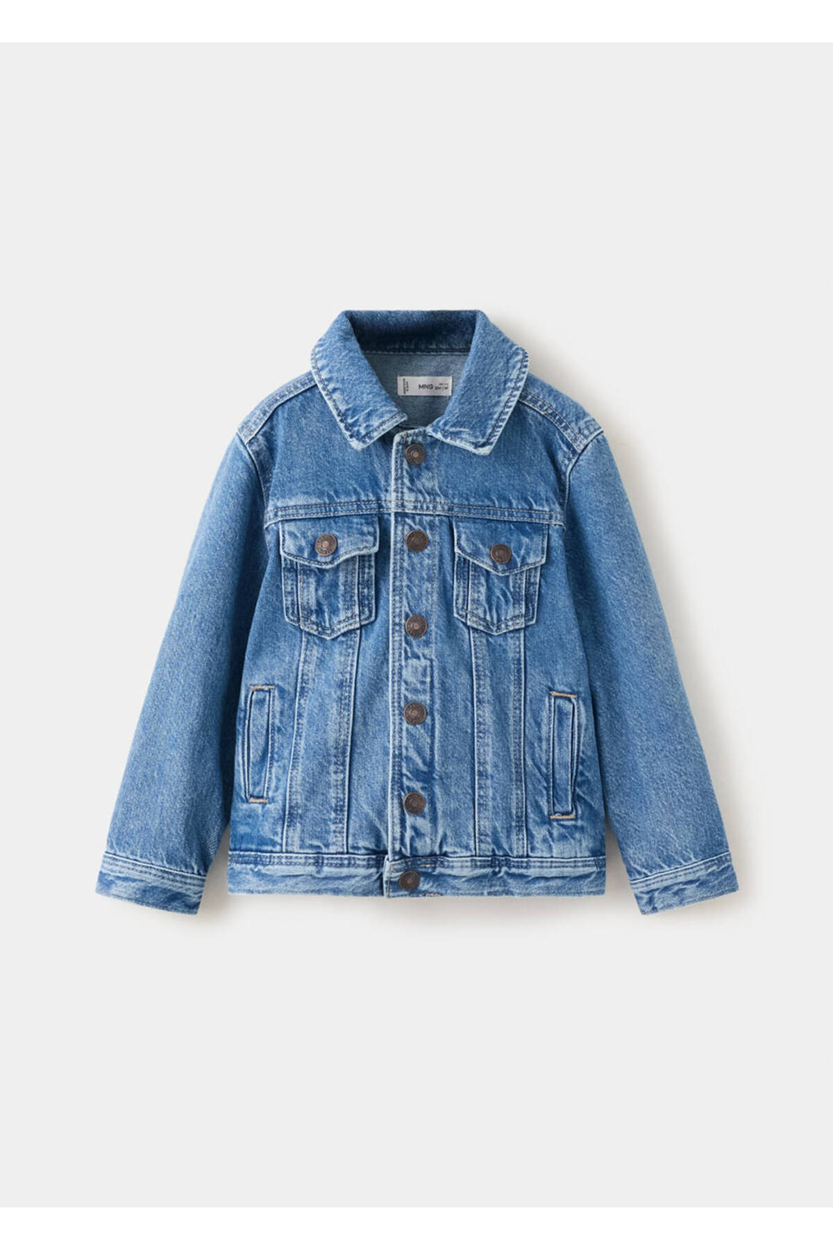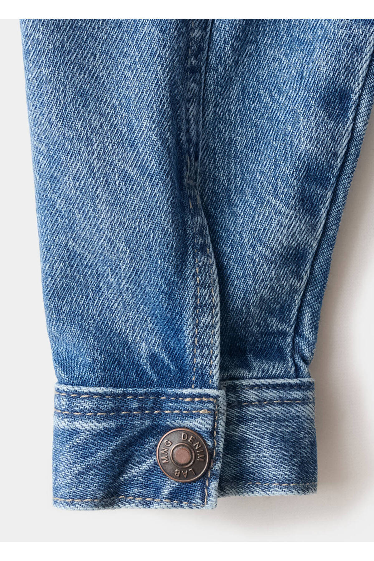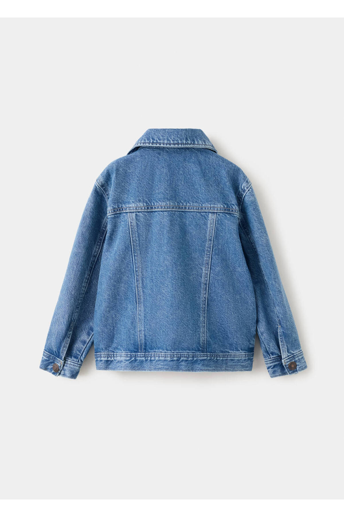 100% cotton fabric, Jean style cotton fabric, Plain Design, Shirt collar, Long sleeve with buttoned cuffs, Chest pocket with two buttons, Two side pockets, Front button closure.