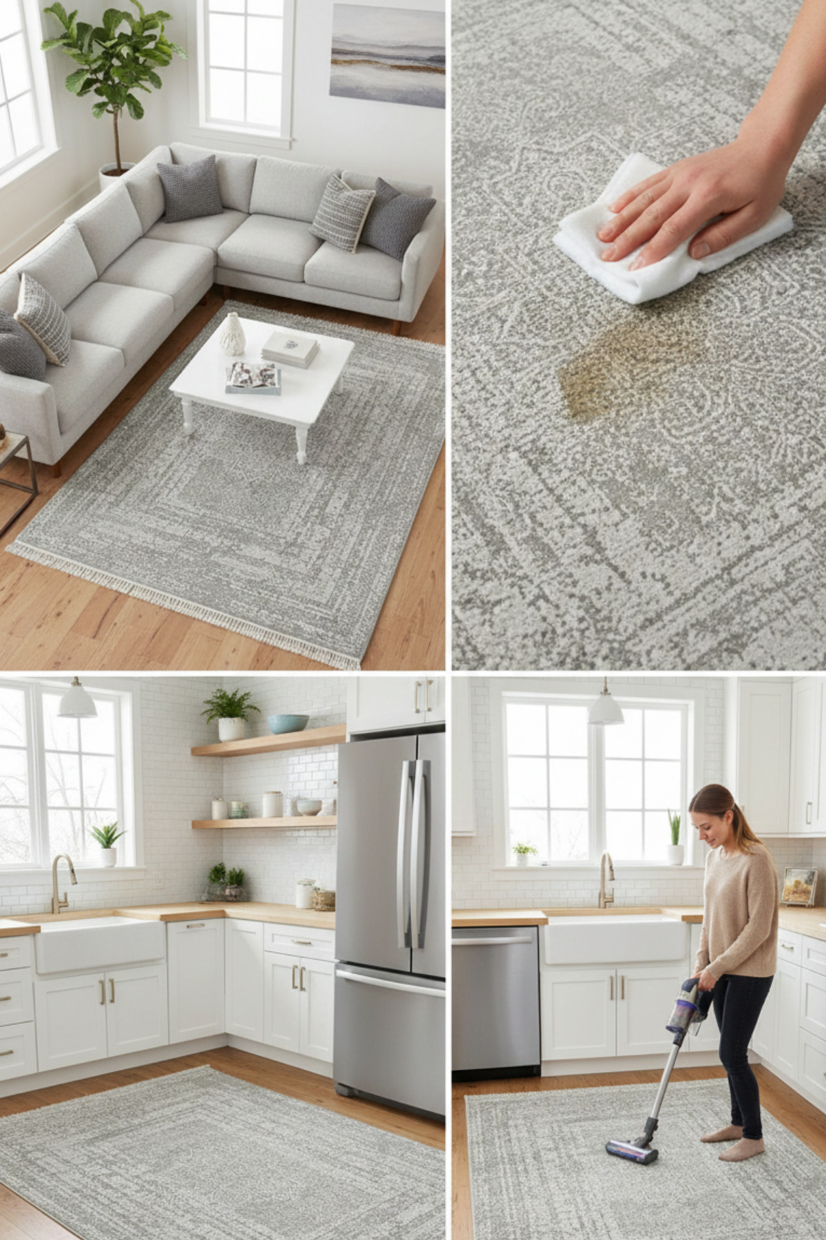 When cleaning at home, gently wipe the surface using carpet shampoo; avoid using detergent, bleach, or harsh chemicals.
