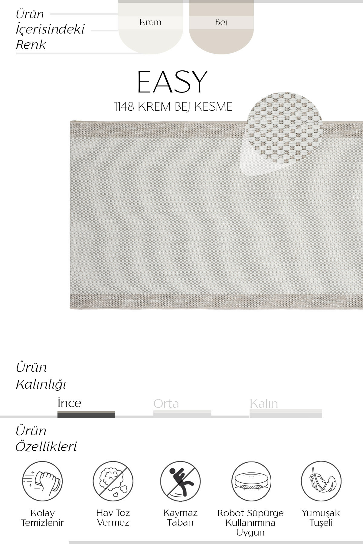 Product Description, Easy 1148 Beige Cream-Cutting Carpet | Thin Woven Corridor with Non-Slip Base &