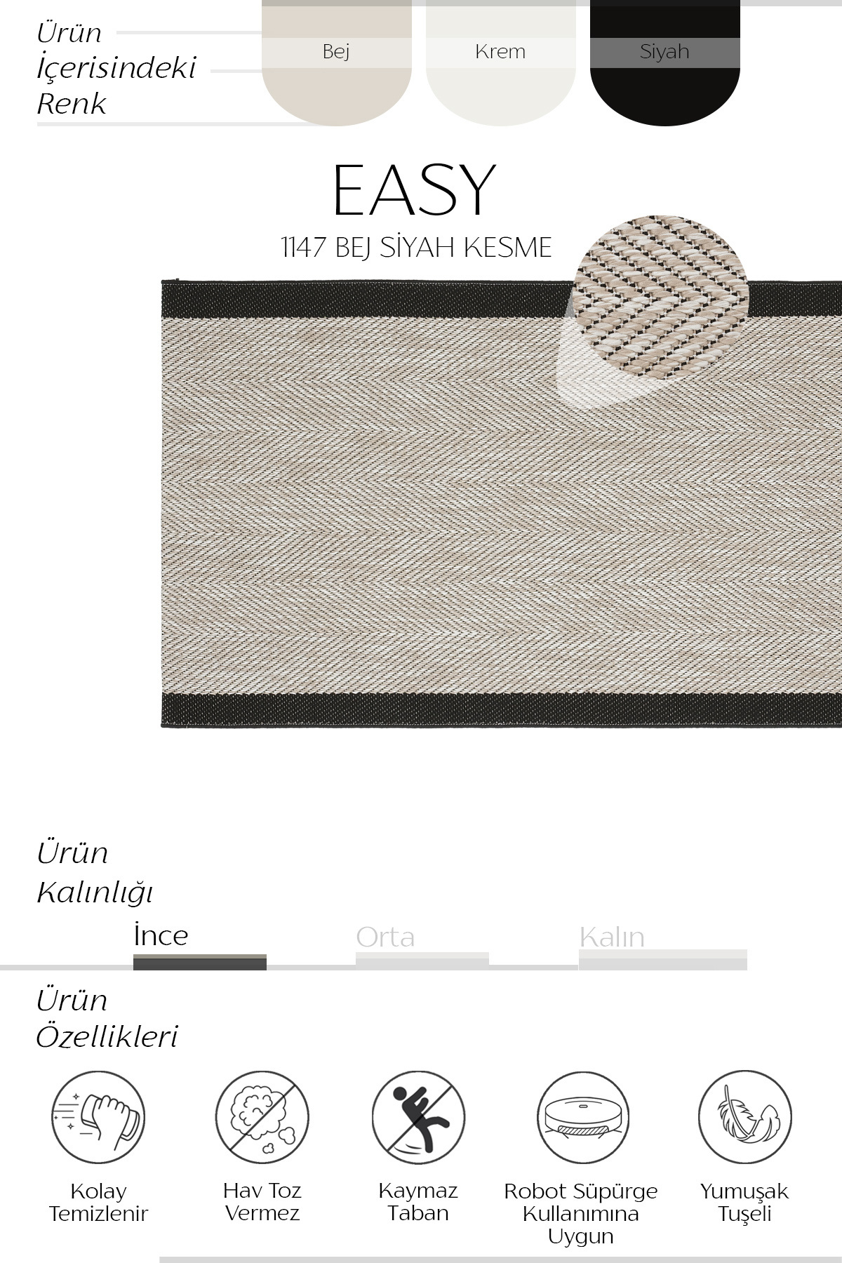 Easy 1147 Beige Black cutting carpet is a stylish and useful solution with its thin woven structure specially designed for corridors, entrances and transition areas.