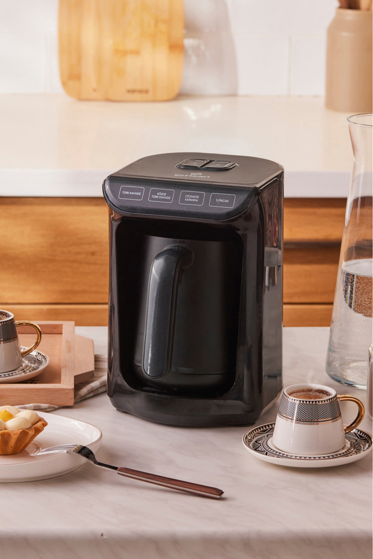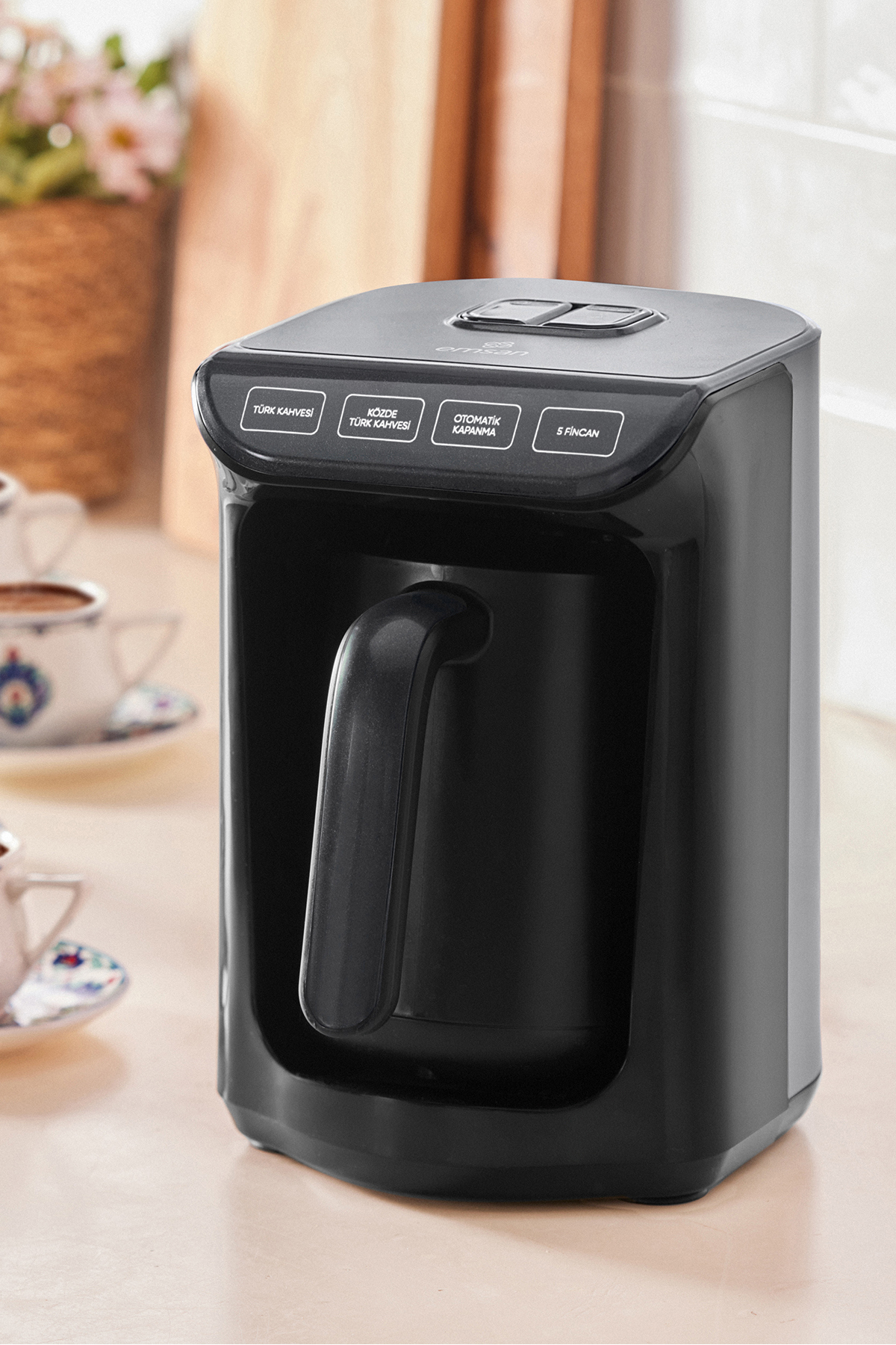 Emsan KÖZDE, which can make 5 cups of Turkish Coffee or KÖZDE Turkish Coffee at once, brews coffee at the right temperature, ideal consistency and just in time with automatic temperature adjustment.