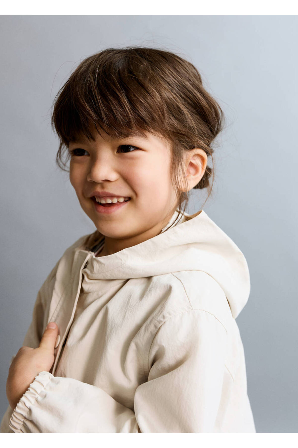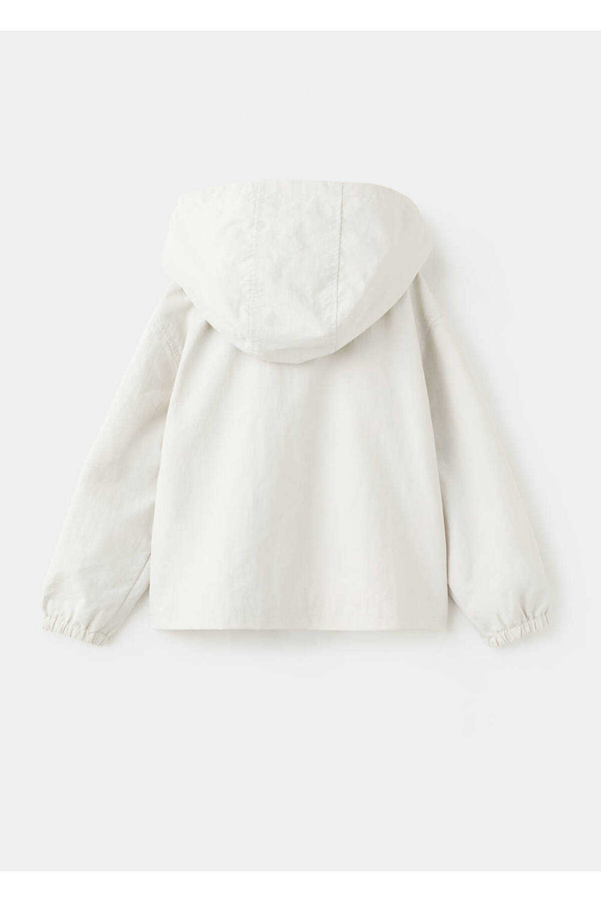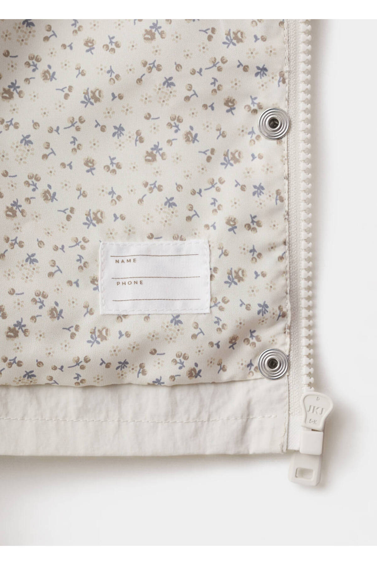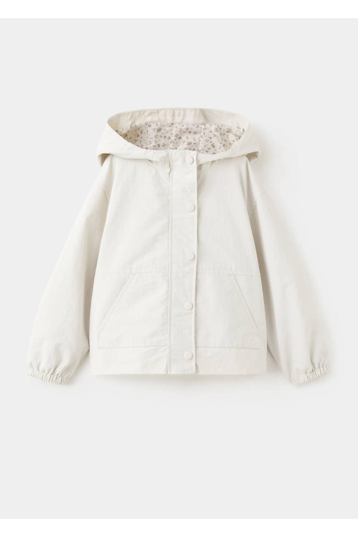 Waterproof fabric, Plain Design, Medium design, Hooded, Long sleeves with flexible cuffs, Two side pockets, Hidden zipper closure, Two-button closure on the front, Lining pattern, Label for personal information, Valentine's Day Collection.