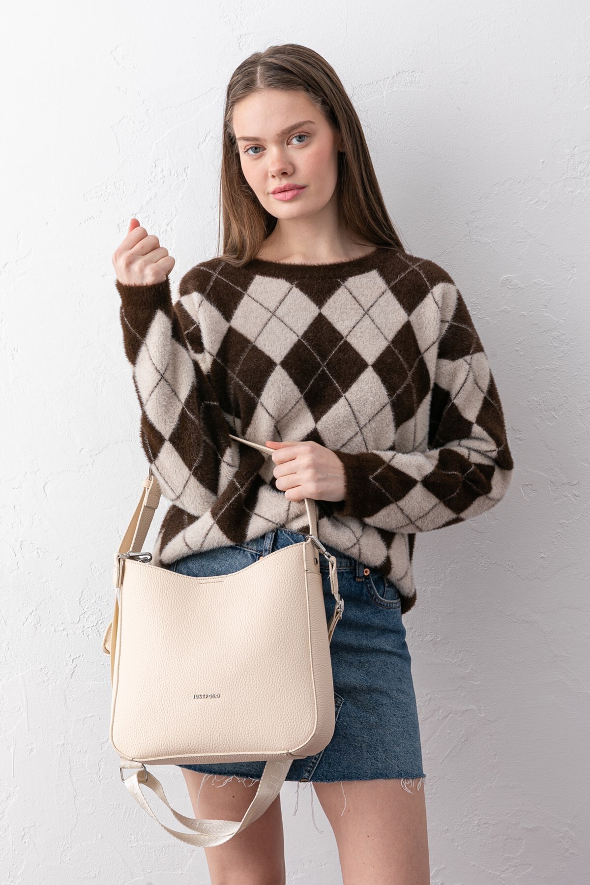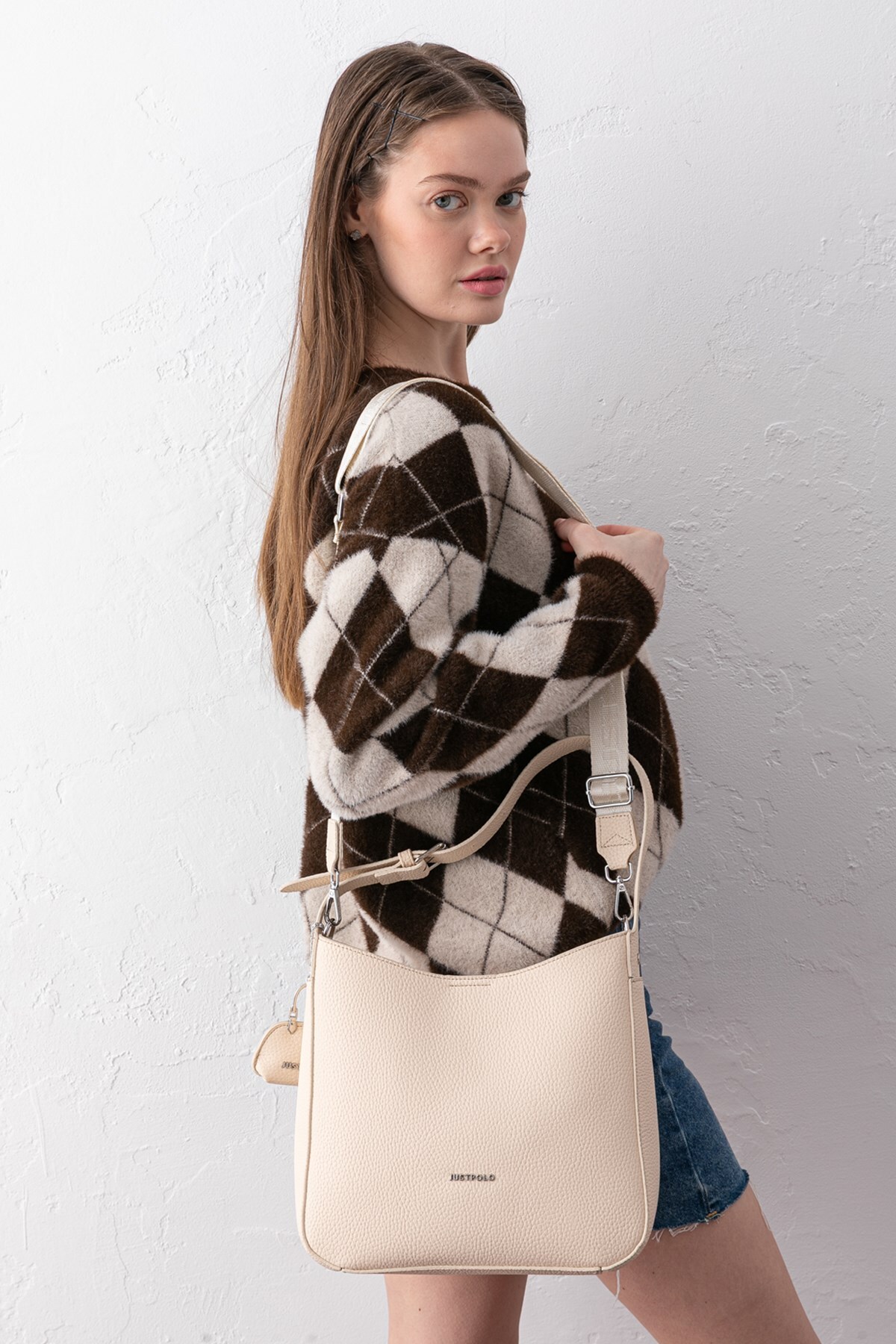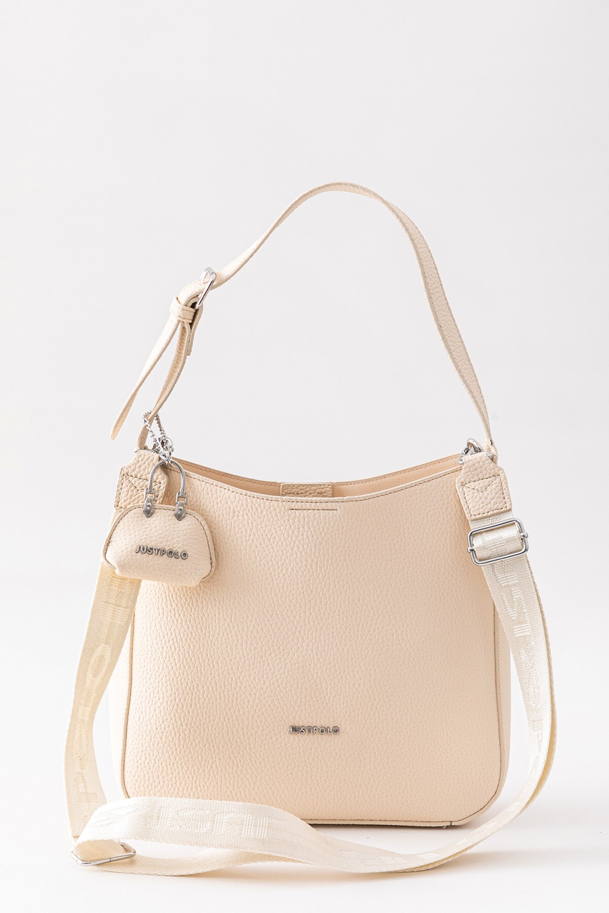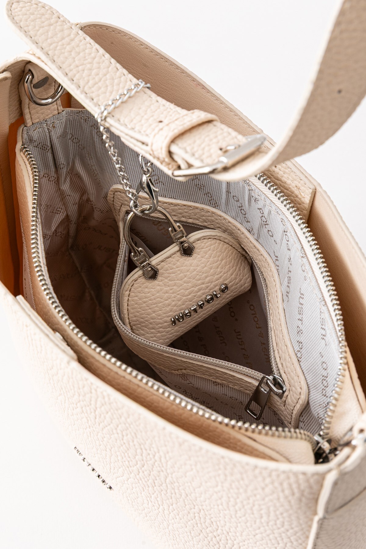 Just Polo Large Size Soft Leather Look Large Volume Cream Women's Sleeve Bag with Mila Charm Pbu3207 | ByTR