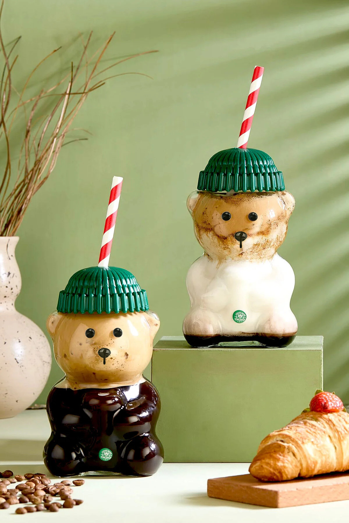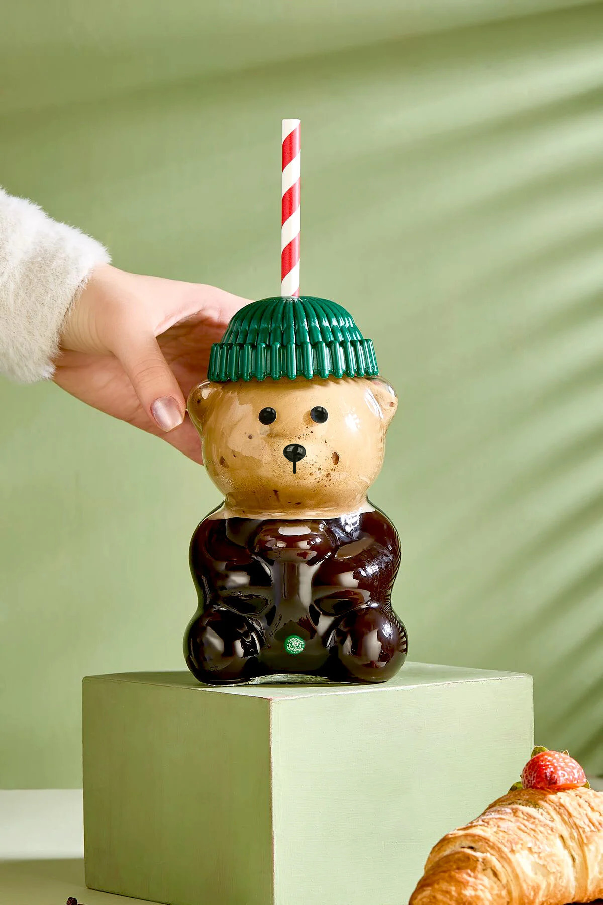 Kitchen Life Glass cup with teddy bear figure is specially designed for both beverage presentation and decorative use with its cute design.